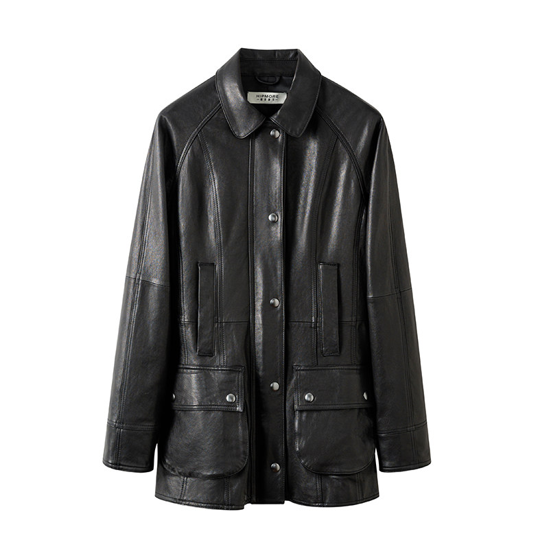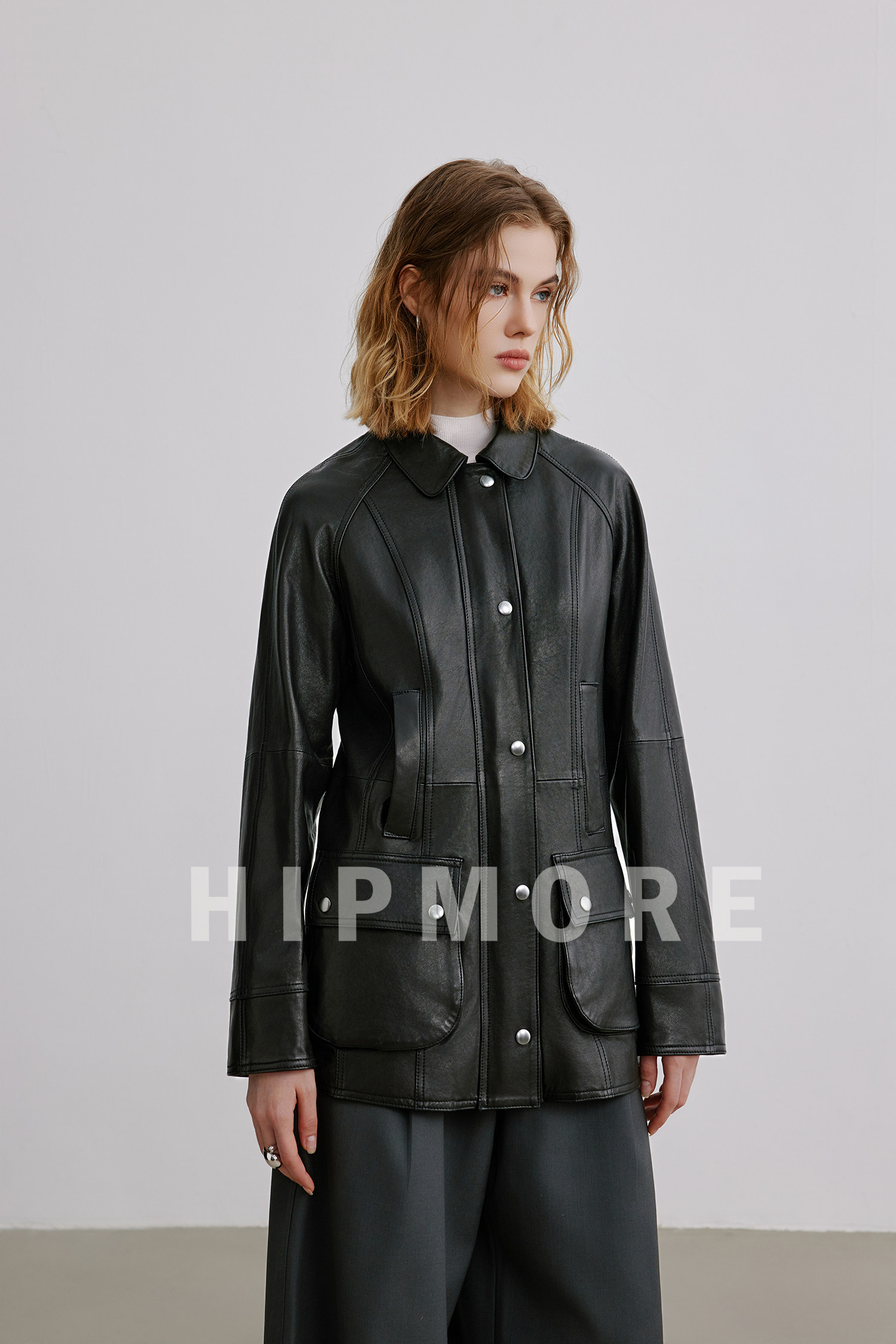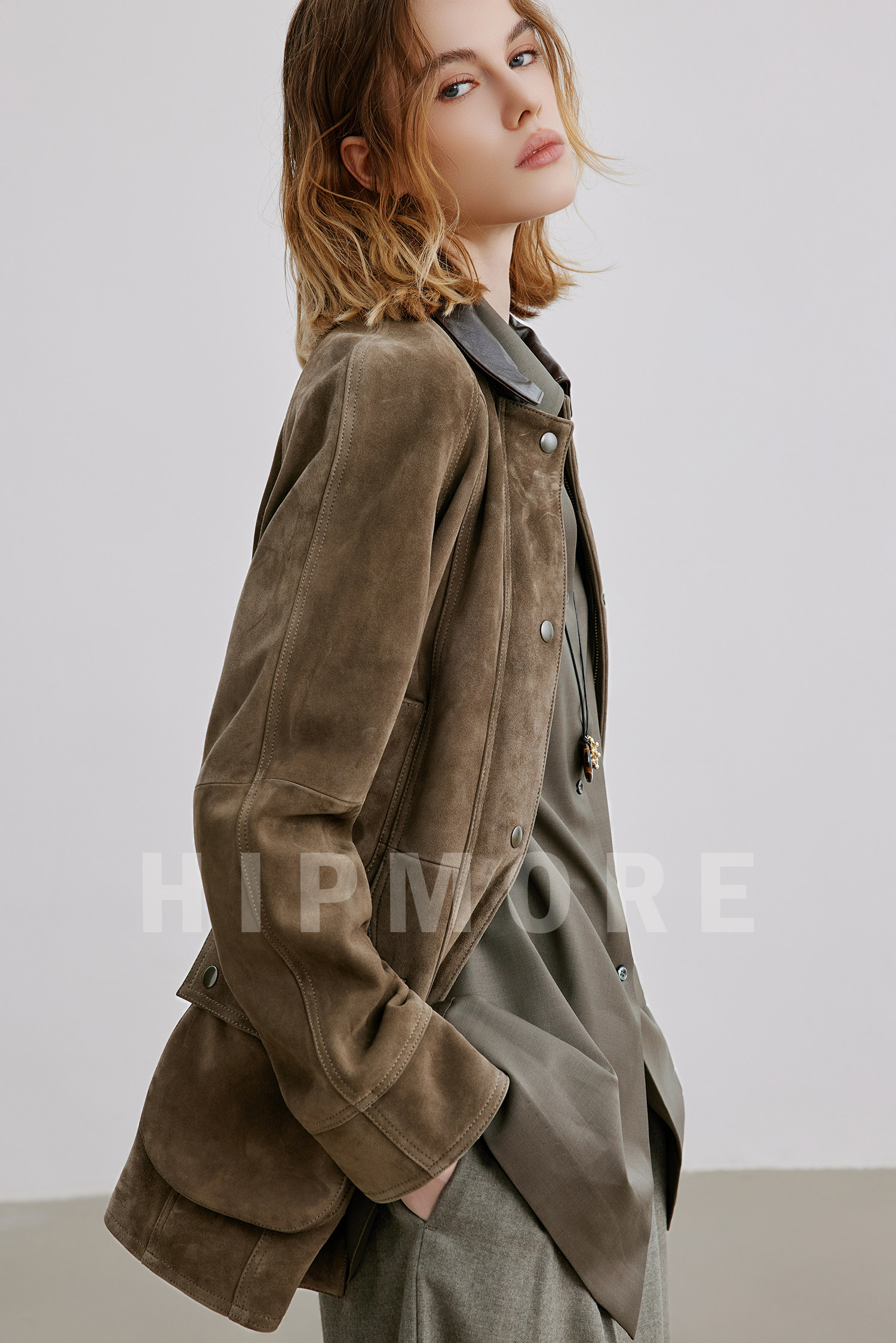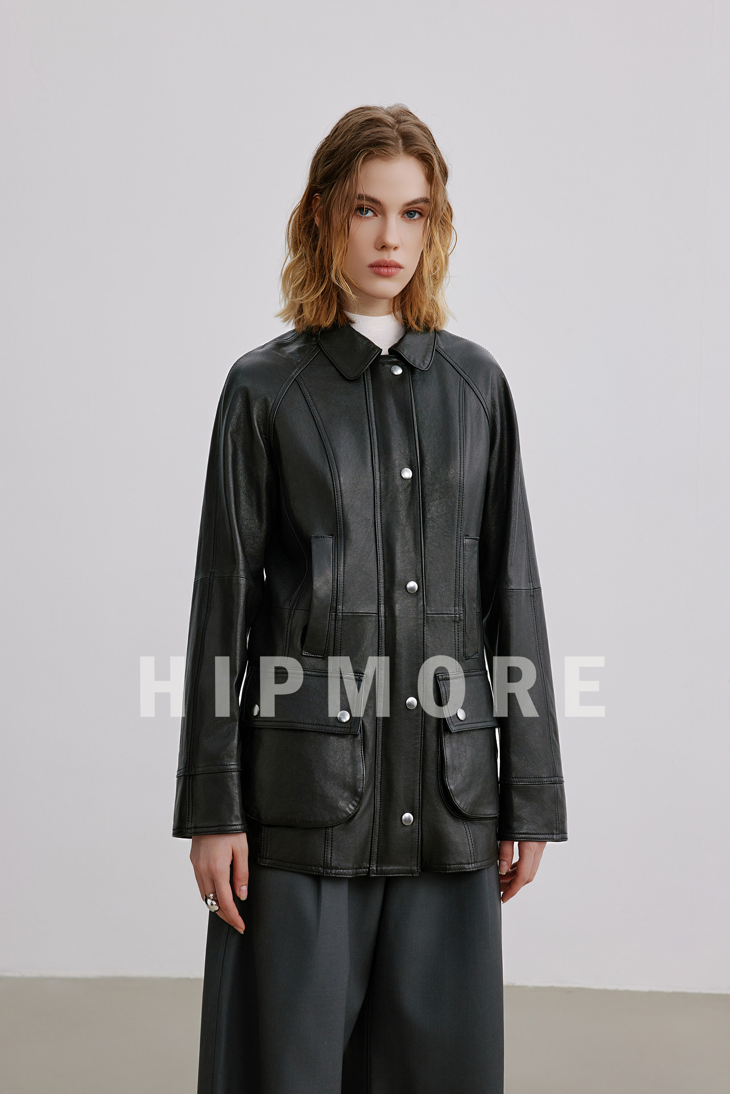 London impression retro Barn style North African imported sheepskin anti-suede leather jacket women's lapel mid-length autumn new style