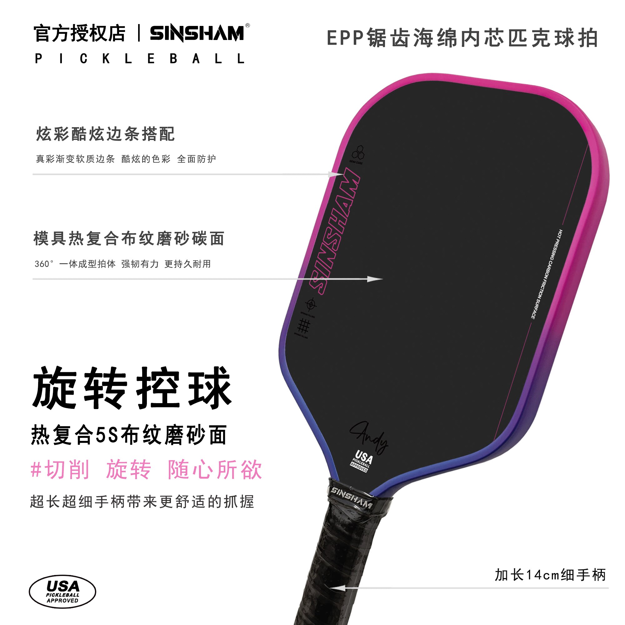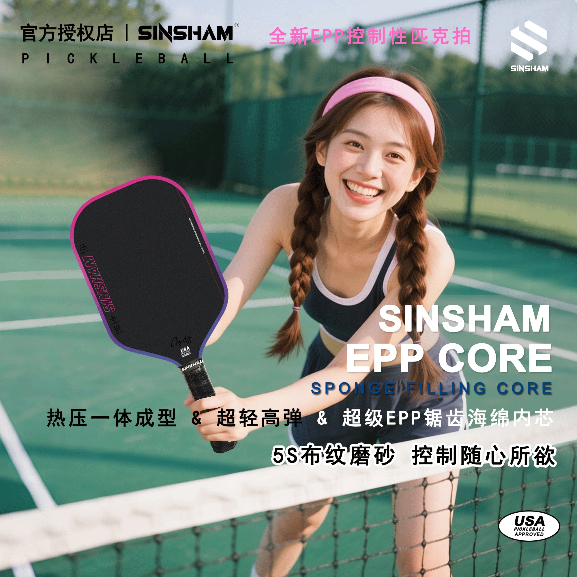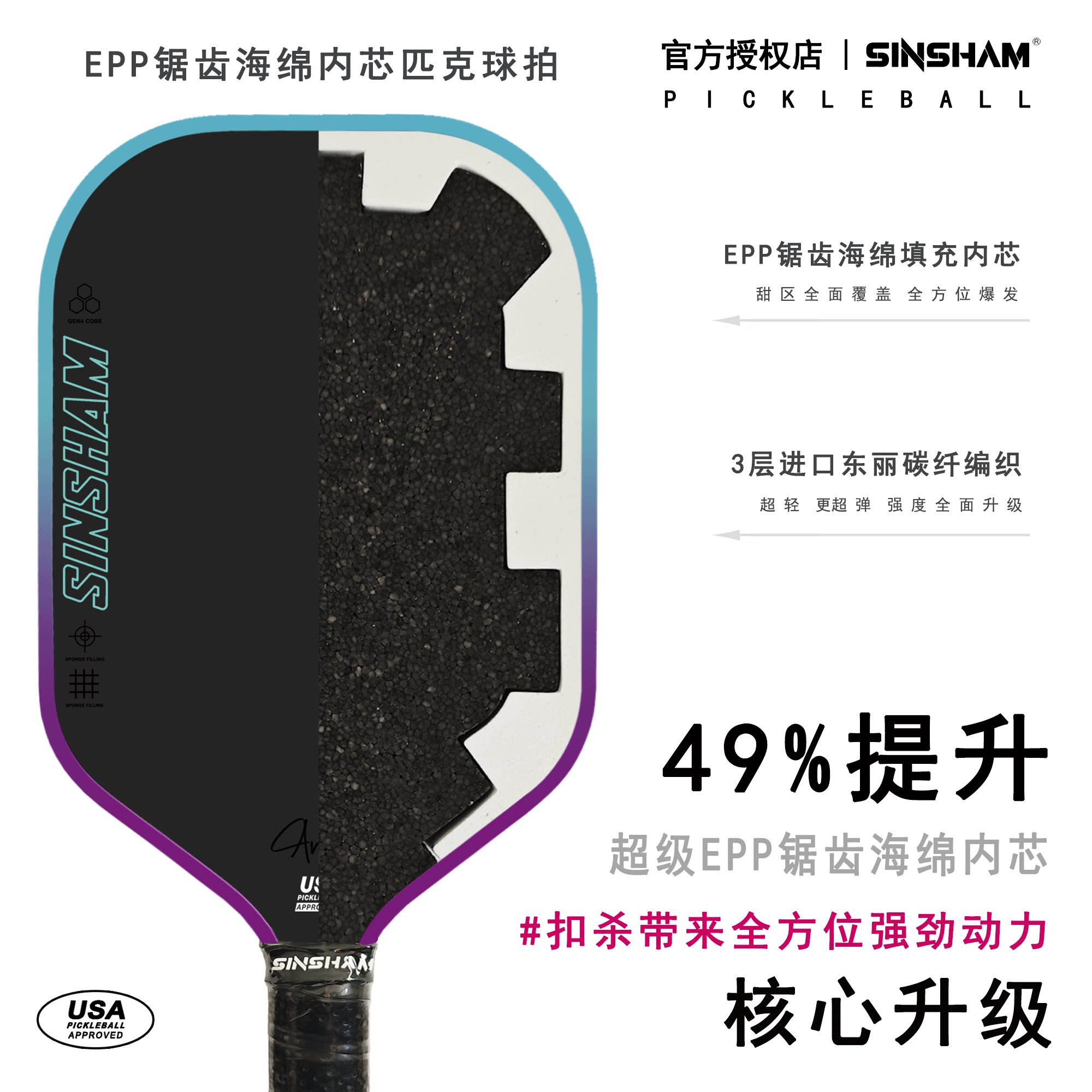 Sinsham Thermoformed Sponge Epp Serrated Sponge Core Carbon Fiber Pickleball Paddle Full Sponge Competition