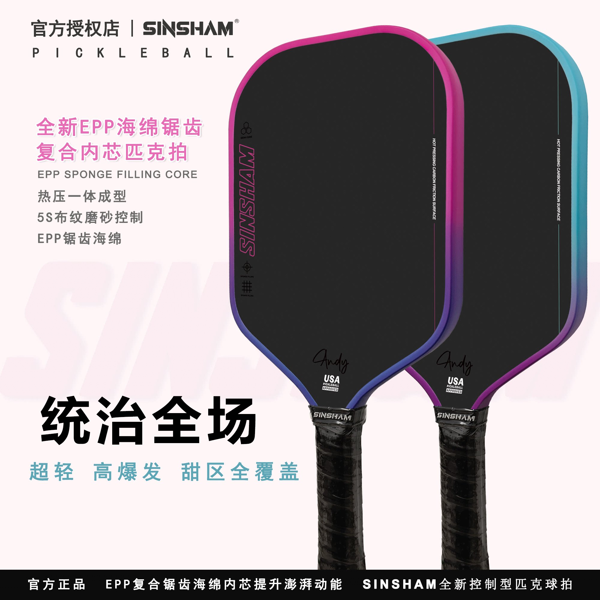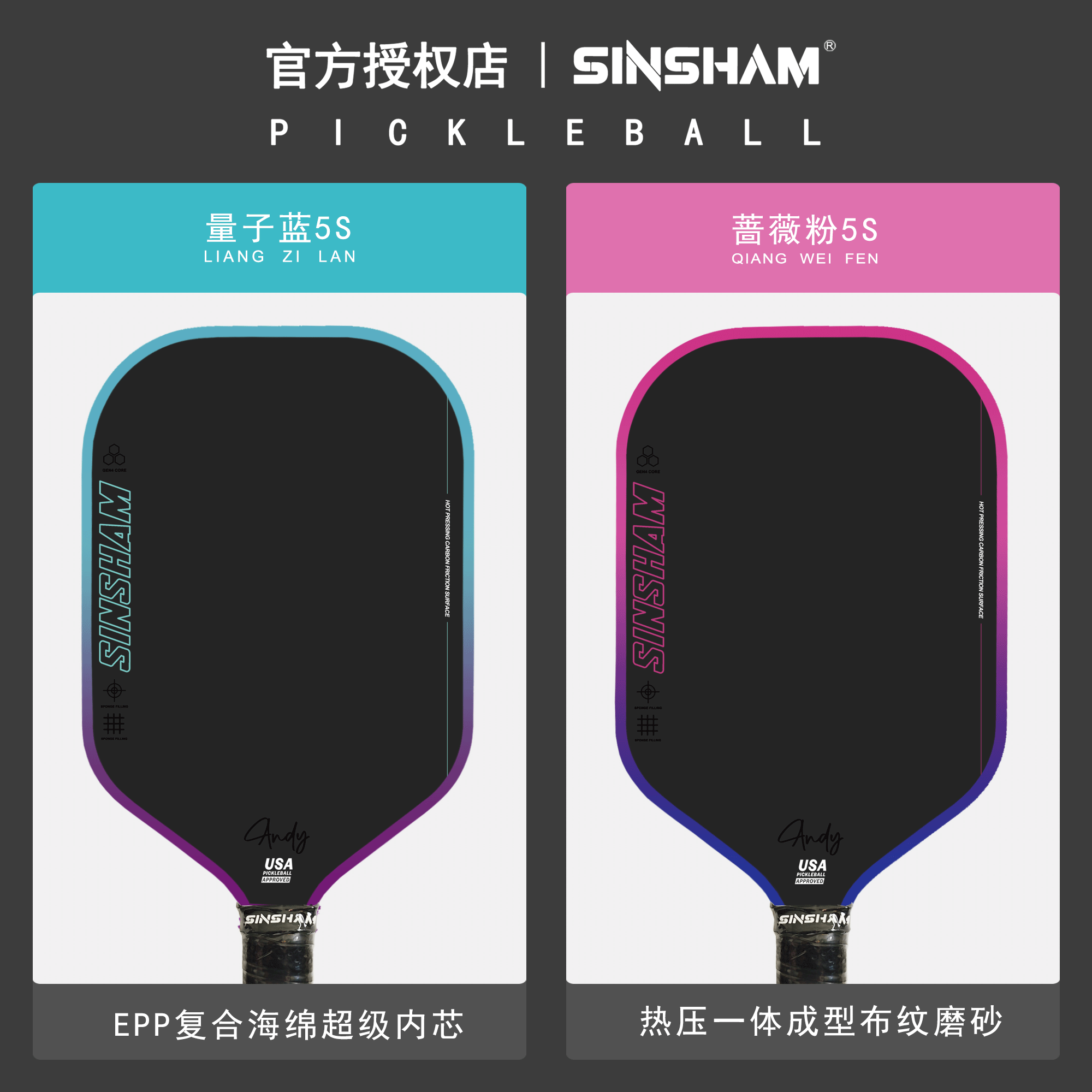 Color Classification Quantum Blue Epp Composite Sponge Core Pickleball Paddle - Single Pack,Rose Pink Epp Composite Sponge Core Pickleball Paddle - Single Pack