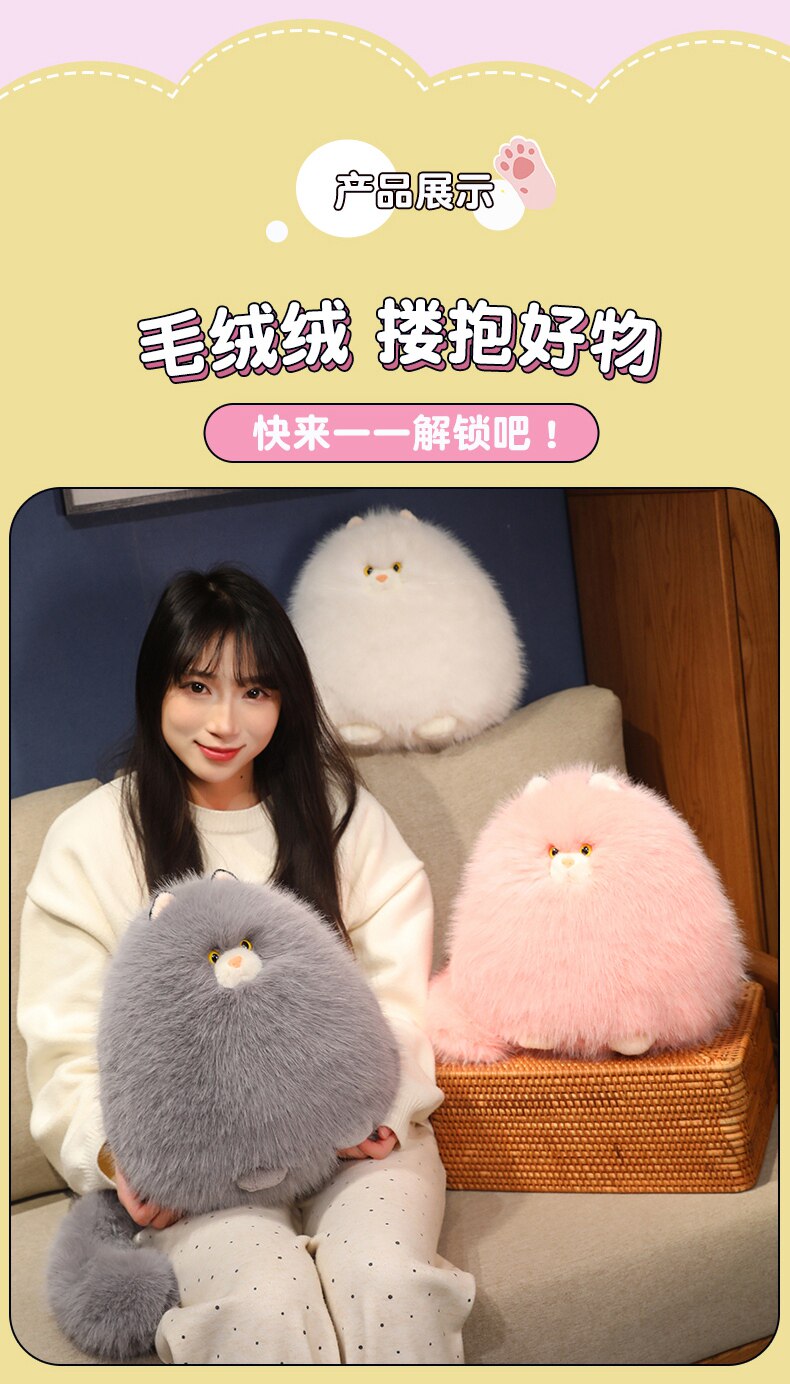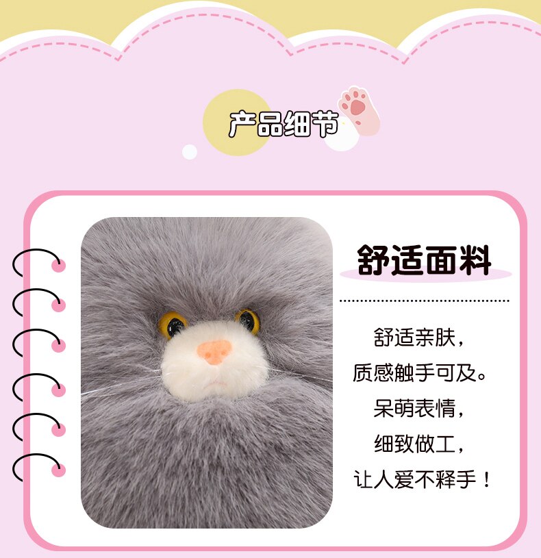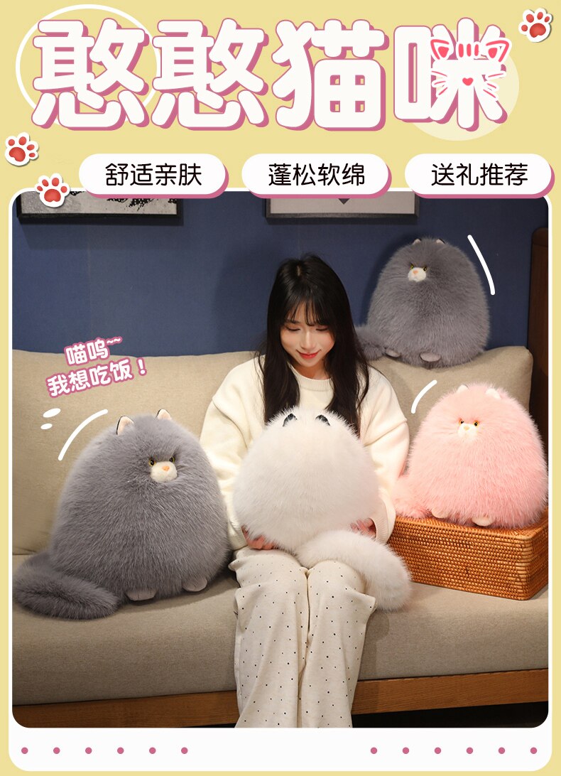 Cute Fluffy Cat Plush Toy Doll Pillow Stuffed Animal Birthday Gift for Sofa or Windowsill