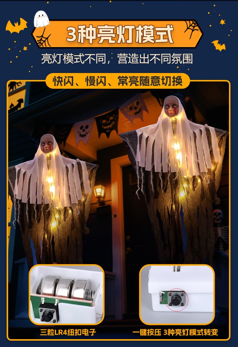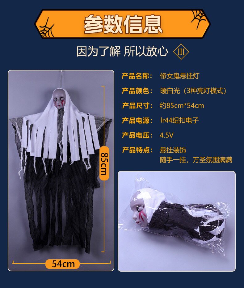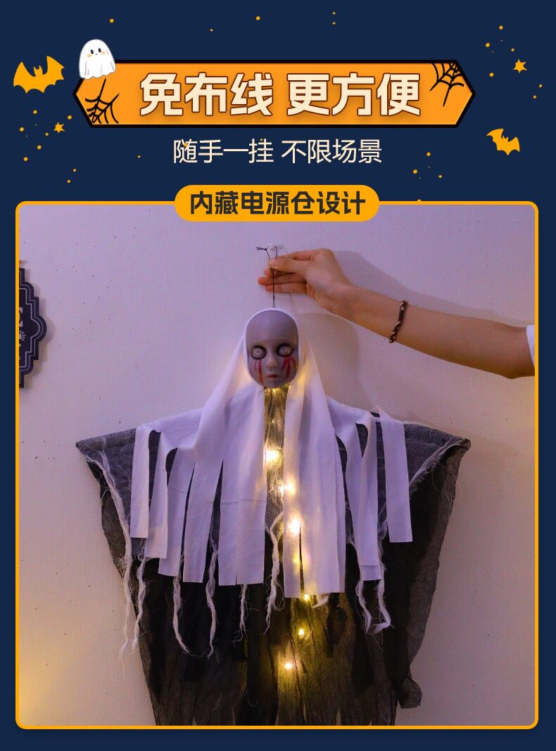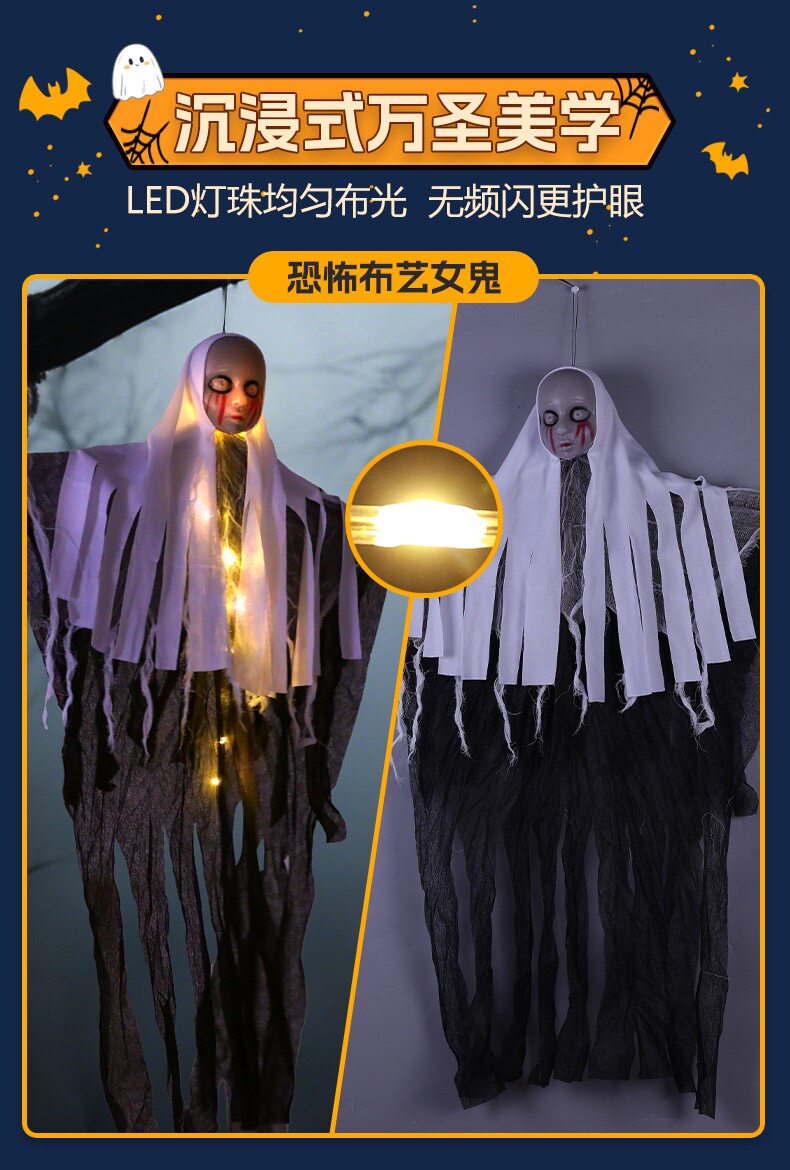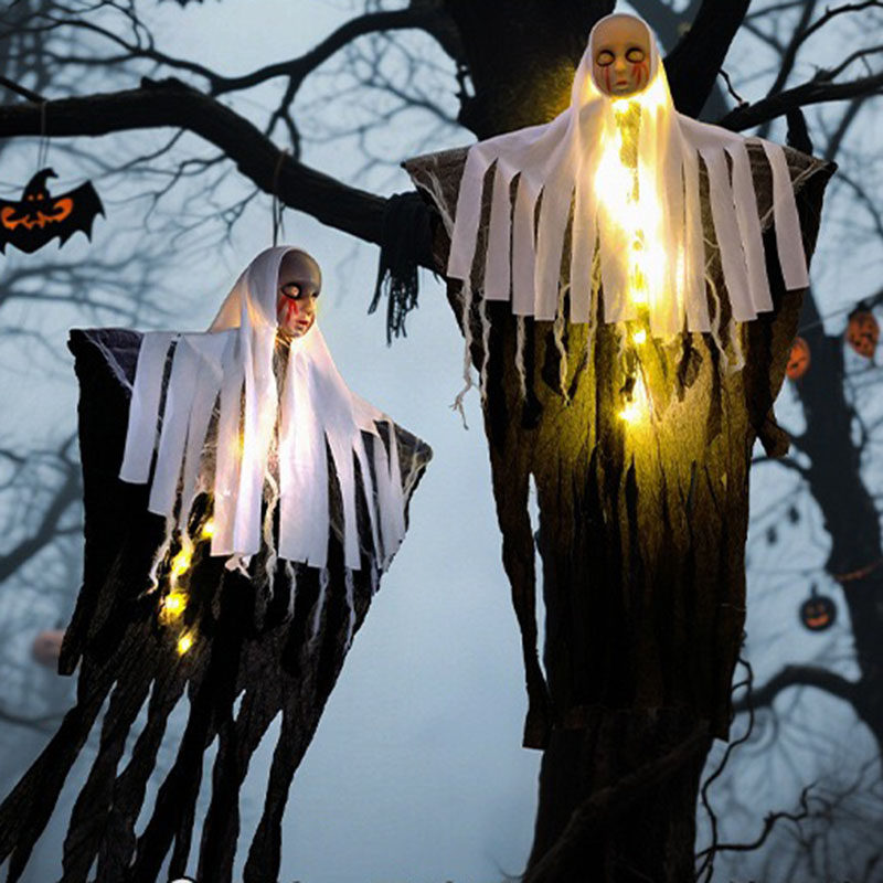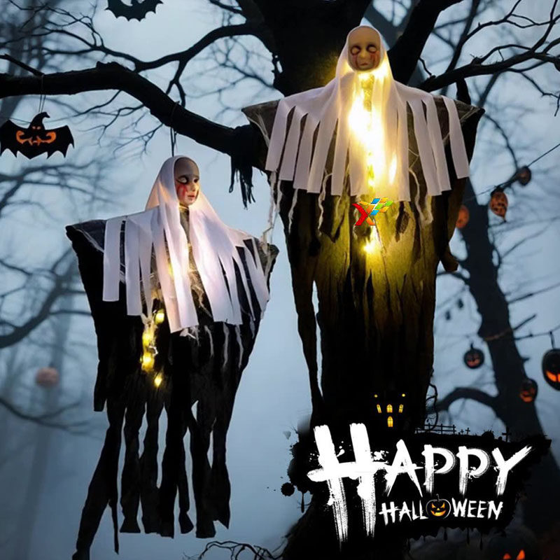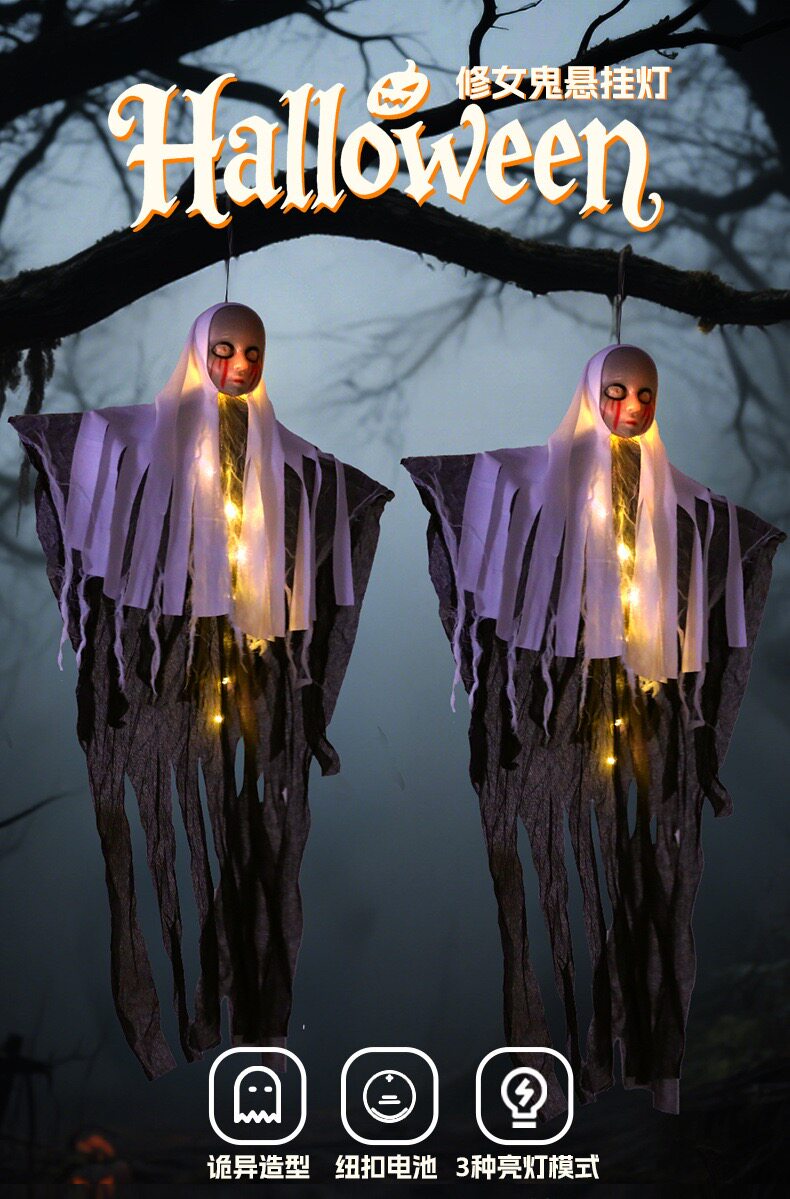 Halloween Decoration Glowing Female Hanging Ghost Ornament Outdoor Courtyard Horror Prop Hanging Decoration Scene Setup Costume Hanging Decoration