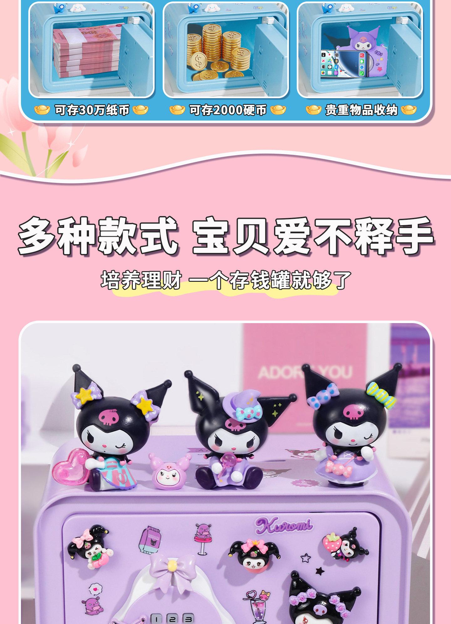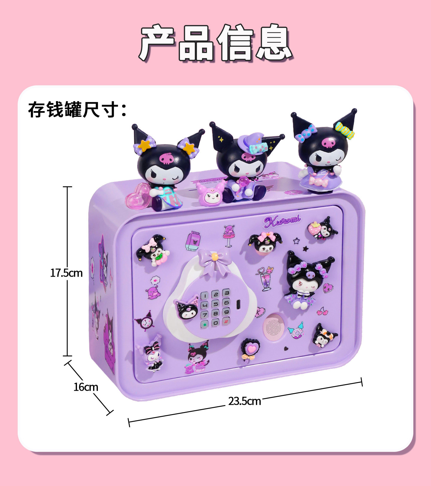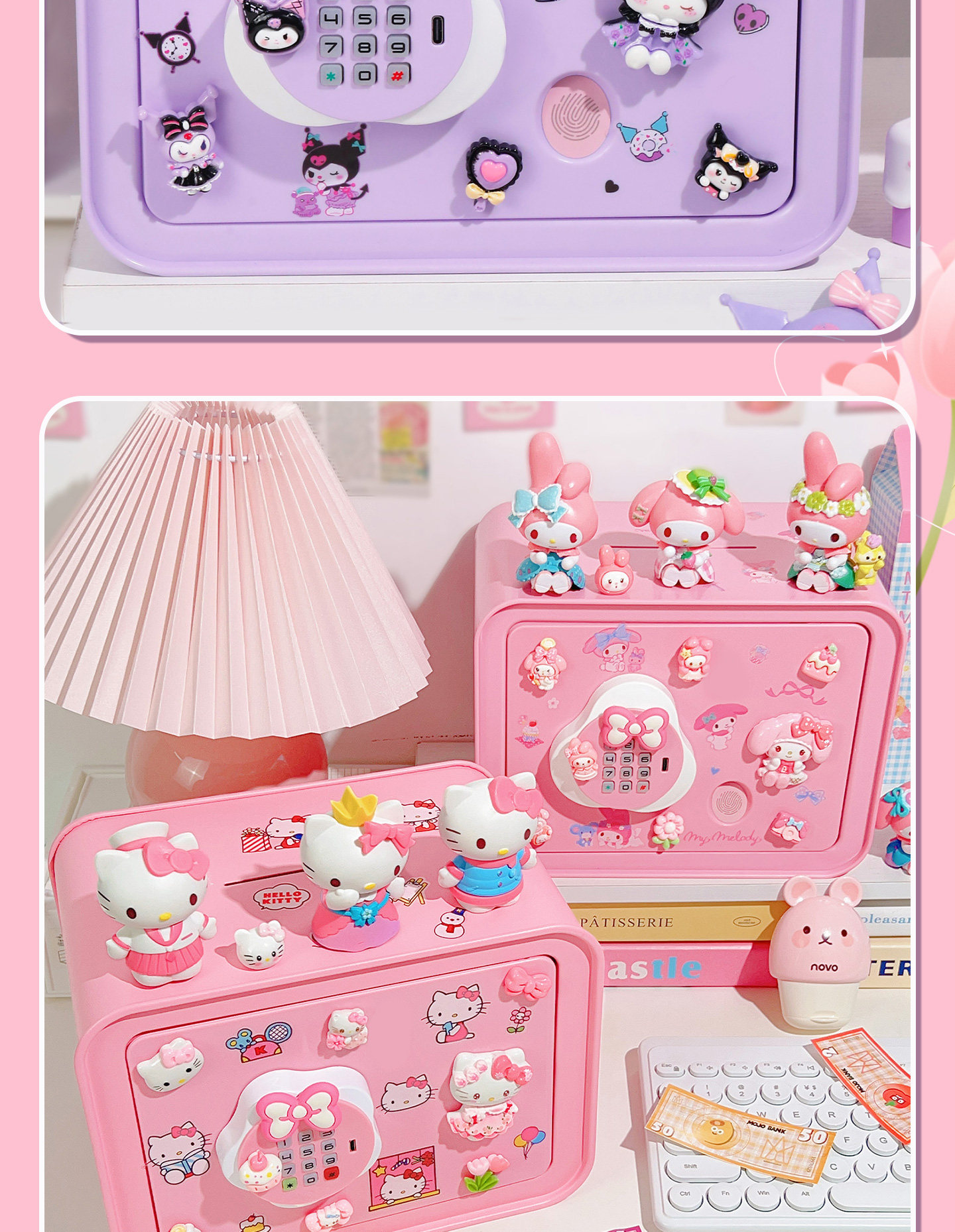 Sort by color Kuromi-Purple Large Upgraded Model Password/Fingerprint/Charging Model (Send Blind Box*1+Resin Patch*10+Sticker*2),Kuromi-Purple Large Upgraded Model Password/Fingerprint/Charging Model (Send Blind Box*3+Resin Patches*10+Stickers*2),Hello Kitty-Pink Large Upgraded Model Password/Fingerprint/Charging Model (Free Blind Box*1+Resin Patches*10+Stickers*2),Hello Kitty-Pink Large Upgraded Model Password/Fingerprint/Charging Model (Free Blind Box*3+Resin Patches*10+Stickers*2),Jade Cinnamon Dog-Blue Large Upgraded Model Password/Fingerprint/Charging Model (Free Blind Box*1+Resin Patch*10+Sticker*2),Jade Gui Dog-Blue Large Upgraded Model Password/Fingerprint/Charging Model (Free Blind Box*3+Resin Patches*10+Stickers*2),Melody-Purple Large Upgraded Model Password/Fingerprint/Charging Model (Free Blind Box*1+Resin Patch*10+Sticker*2),Melody-Pink Large Upgraded Model Password/Fingerprint/Charging Model (Free Blind Box*3+Resin Patches*10+Stickers*2),Kapibala-beige large upgraded model password/fingerprint/charging model (free blind box*1+resin patch*10+sticker*2),Kapibala-Beige Large Upgraded Model Password/Fingerprint/Charging Model (Send Blind Box*3+Resin Patches*10+Stickers*2),Kurome-Purple Large Upgraded Model + Metal Box Password/Charging Model (Free Blind Box*1+Resin Patches*10+Stickers*2),Kurome-Purple Large Upgraded Model + Metal Box Password/Charging Model (Free Blind Box*3+Resin Patches*10+Stickers*2),Hello Kitty-pink large upgraded model+metal box password/charging model (free blind box*1+resin patch*10+sticker*2),Hello Kitty-pink large upgraded model+metal box password/charging model (free blind box*3+resin patches*10+stickers*2),Jade Cinnamon Dog-Blue Large Upgraded Model + Metal Box Password/Charging Model (Free Blind Box*1+Resin Patch*10+Sticker*2),Jade Cinnamon Dog-Blue Large Upgraded Model + Metal Box Password/Charging Model (Free Blind Box*3+Resin Patches*10+Stickers*2),Melody-Pink Large Upgraded Model + Metal Box Password/Charging Model (Free Blind Box*1+Resin Patches*10+Stickers*2),Melody-Pink Large Upgraded Model + Metal Box Password/Charging Model (Free Blind Box*3+Resin Patches*10+Stickers*2),Kapibala-beige large upgraded model+metal box password/charging model (free blind box*1+resin patch*10+sticker*2),Kapibala-beige large upgraded model+metal box password/charging model (free blind box*3+resin patches*10+stickers*2)