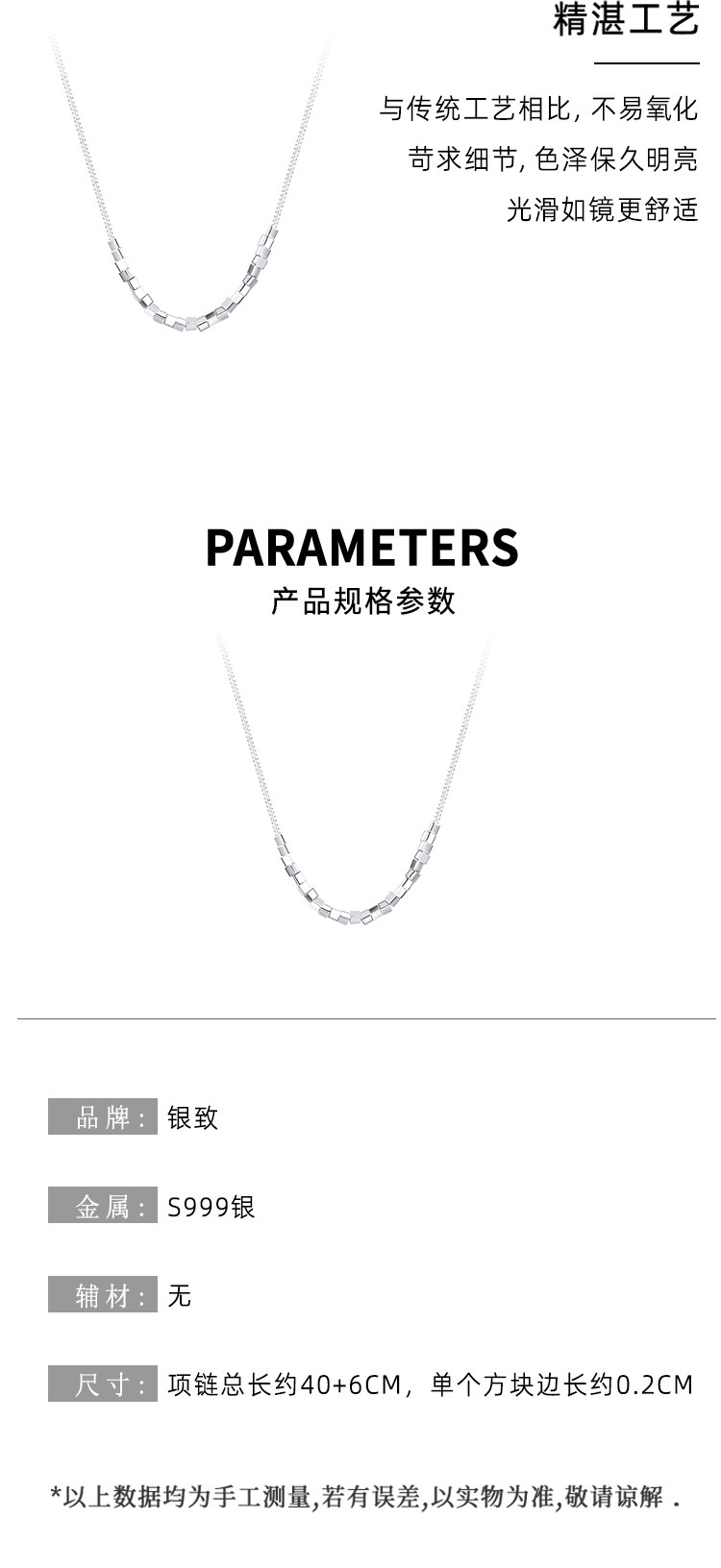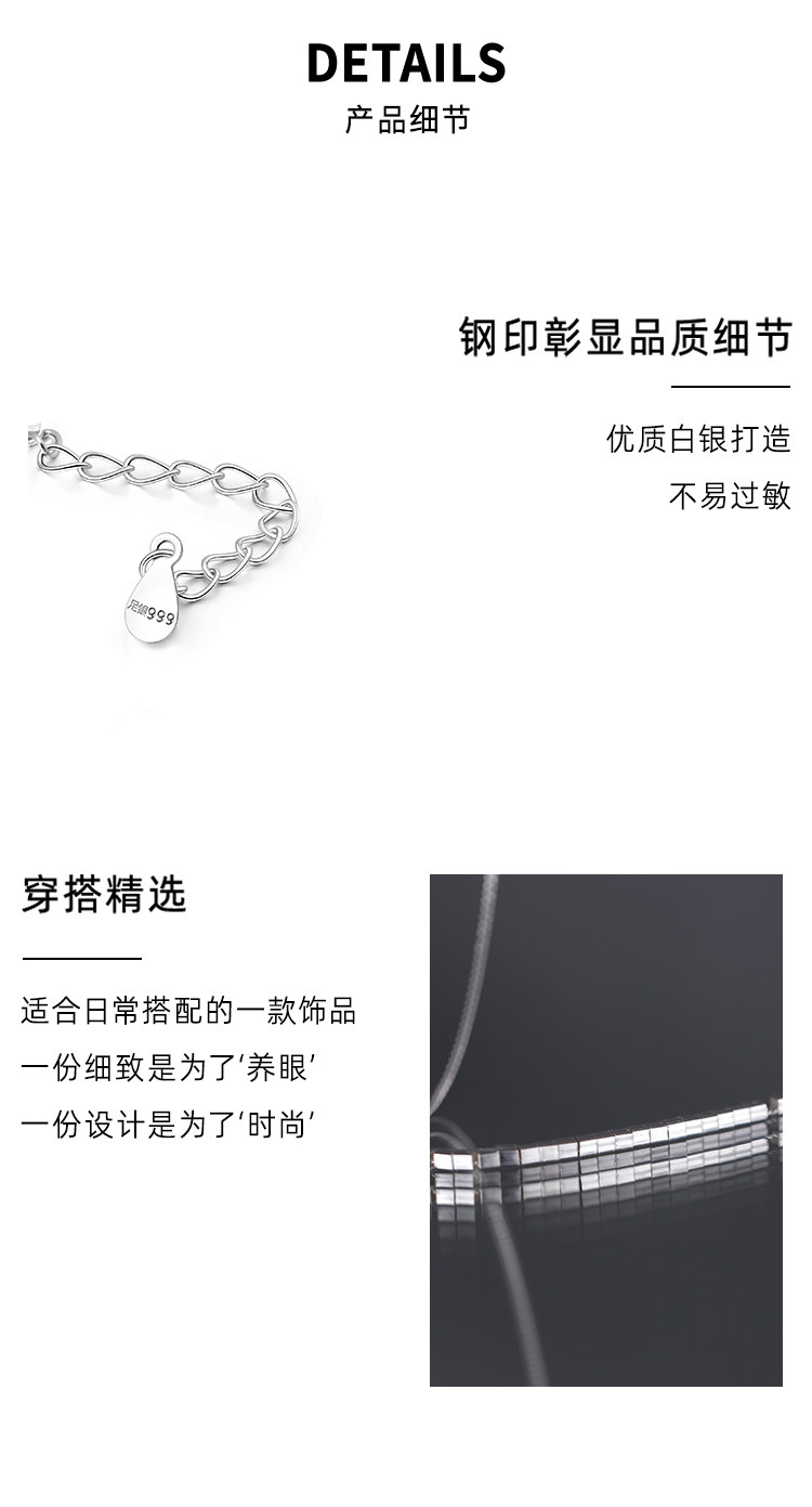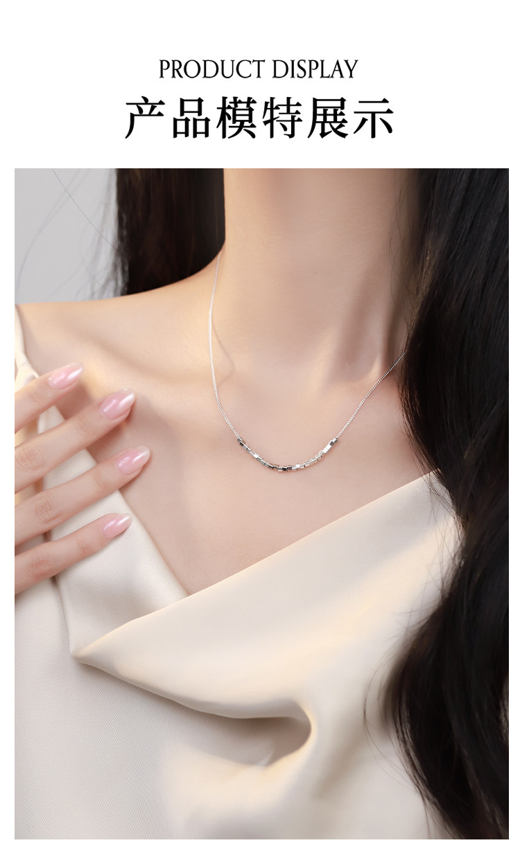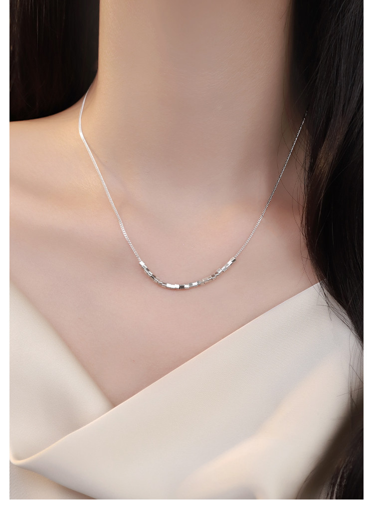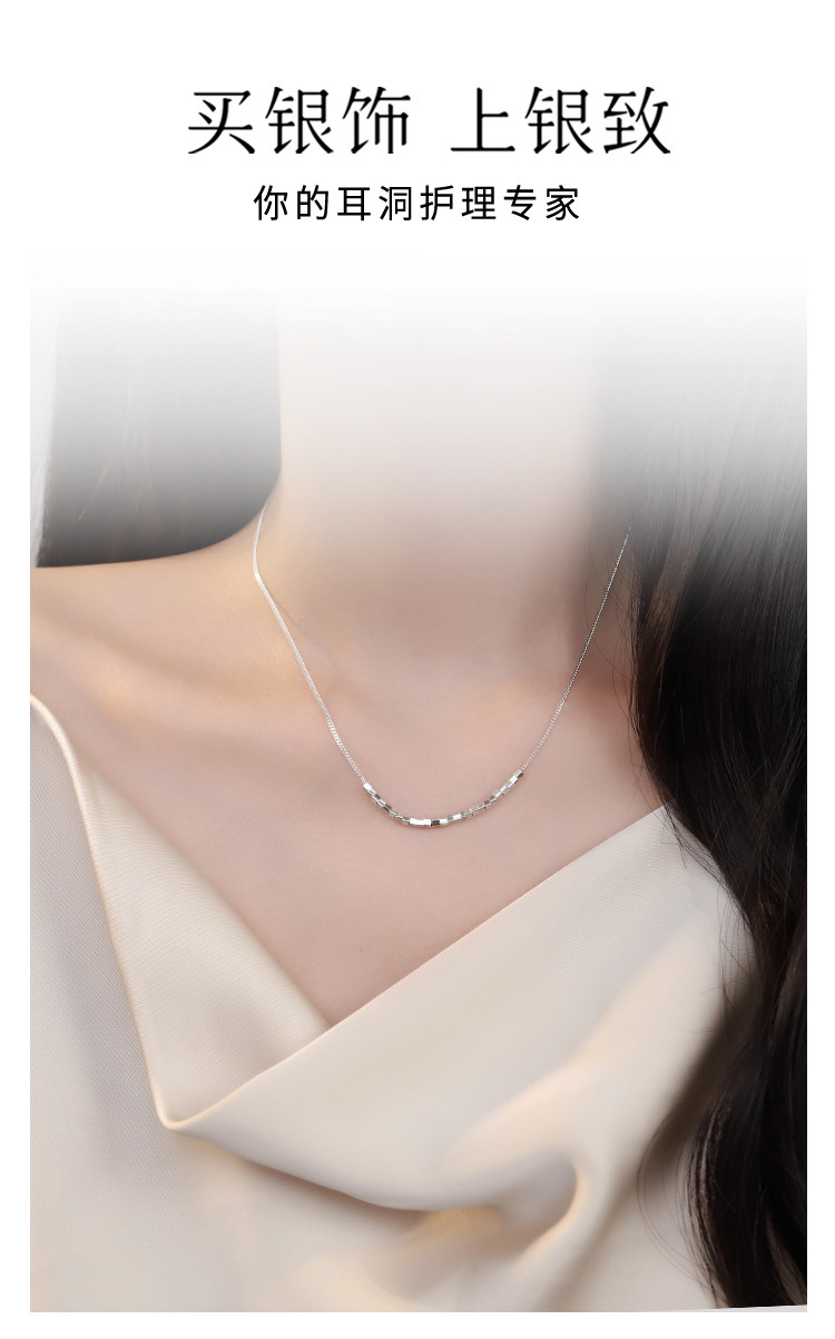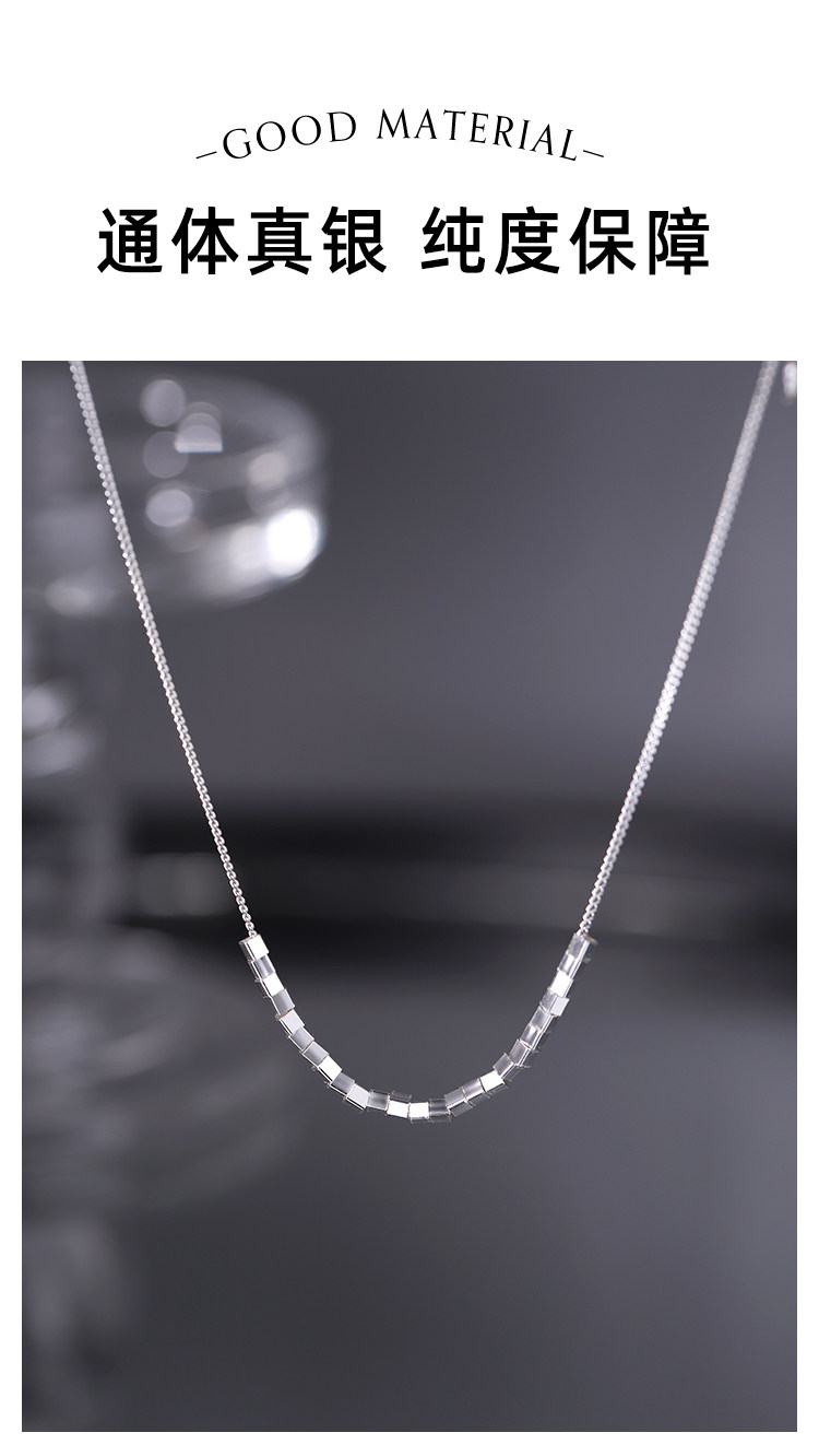 999 Pure Silver Square Pendant Necklace Women's 2025 New High-end Light Luxury Niche Jewelry Clavicle Chain Accessories