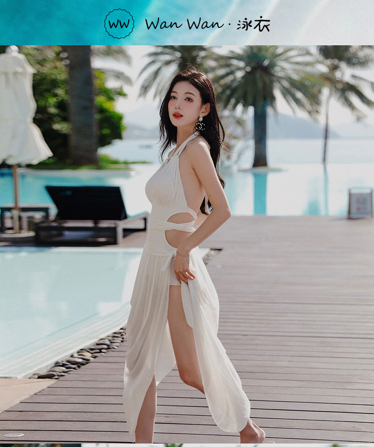 New Sexy Halter-Neck Lace-Up Skirt-Style One-Piece Swimsuit for Women, Pure Desire Beach Vacation Hot Spring Backless Swimsuit Two-Piece Set