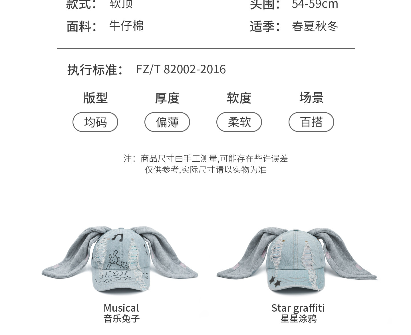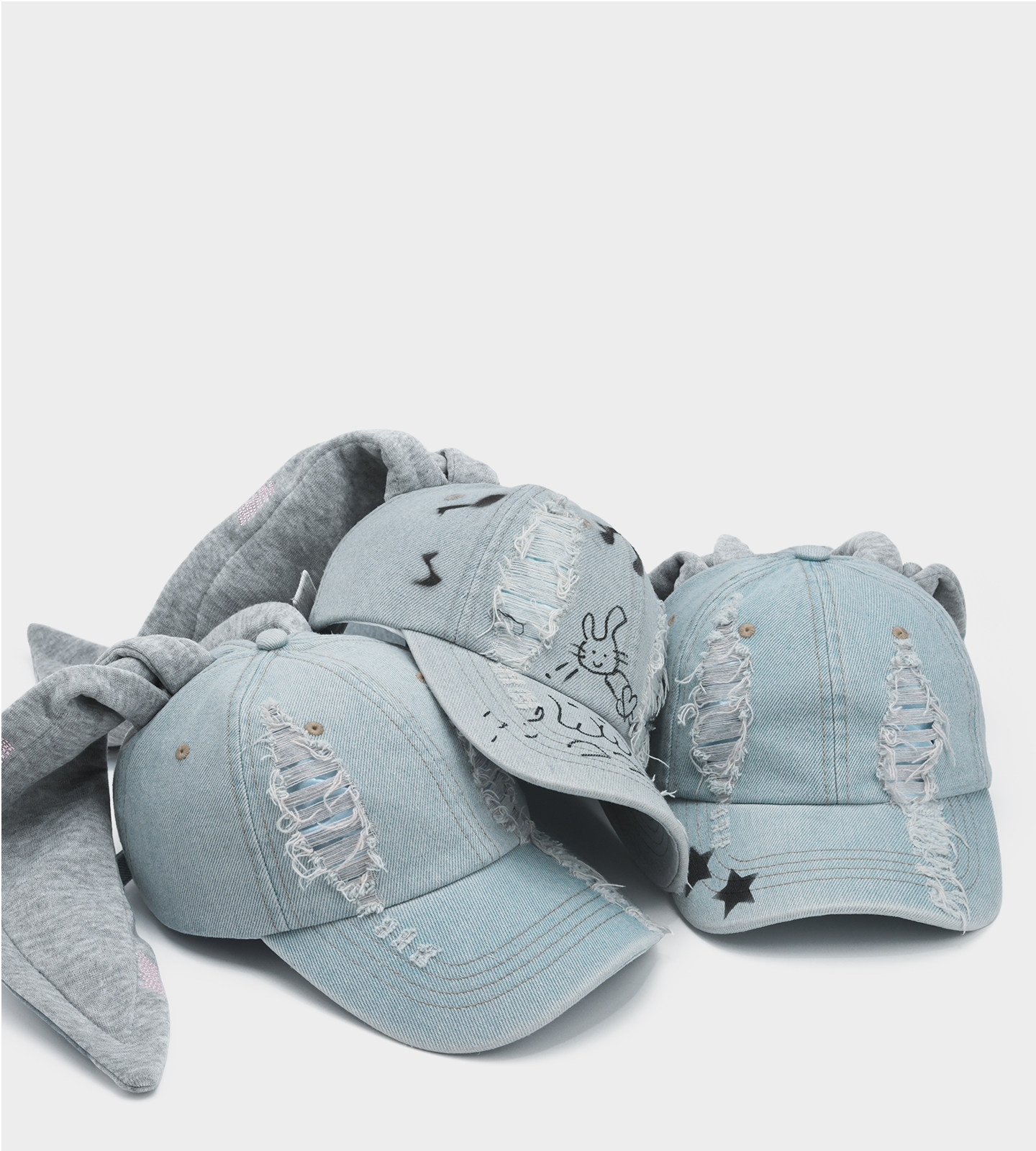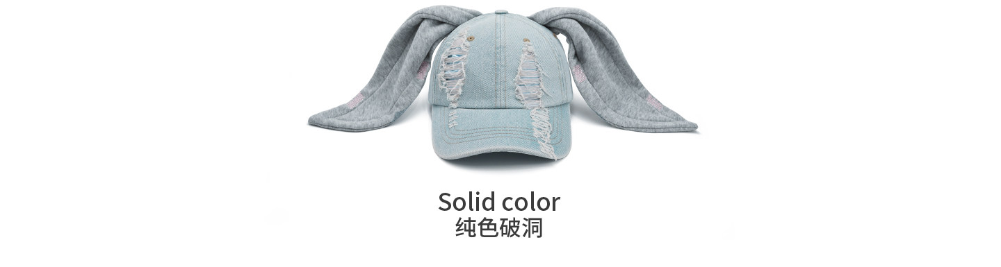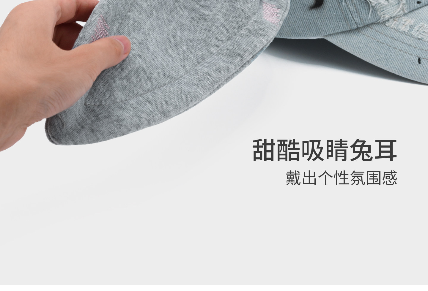 Korean Newjeans Style Rabbit Ear Baseball Cap for Women, Washed Denim, Ripped, Hip-Hop, Sweet and Cool, Trendy Baseball Hat