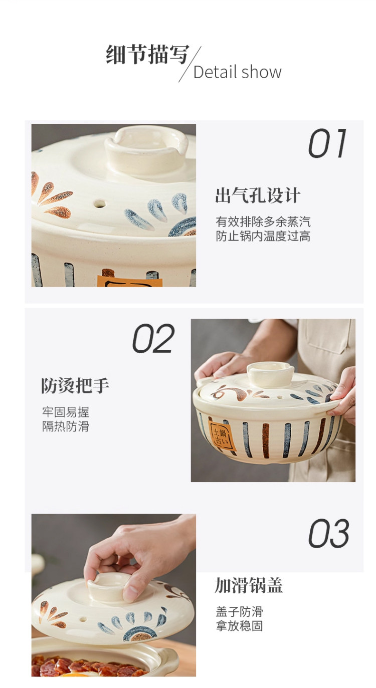 Claypot rice casserole household casserole Japanese-style hand-painted casserole high-looking ceramic pot gas stove soup casserole