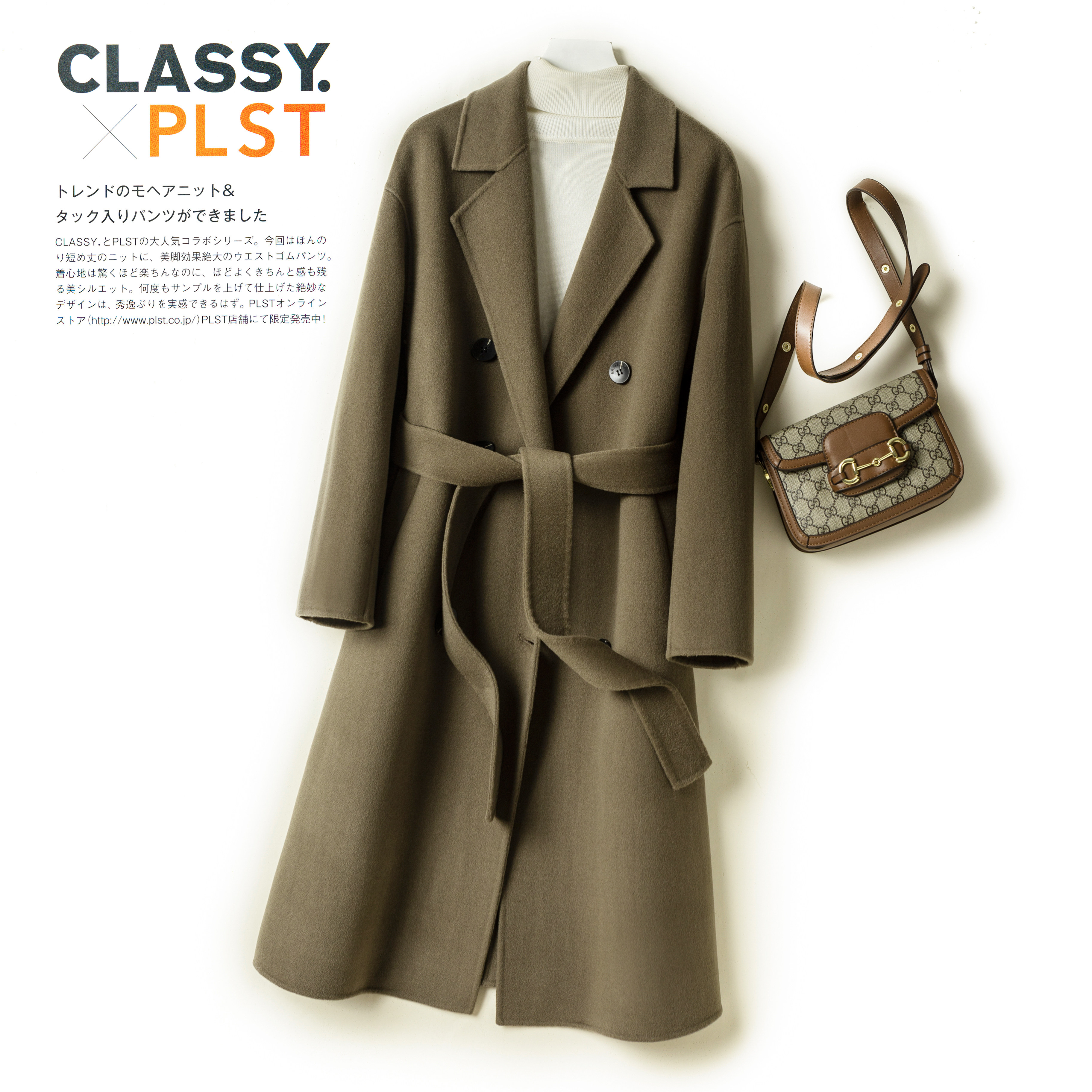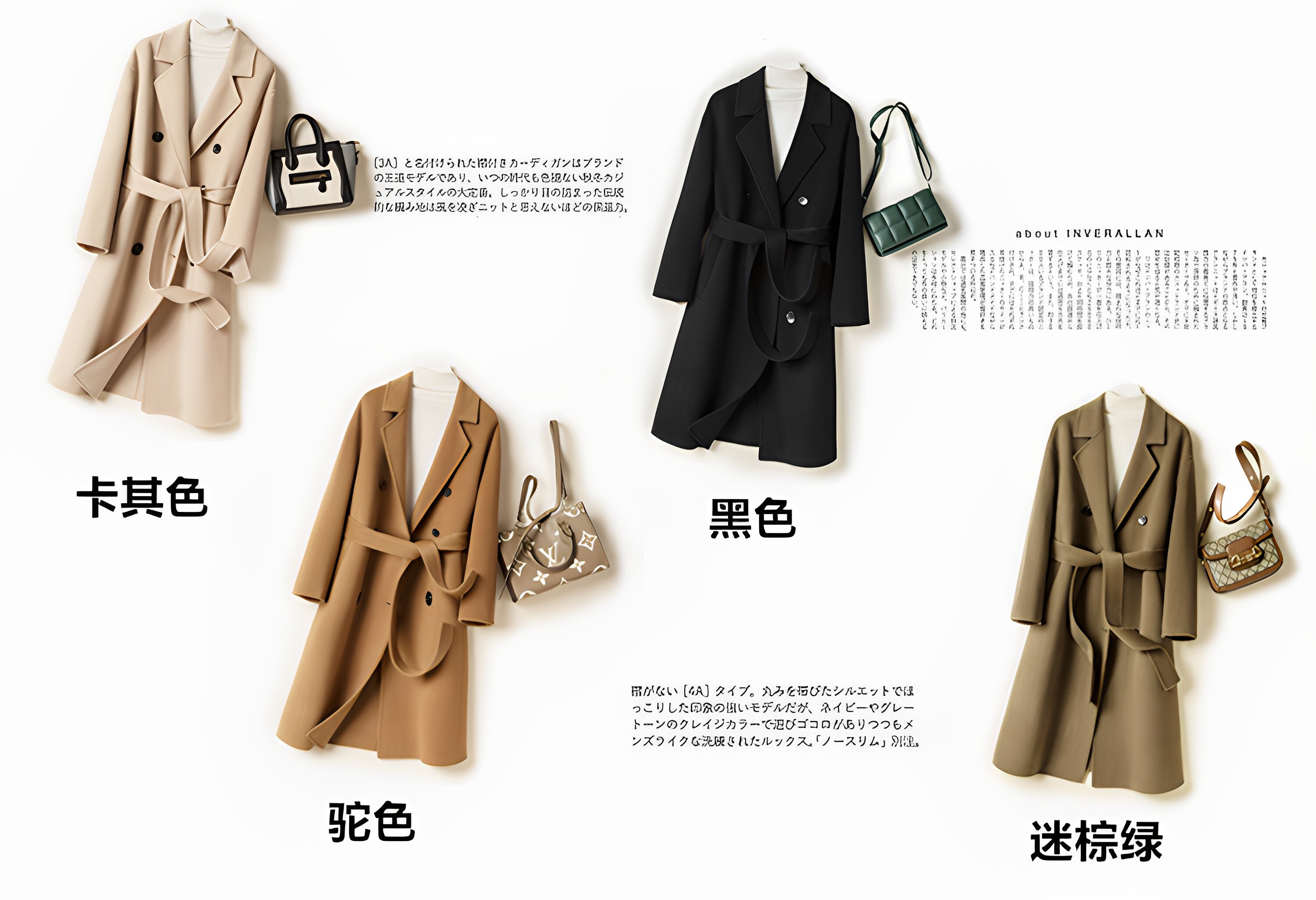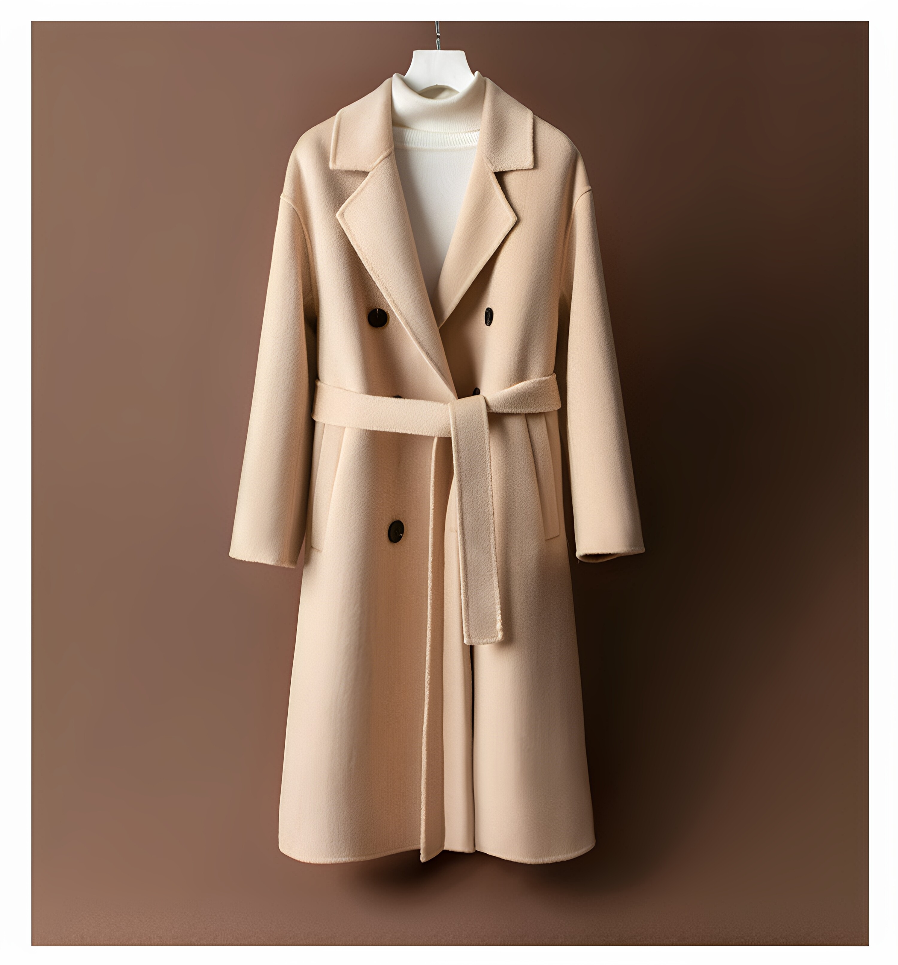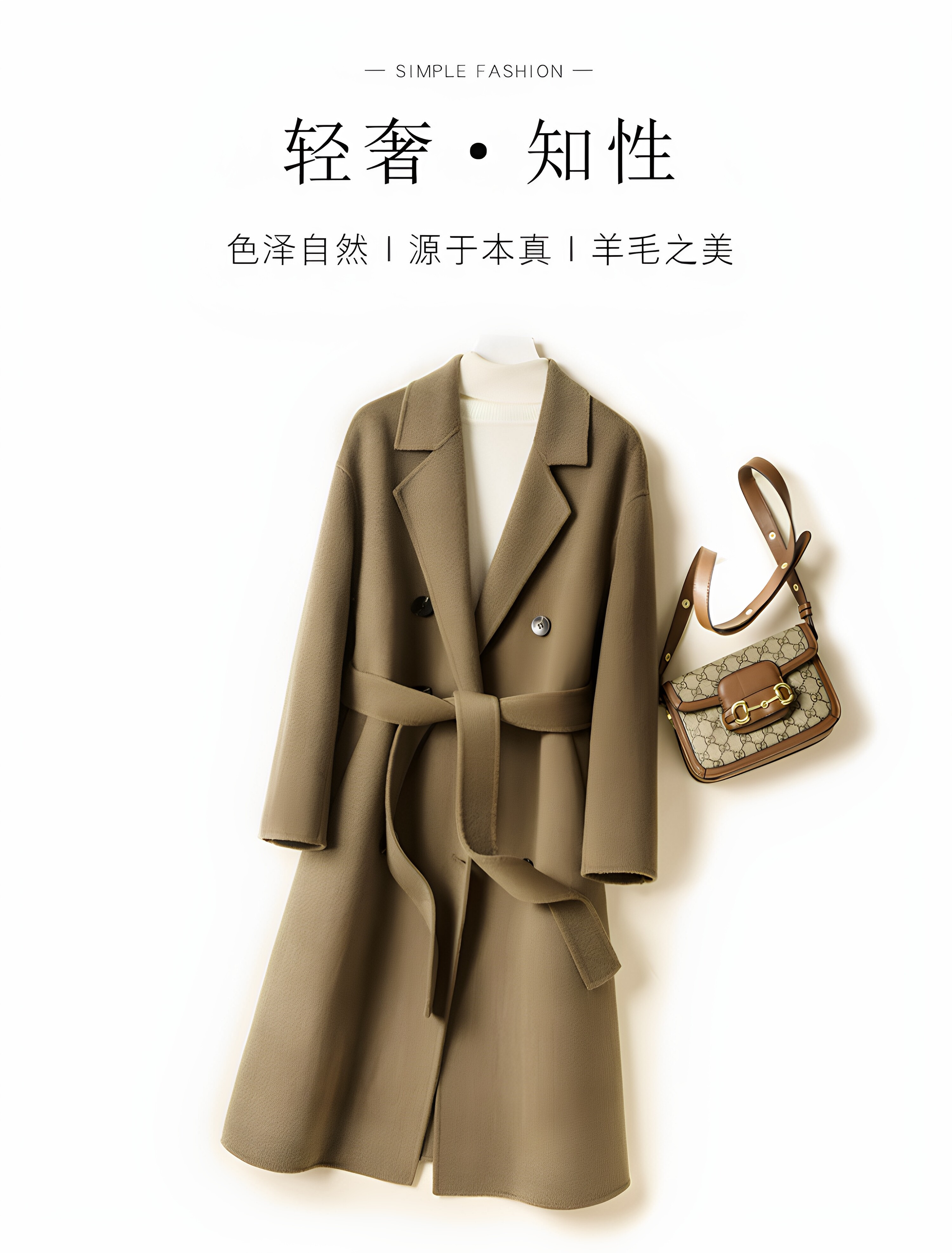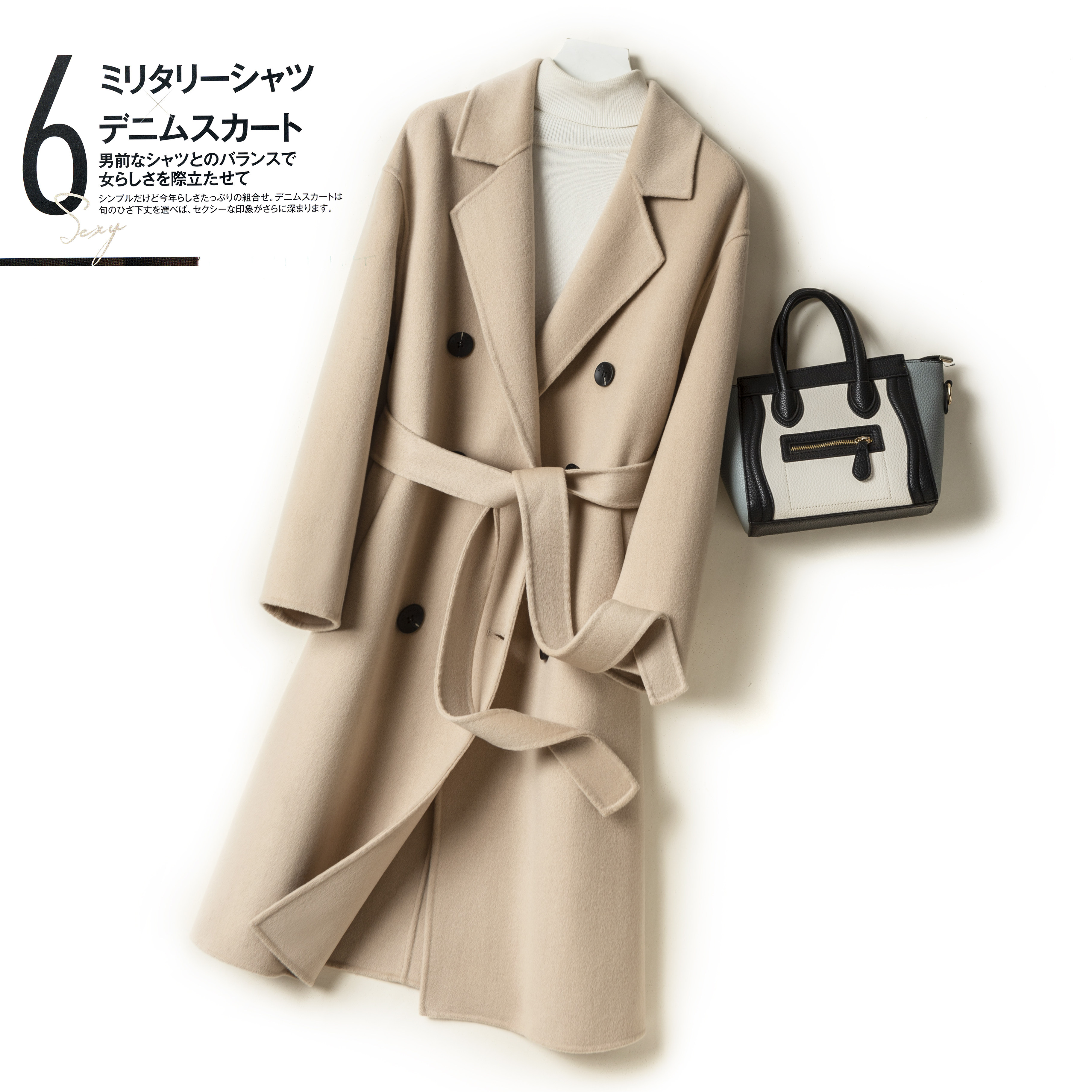 New Autumn and Winter Women's Double-Sided Wool Coat, Mid-Length, 100% Wool, Double-Breasted, Loose-Fitting, Solid Color Coat