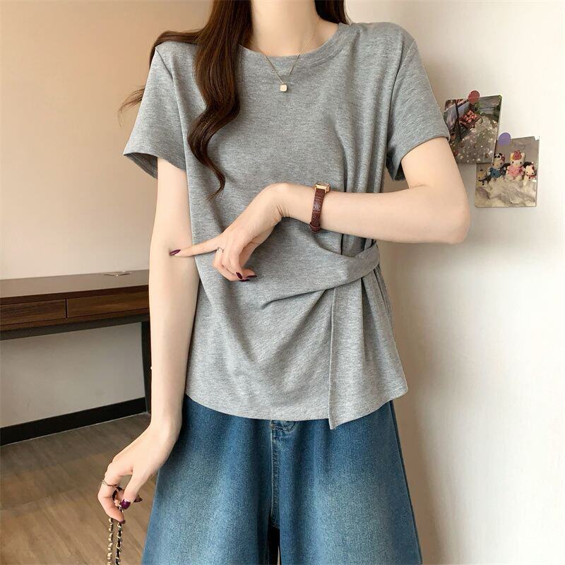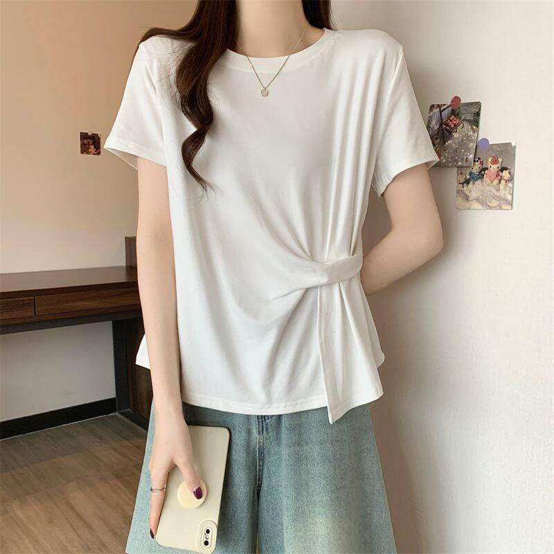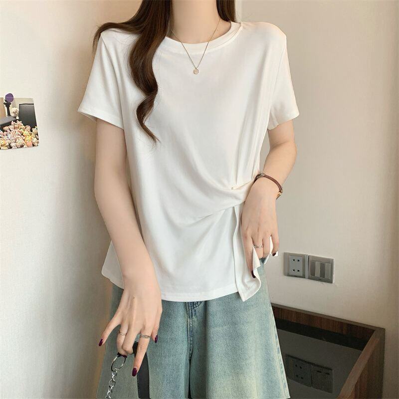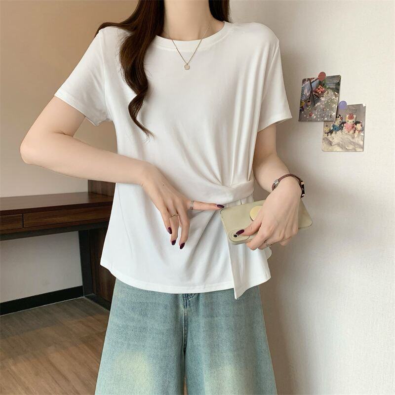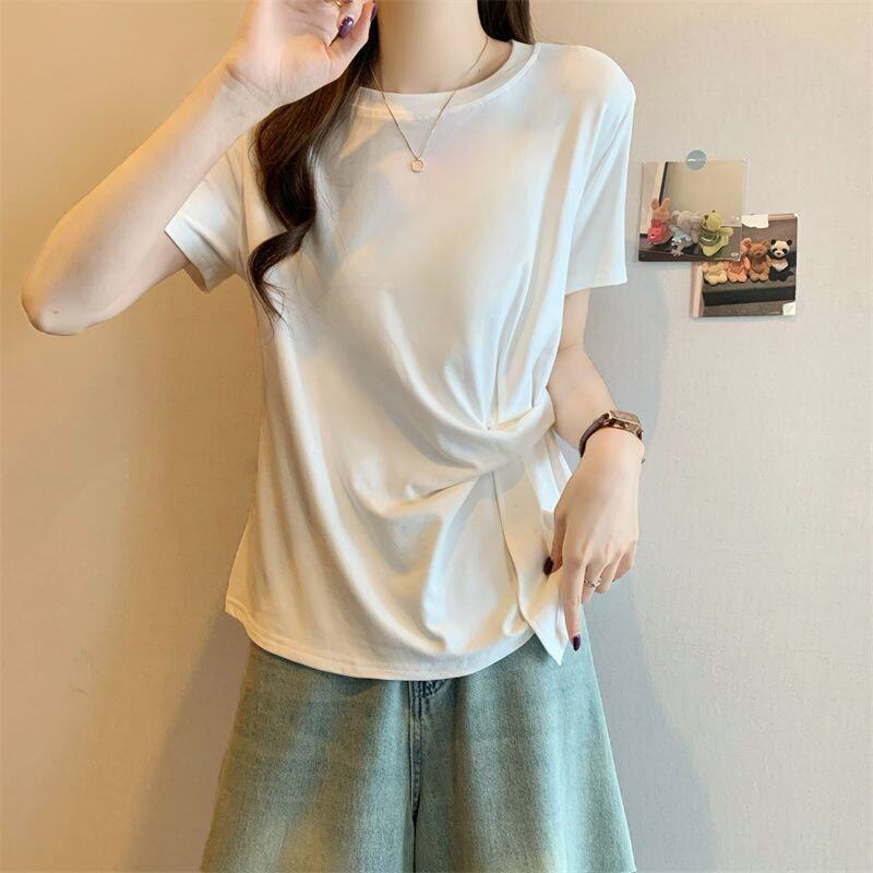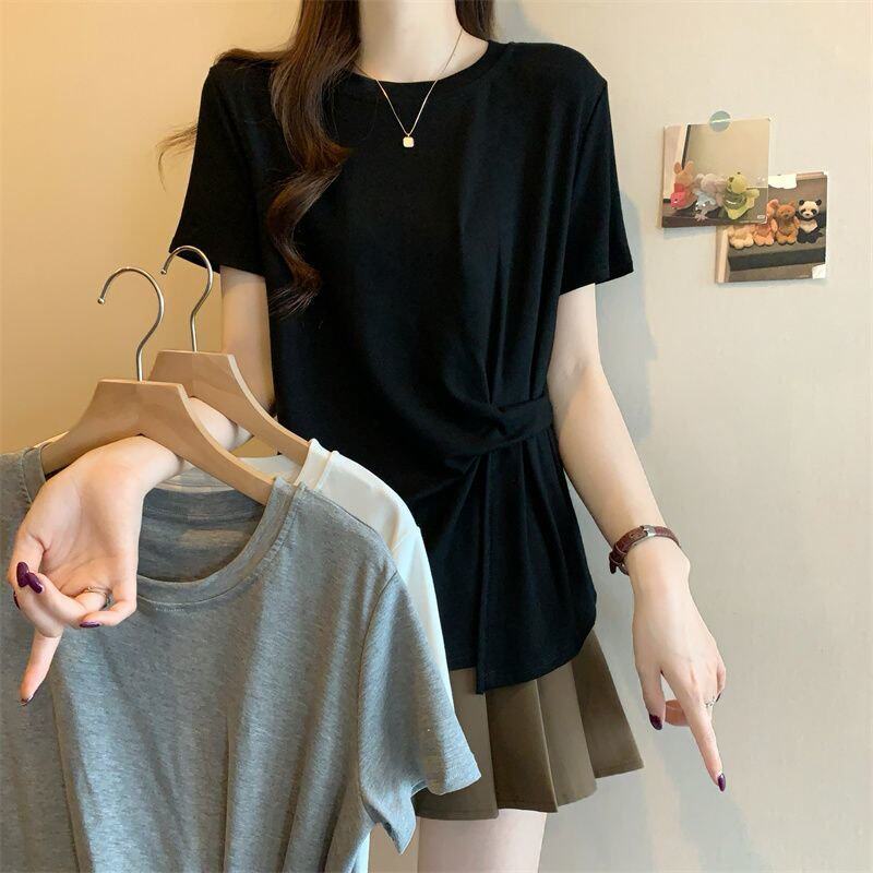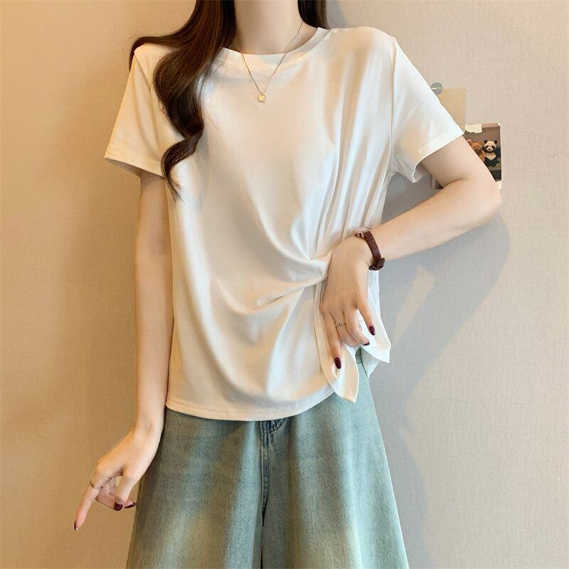 Plus Size Asymmetrical Design Short-Sleeved T-Shirt for Women Spring and Summer 2025 New Style Loose and Slimming Fashionable Outer Wear Two-Piece Set