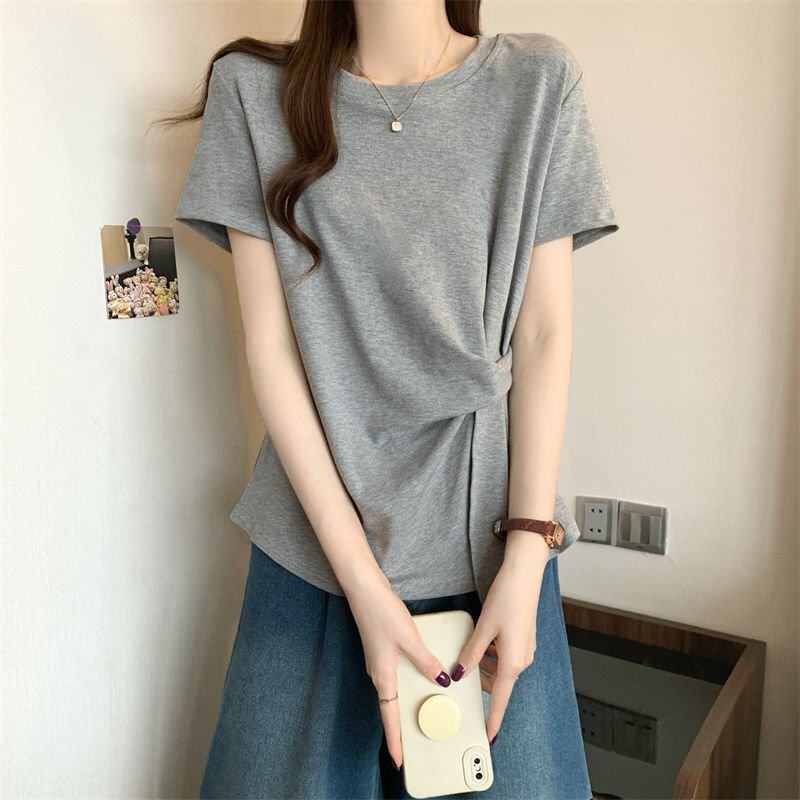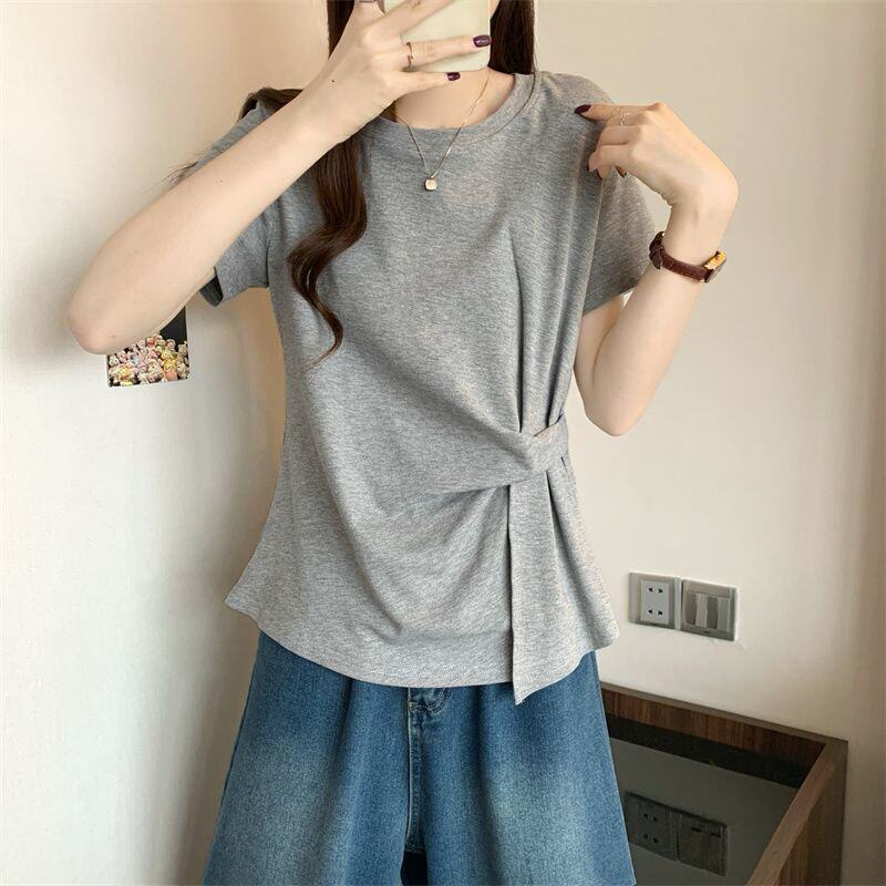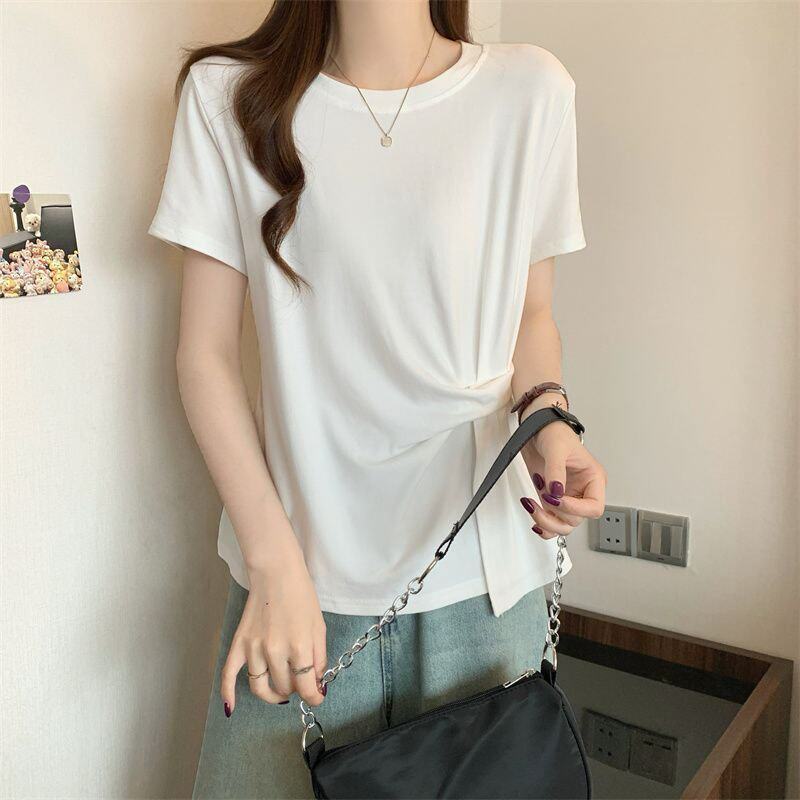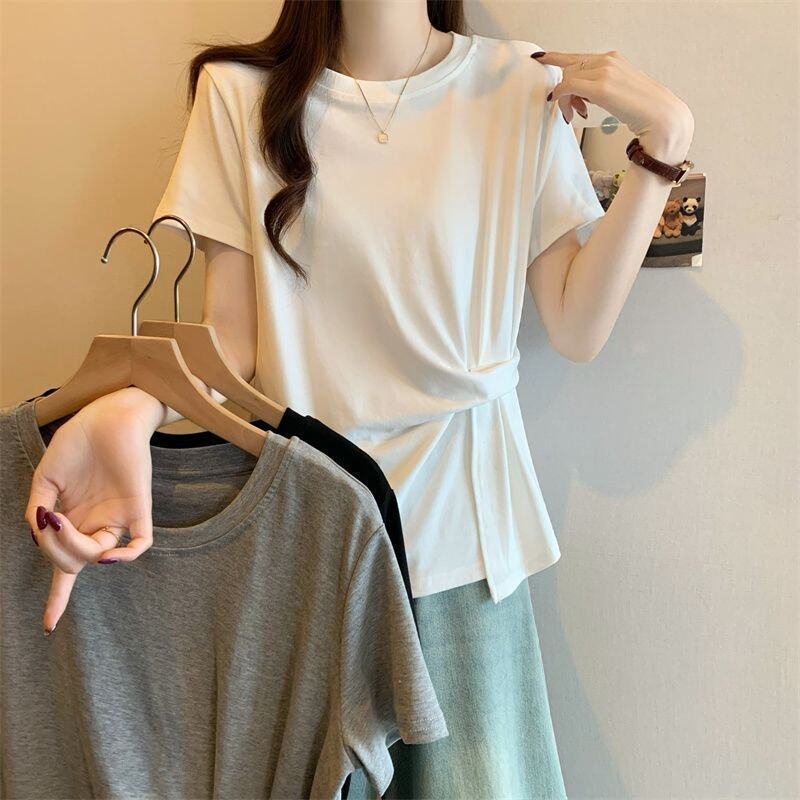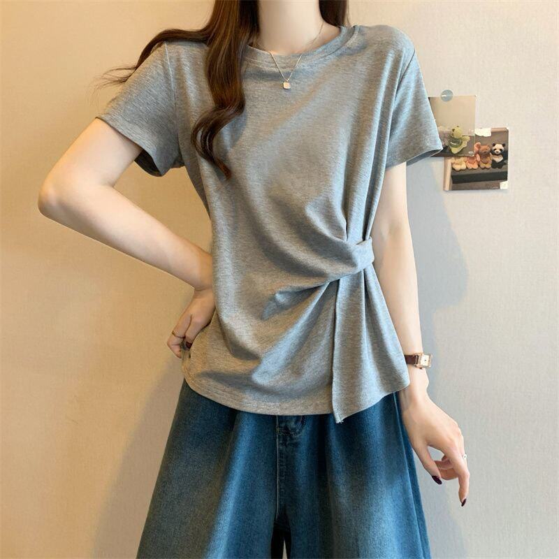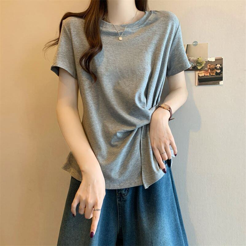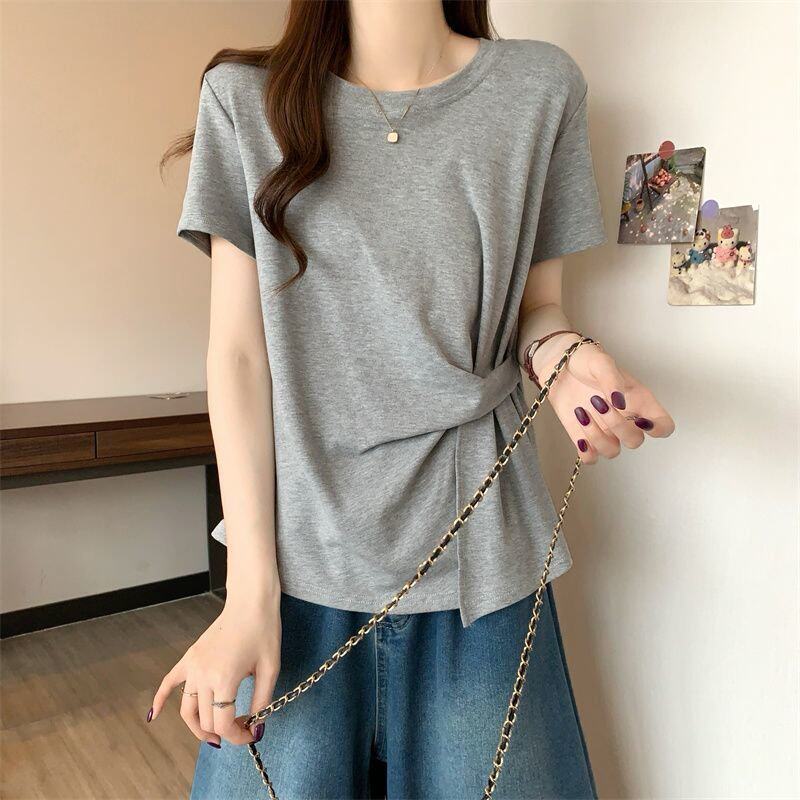 Plus Size Asymmetrical Design Short-Sleeved T-Shirt for Women Spring and Summer 2025 New Style Loose and Slimming Fashionable Outer Wear Two-Piece Set