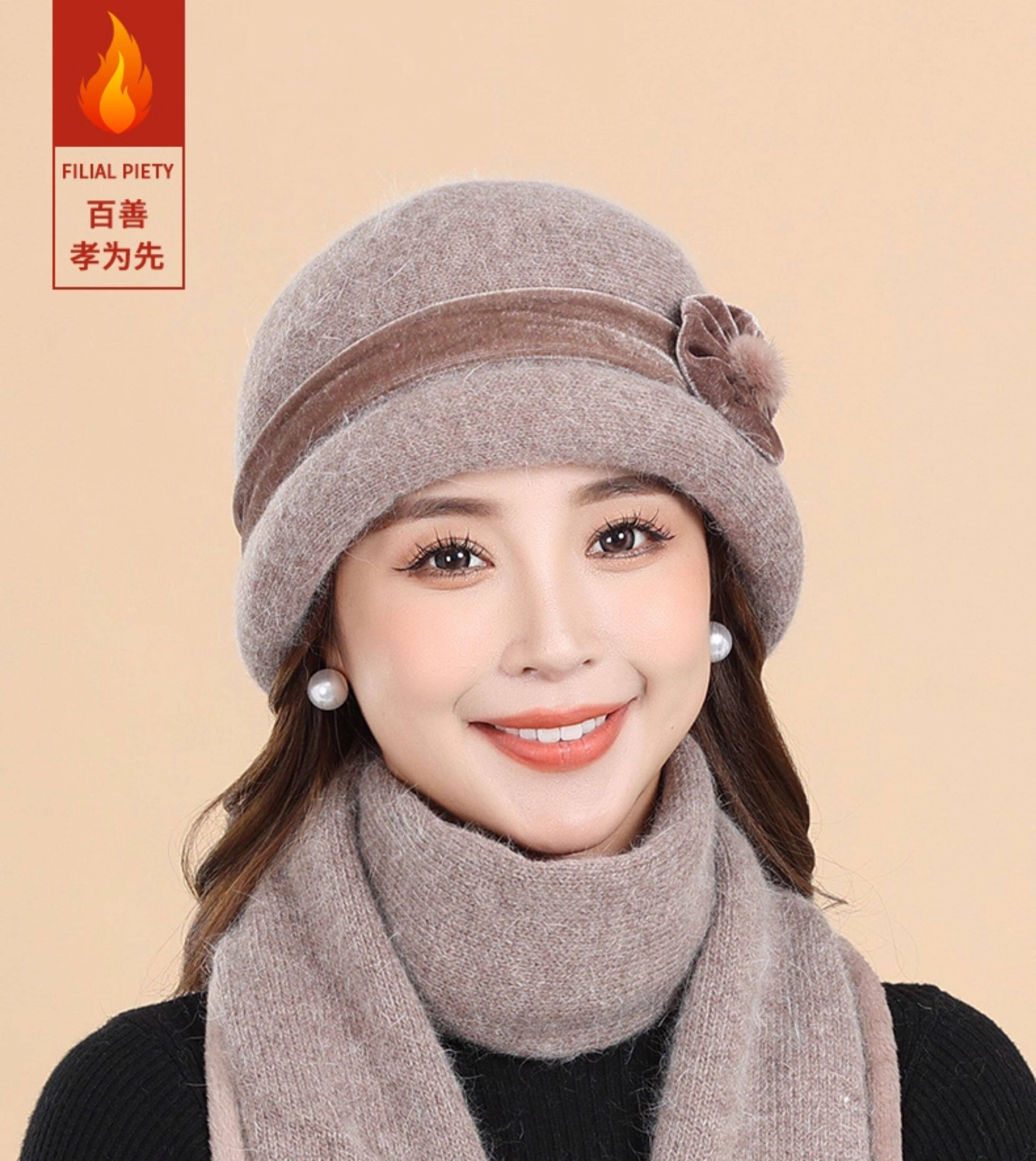 Middle-aged and elderly 2025 new woolen hats for mothers and the elderly women's winter grandmother and old lady rabbit fur warm hats