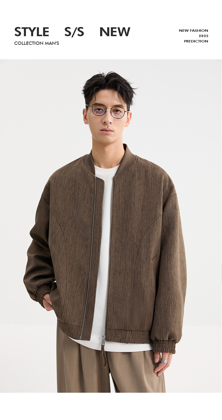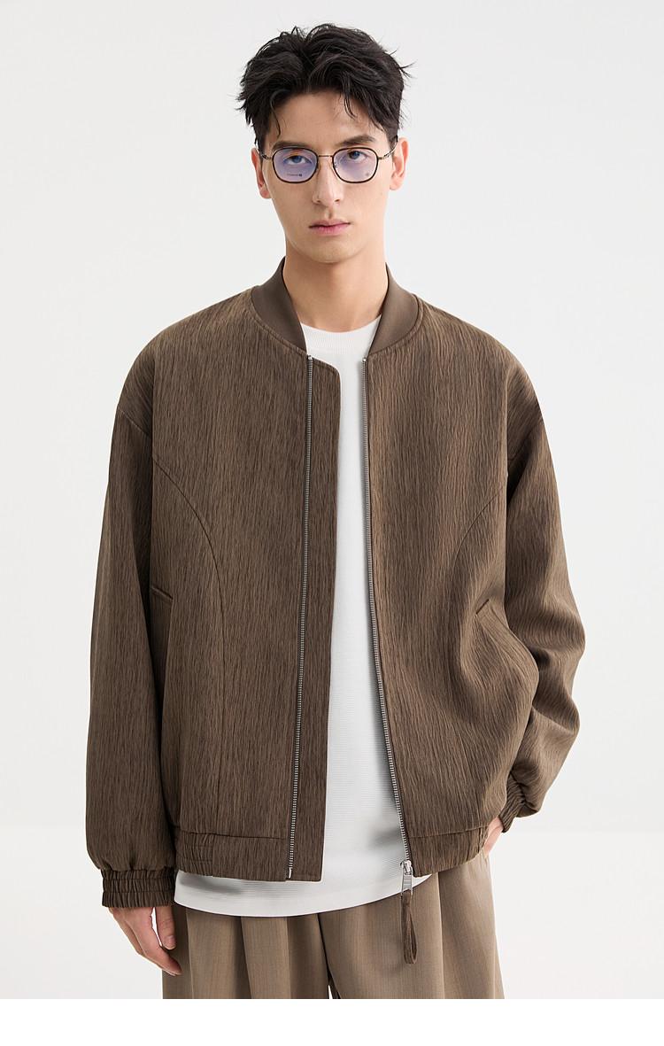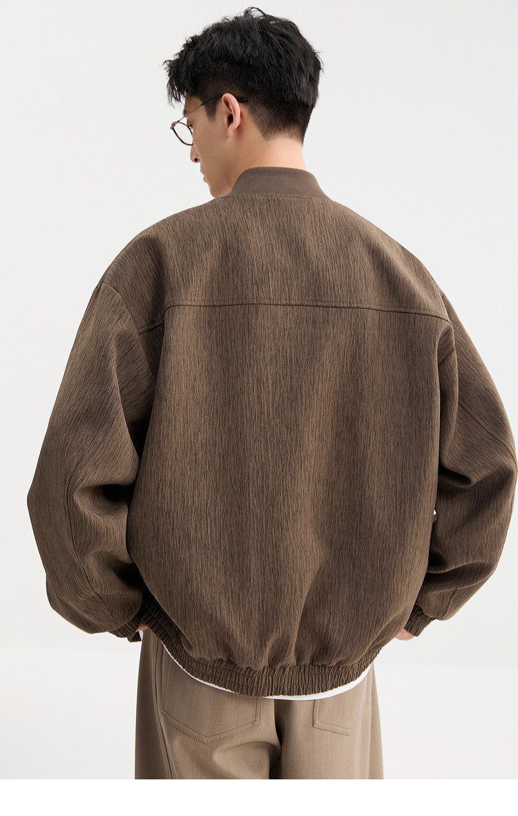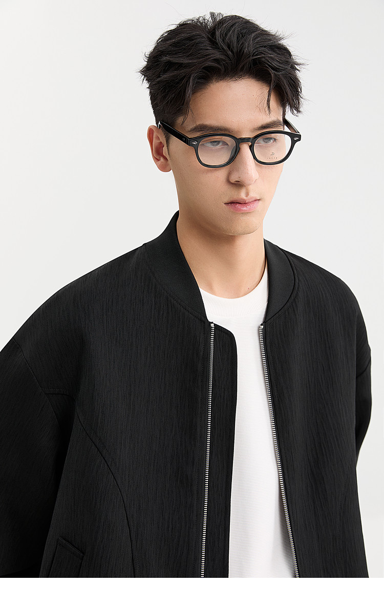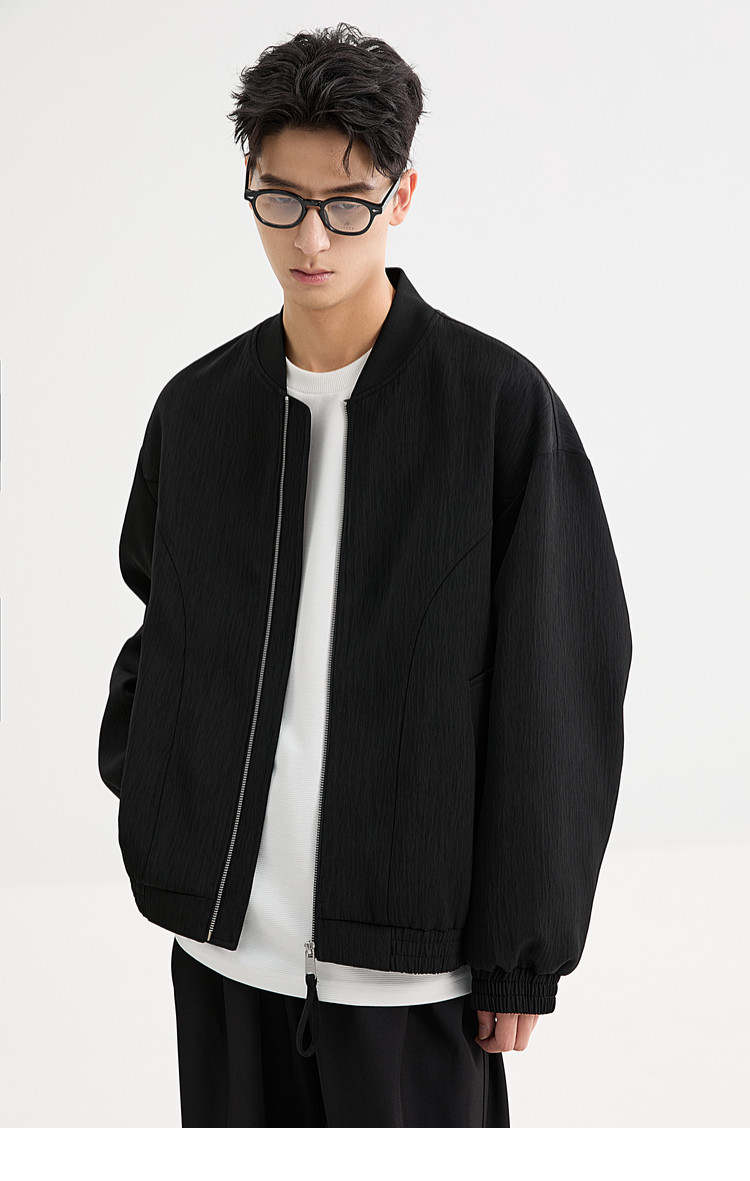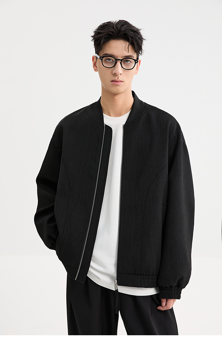 Black Zeming Men's Bark Wrinkle Textured Baseball Collar Jacket 2025 Autumn New Korean Style Commuting Loose Jacket