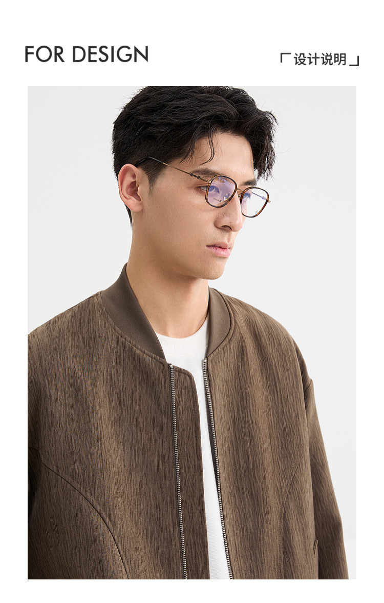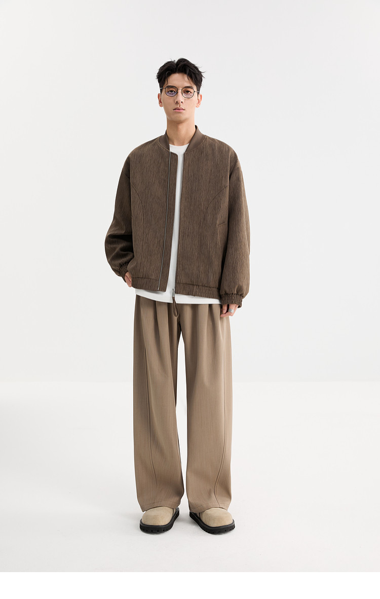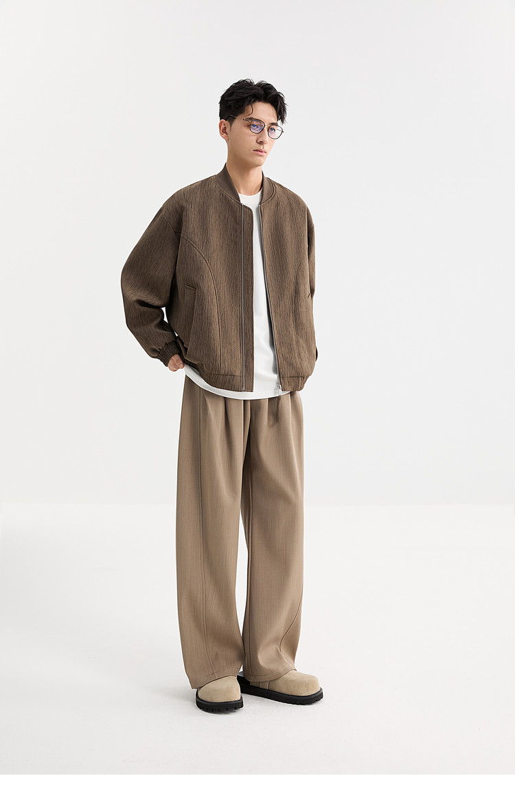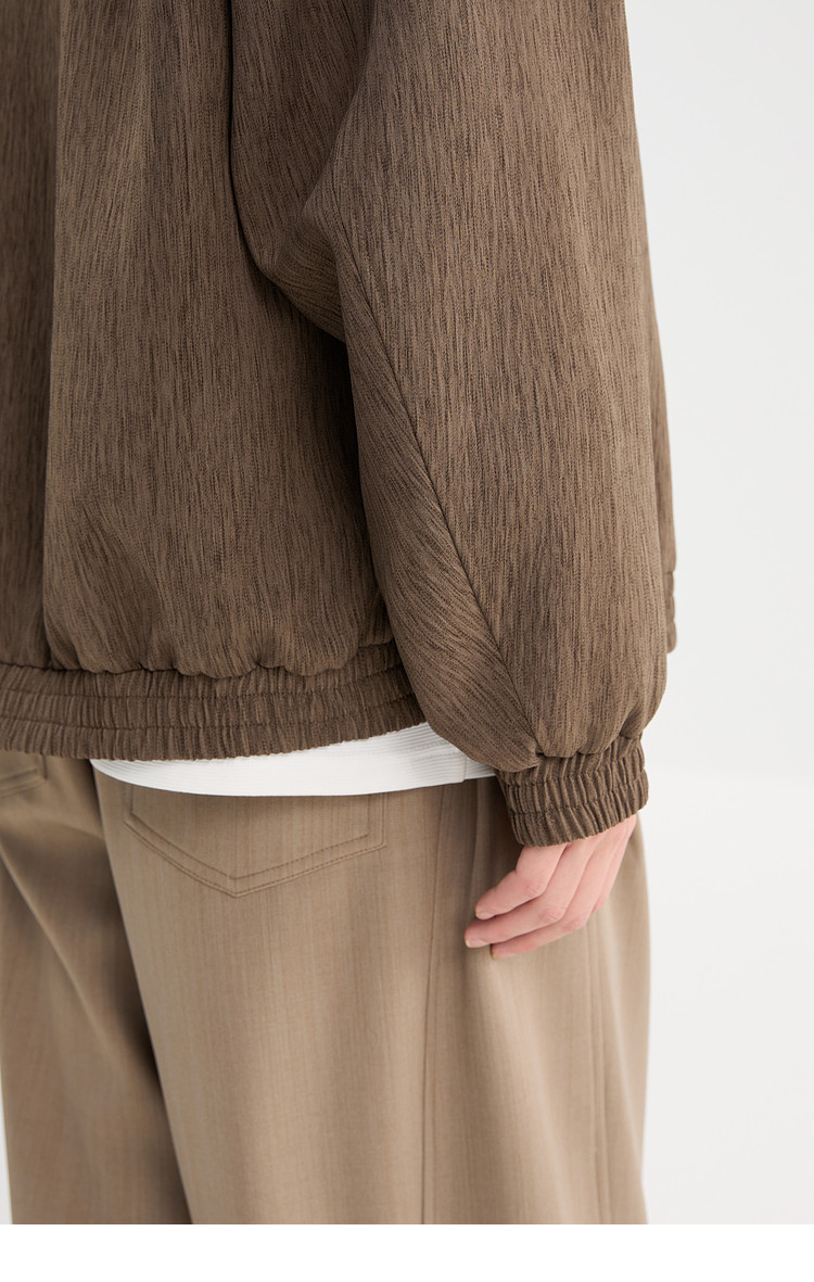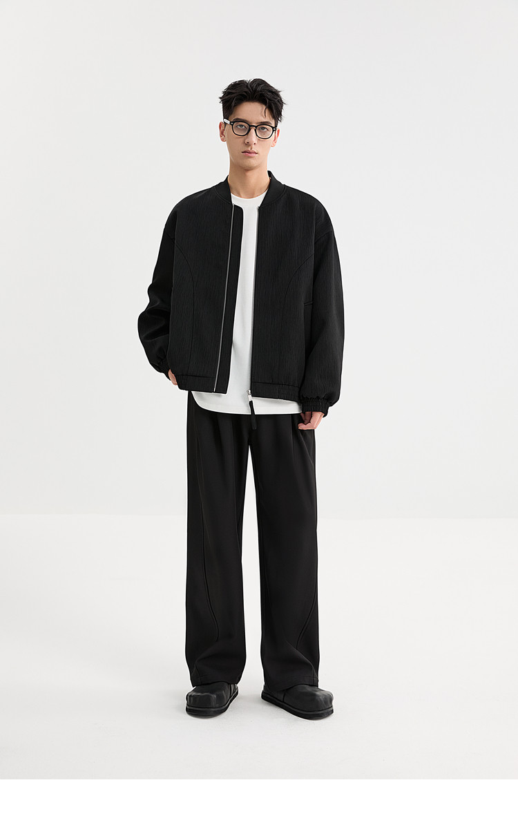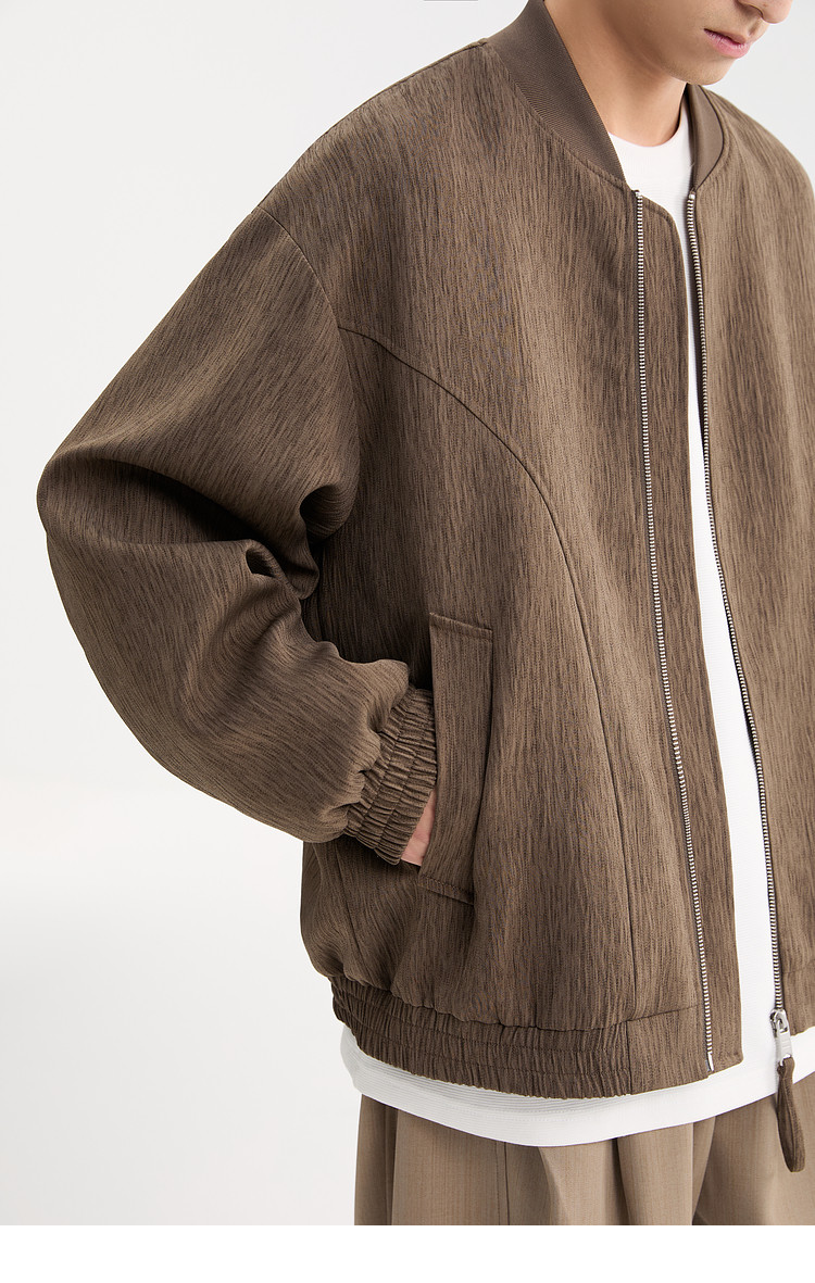 Black Zeming Men's Bark Wrinkle Textured Baseball Collar Jacket 2025 Autumn New Korean Style Commuting Loose Jacket