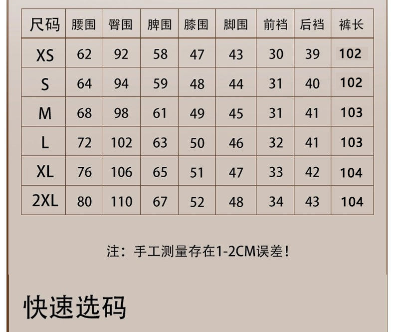 Outseam (cm) 99 cm 101.5 cm 104 cm 106.5 cm 109 cm