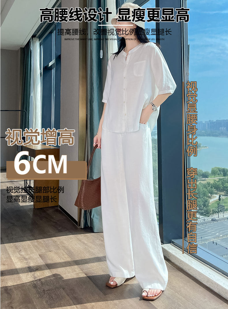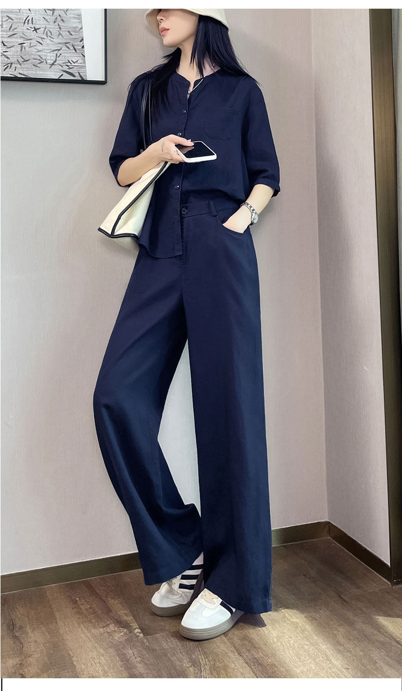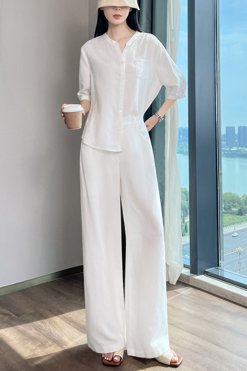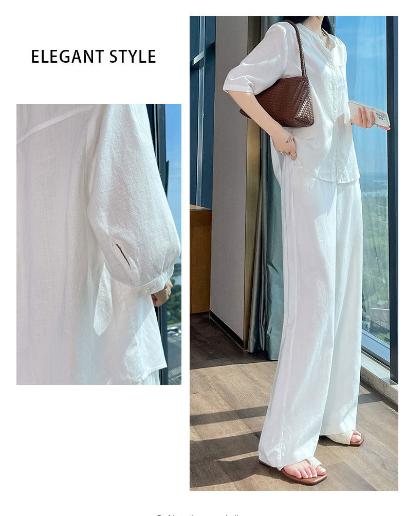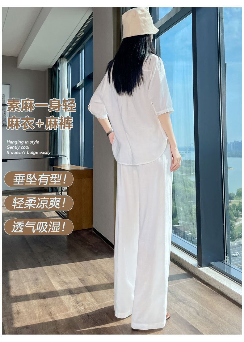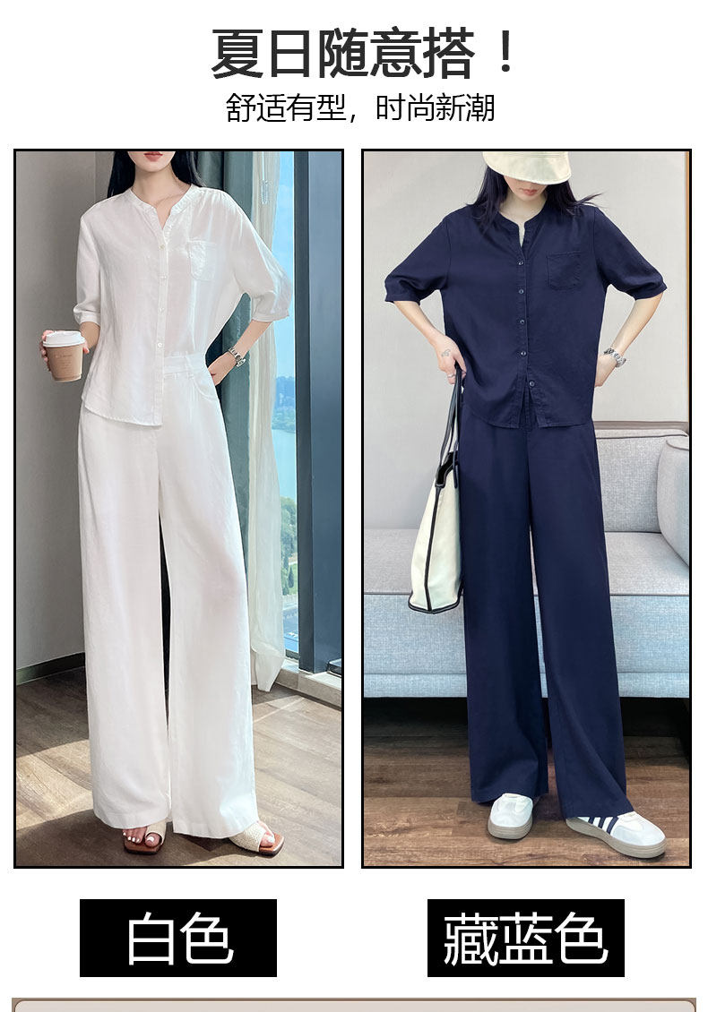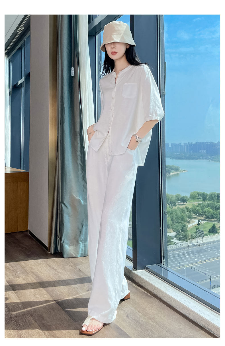 Color Classification White Linen Top【6828】,Navy Blue Linen Top【6828】,White Linen Wide-Leg Pants【6826】,Navy Blue Linen Wide-Leg Pants [6826],White Top + White Wide-Leg Pants,Navy Blue Top + Navy Blue Wide-Leg Pants