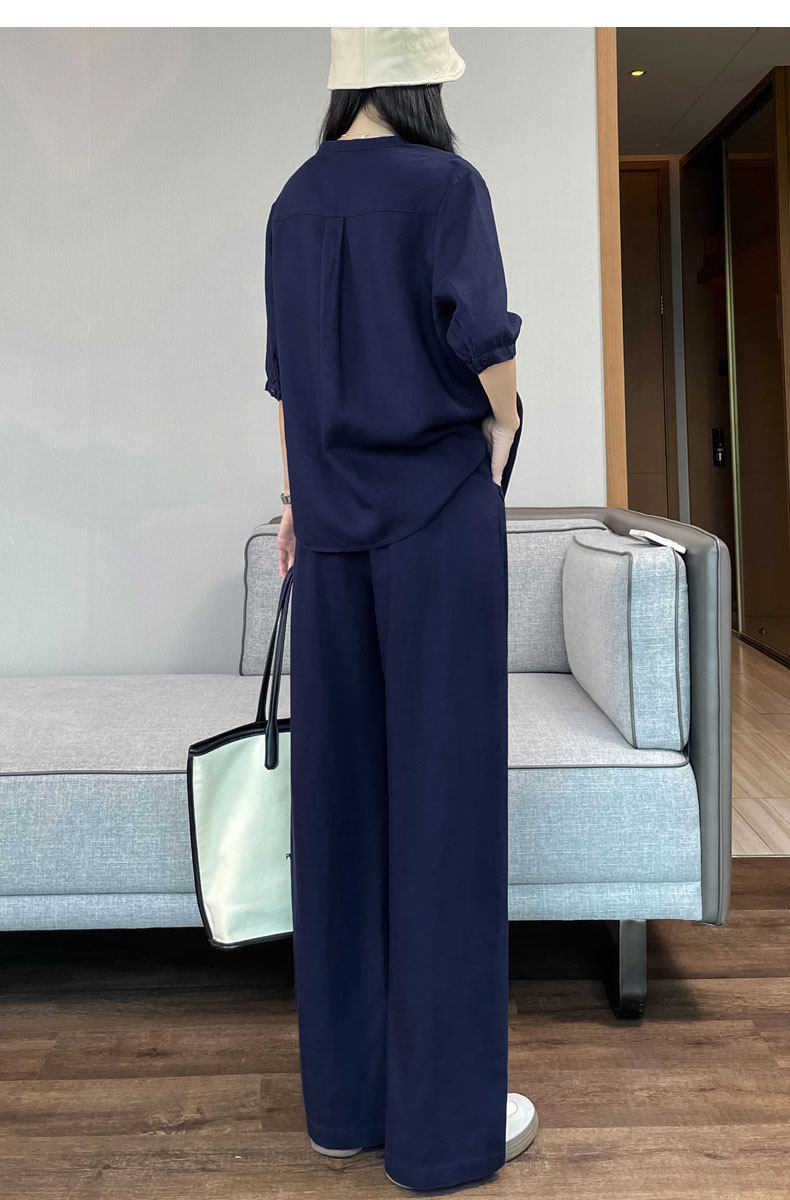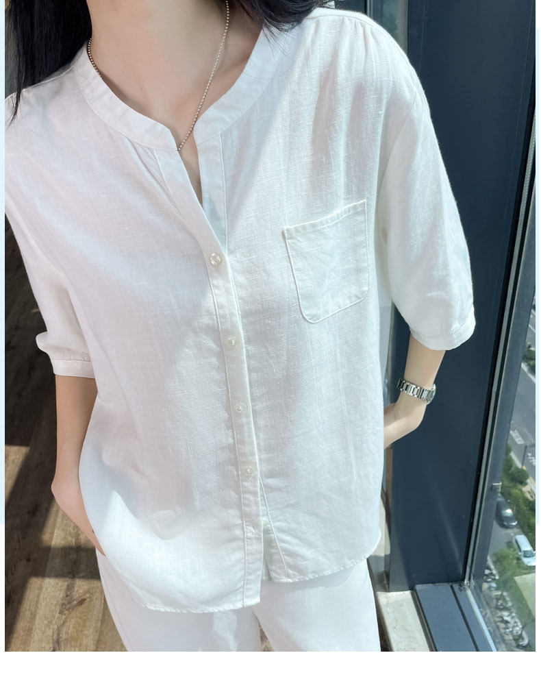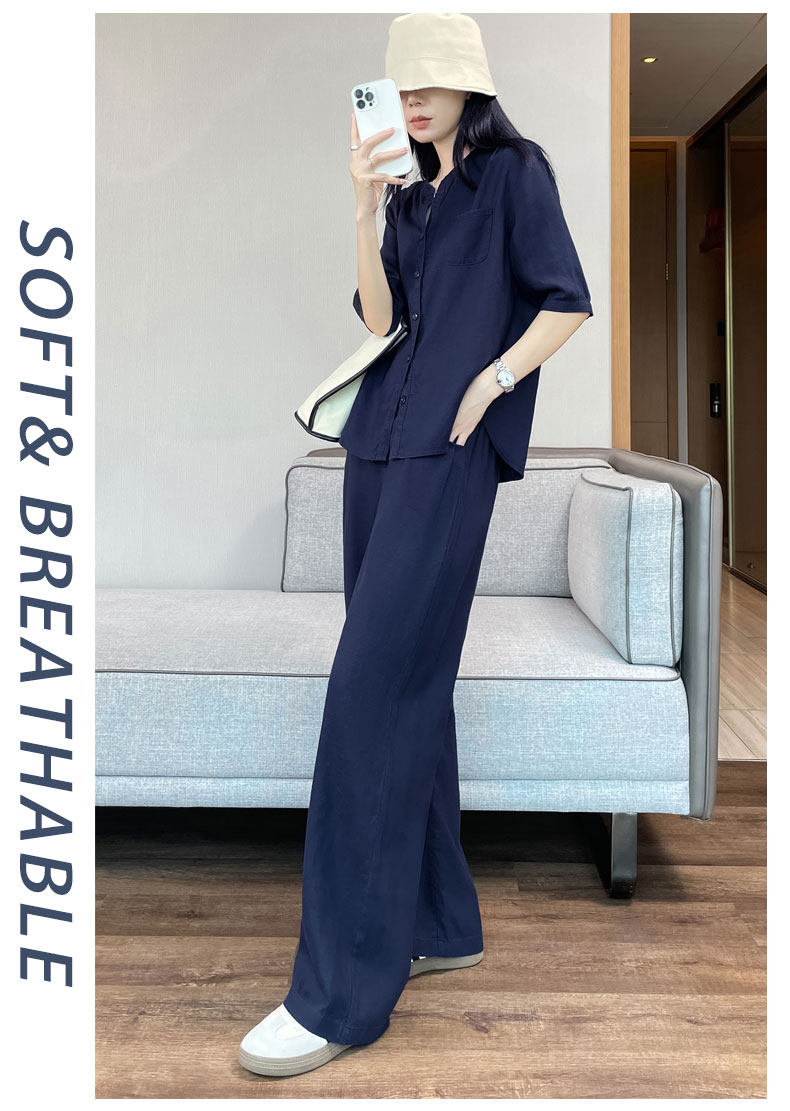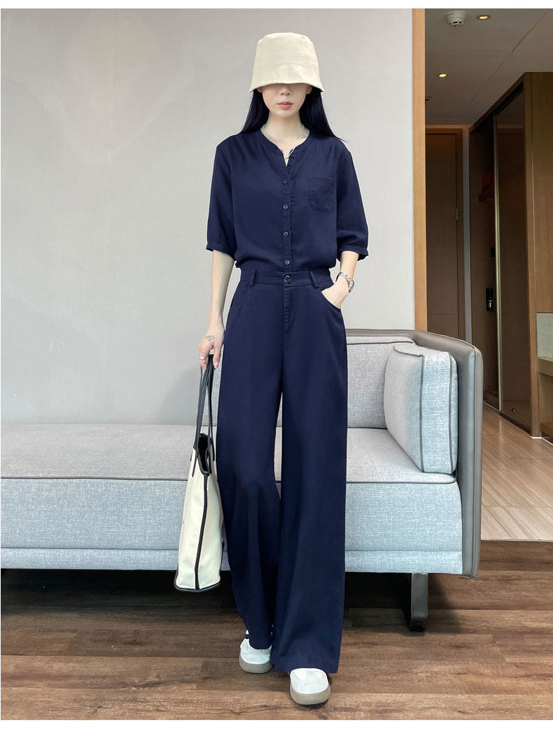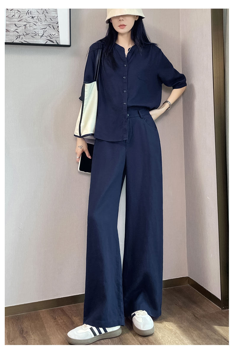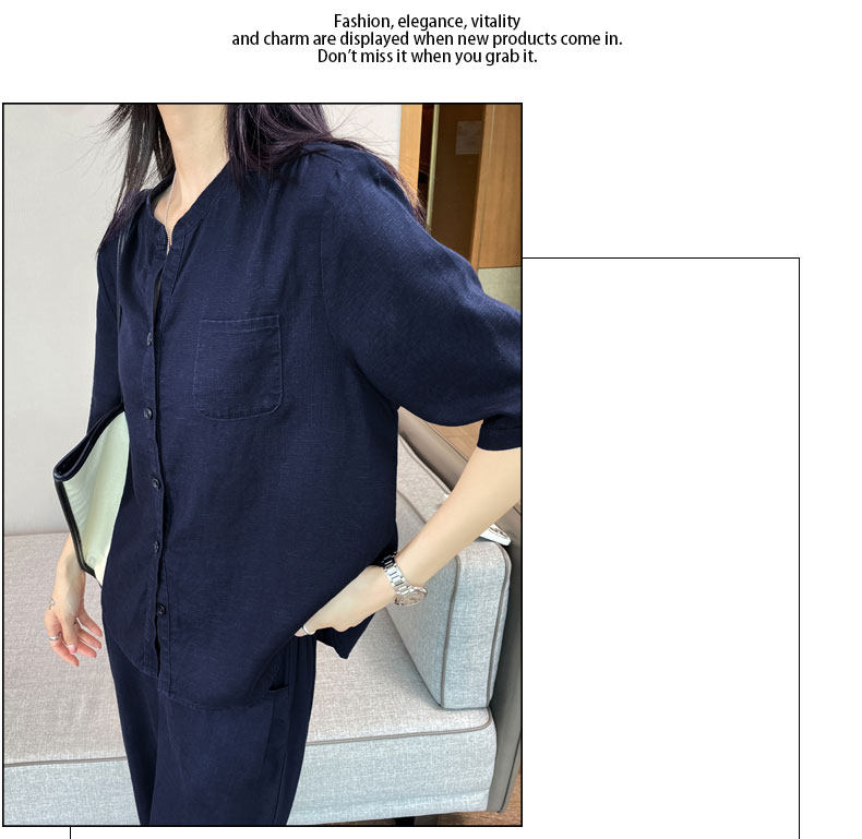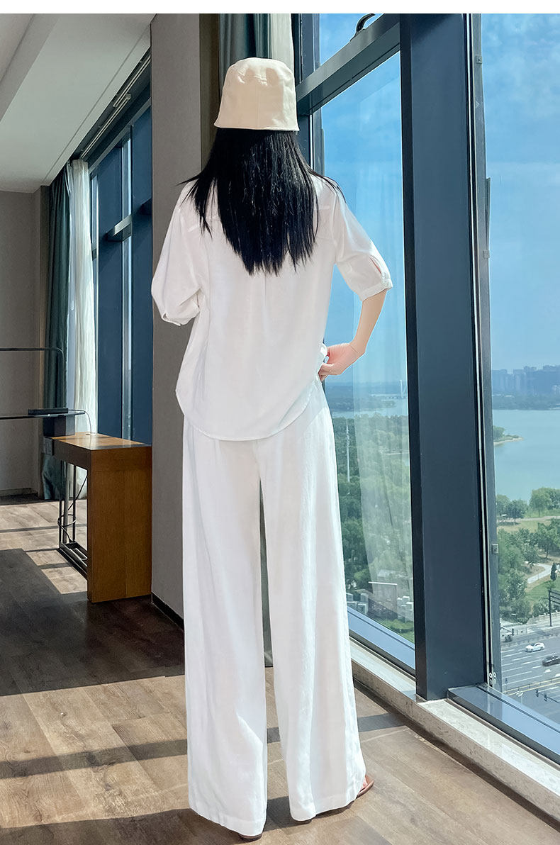 Color Classification White Linen Top【6828】,Navy Blue Linen Top【6828】,White Linen Wide-Leg Pants【6826】,Navy Blue Linen Wide-Leg Pants [6826],White Top + White Wide-Leg Pants,Navy Blue Top + Navy Blue Wide-Leg Pants