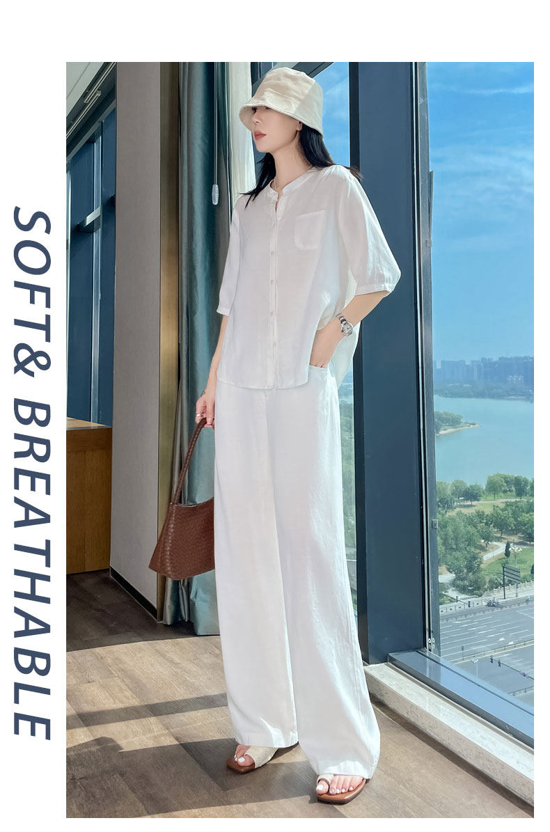 Italian-Style Light Luxury, Relaxed and Breathable Tencel Linen High-End Old Money Style Linen Shirt and Wide-Leg Pants Two-Piece Set