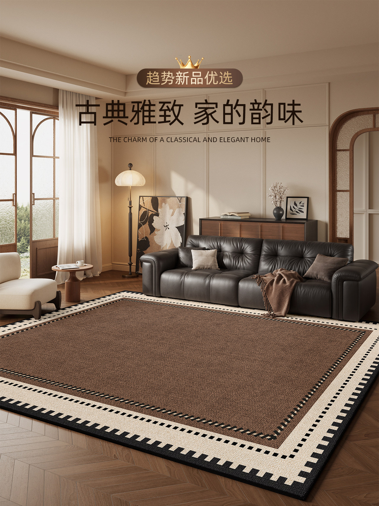 Carpet for Living Room, Antique Style, Washable and Wipeable, Special Waterproof, Non-Slip, Stain-Resistant Floor Mat for Bedroom, Bedside, Coffee Table