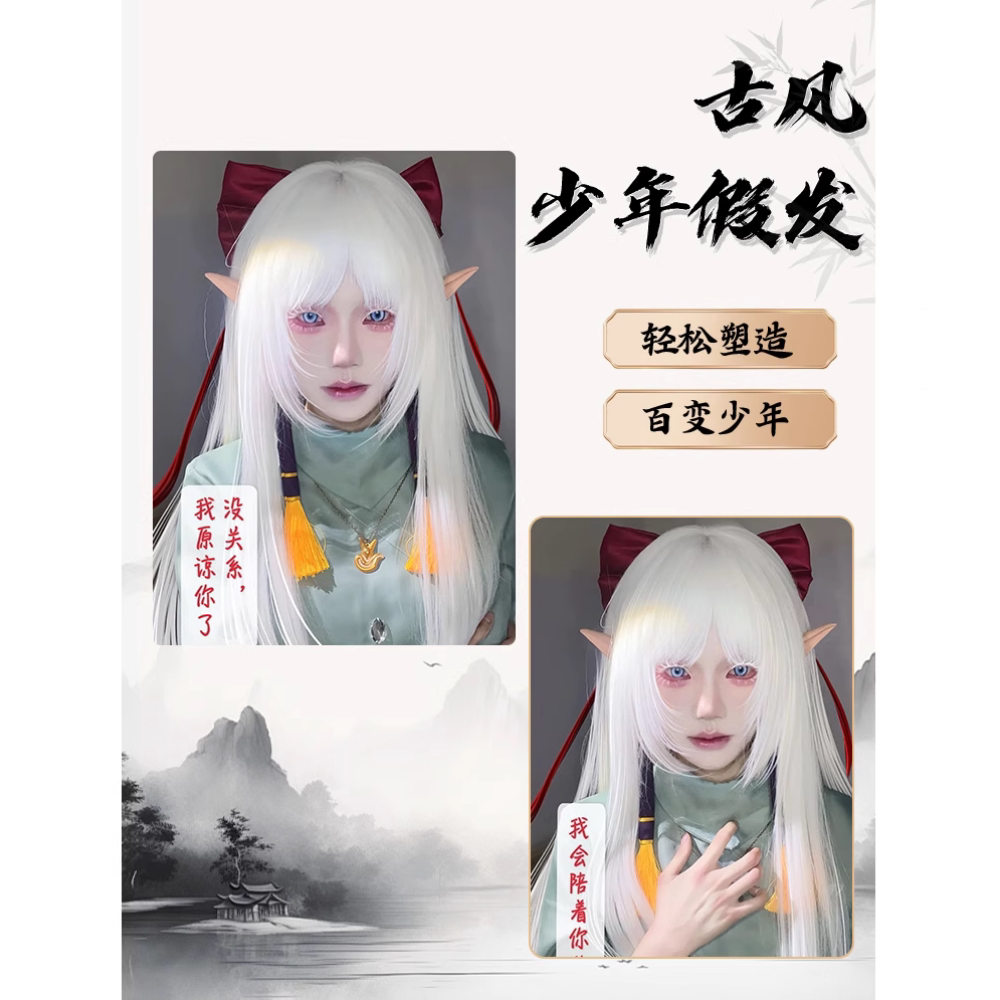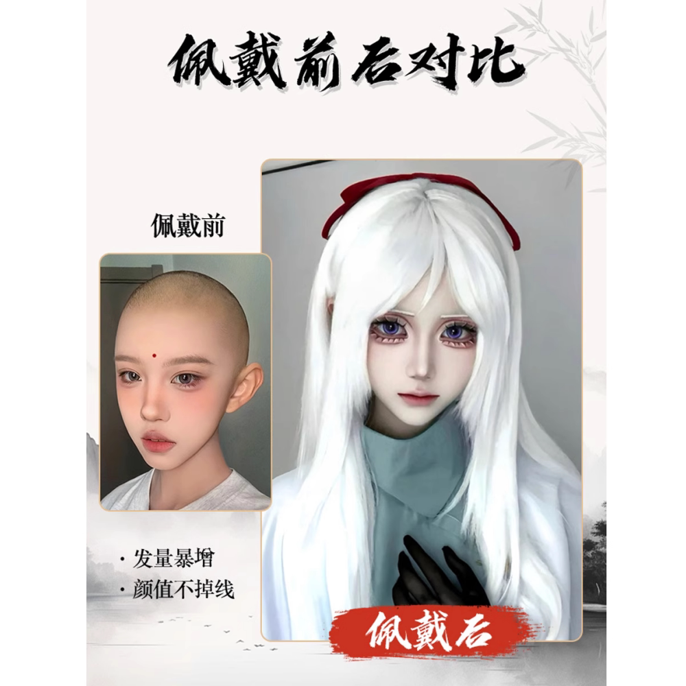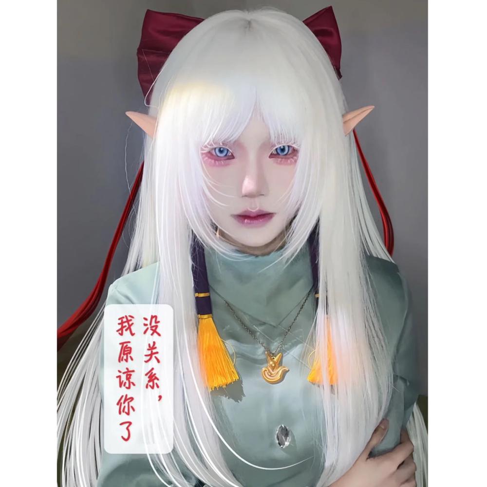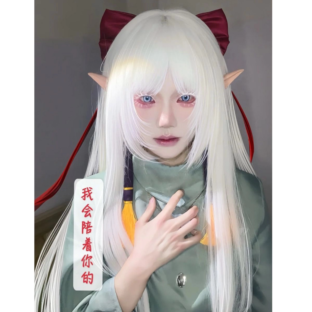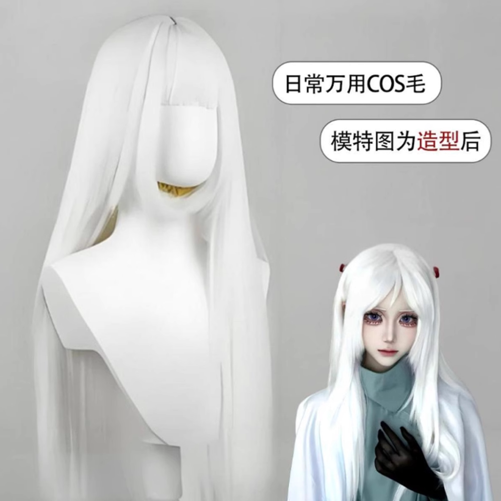 Fake hair meets self-inflicted little abandoned cos princess cut long hair white all-purpose student daily performance photo full headgear