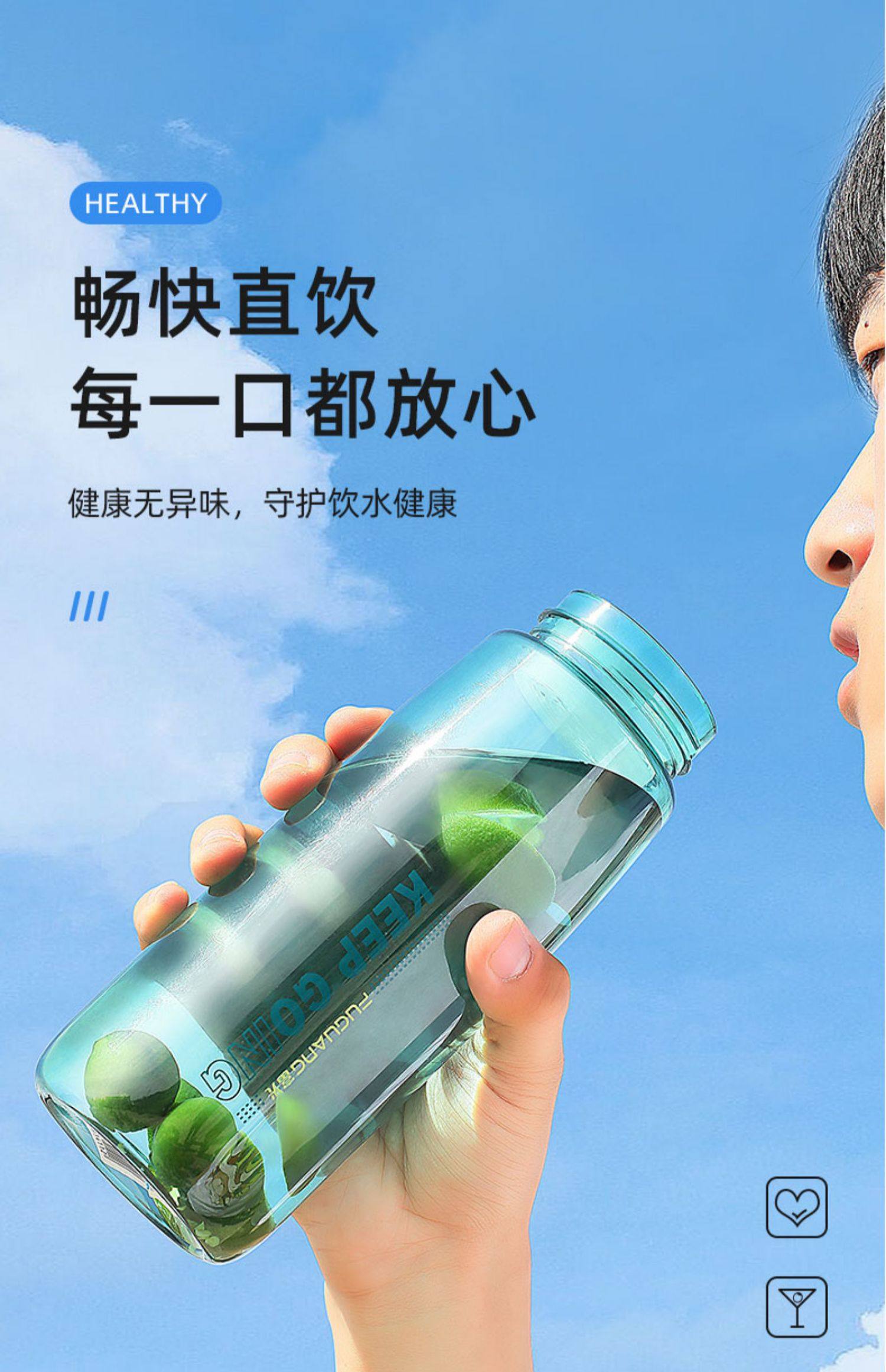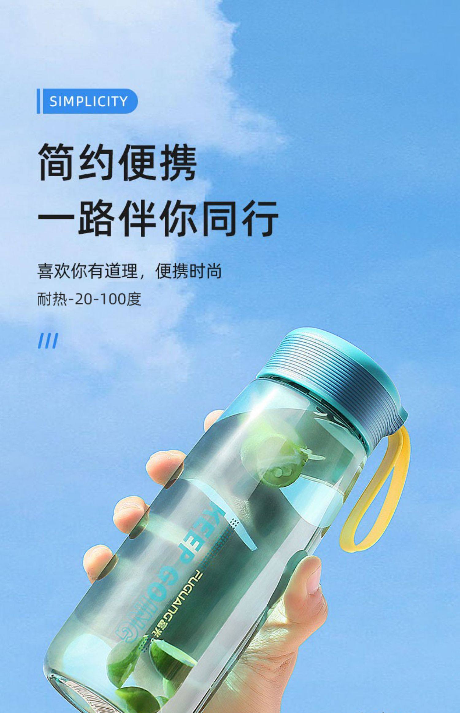 Fuguang Thickened Portable High-Temperature Resistant Plastic Water Cup for Students, Stylish Special Cup for School, Food-Grade Space Cup