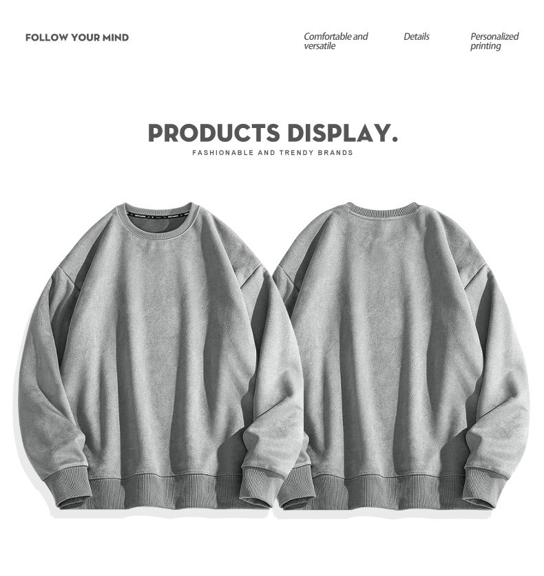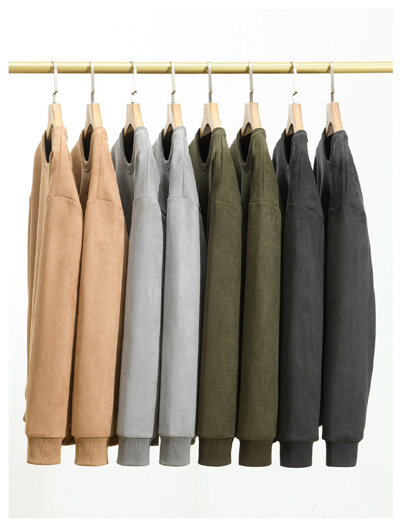 Khaki Sweatshirt for Men 2025 New Autumn Round Neck Suede Long-Sleeved Men's Top Loose Fit Without Hood