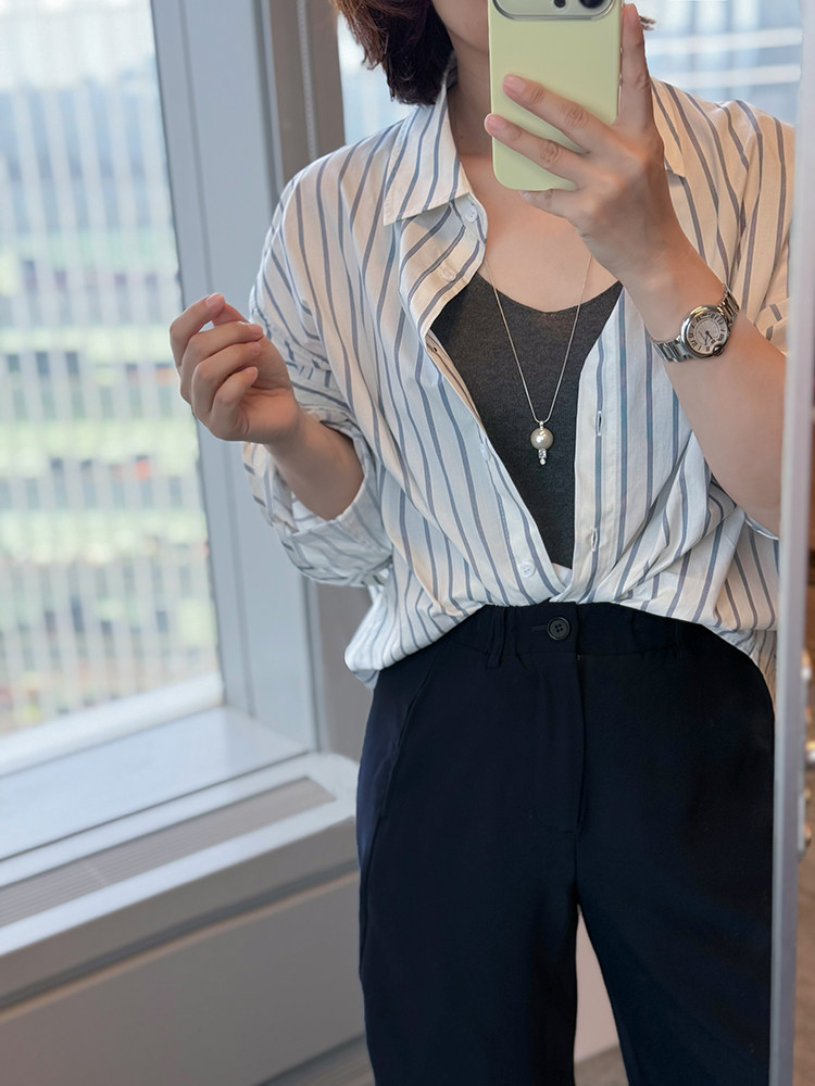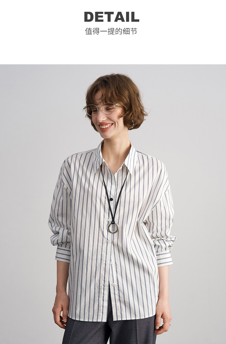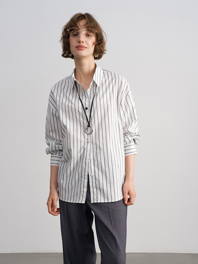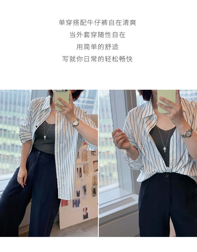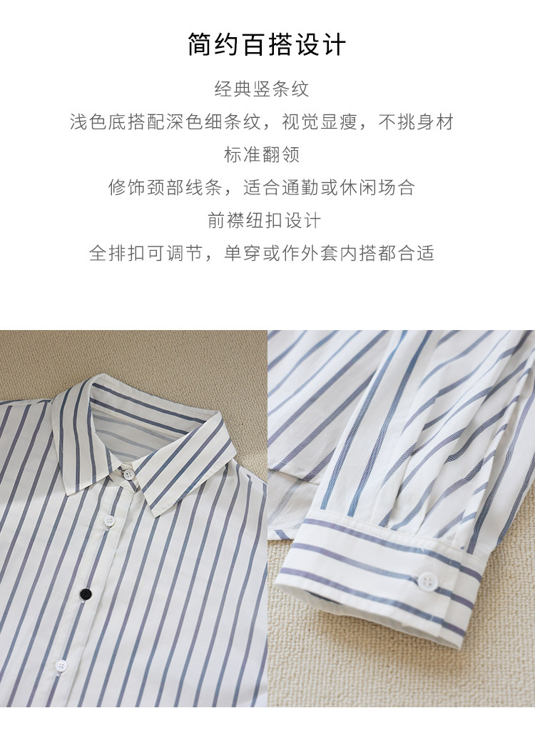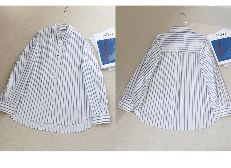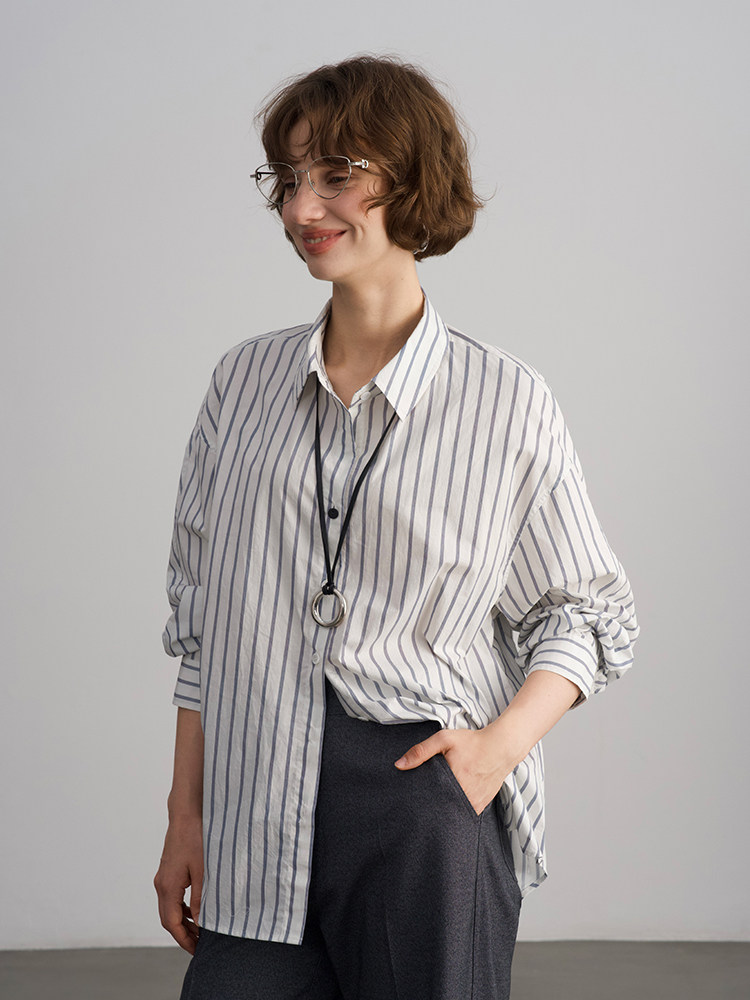 Anna Kengen Sea Breeze Diary 100% Cotton Striped Comfortable Commuting Casual Versatile Simple Fashionable Long Sleeve Shirt