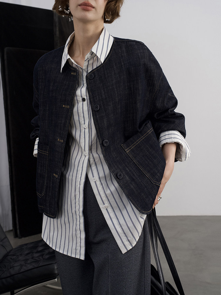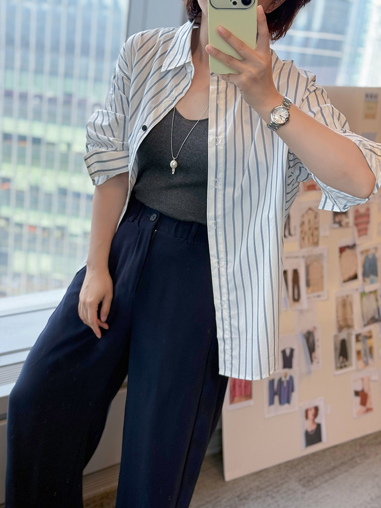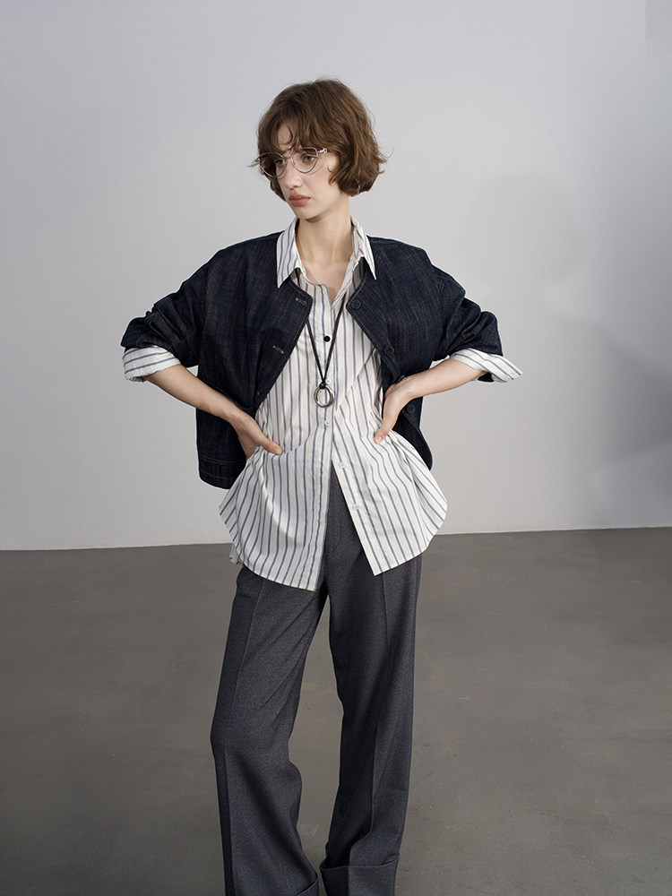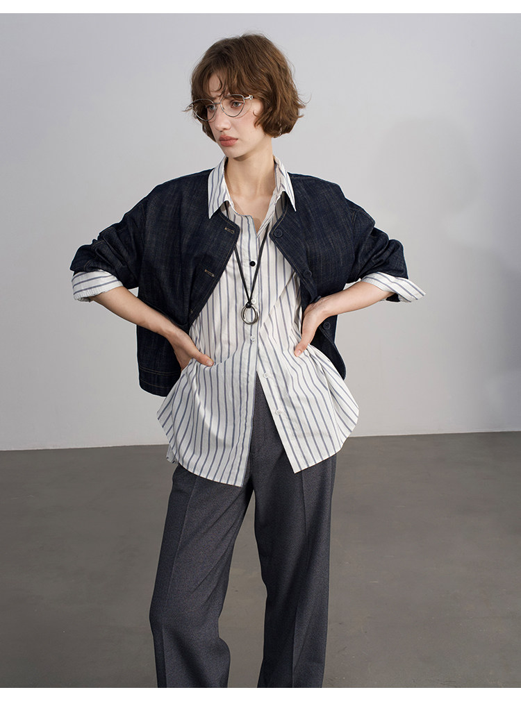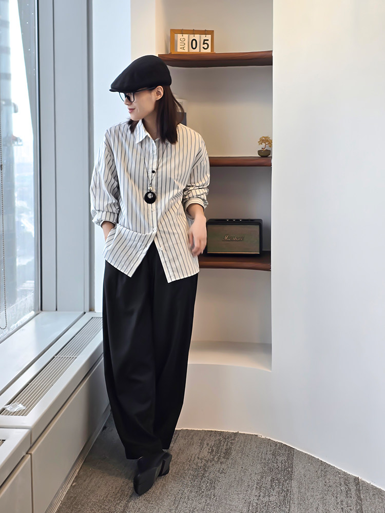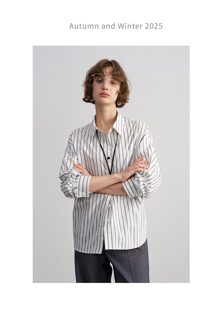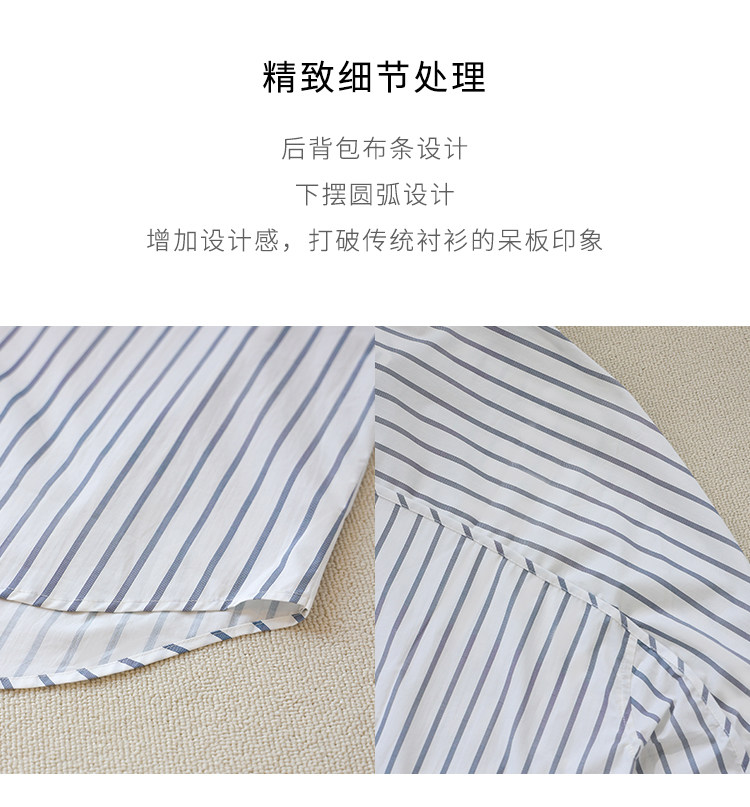 Anna Kengen Sea Breeze Diary 100% Cotton Striped Comfortable Commuting Casual Versatile Simple Fashionable Long Sleeve Shirt