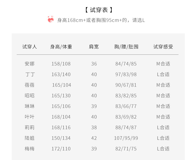 China (cm) 160-165/84-86 165-170 / 88-90 167-172 / 92-96 168-173 / 98-102 170-176 / 106-110