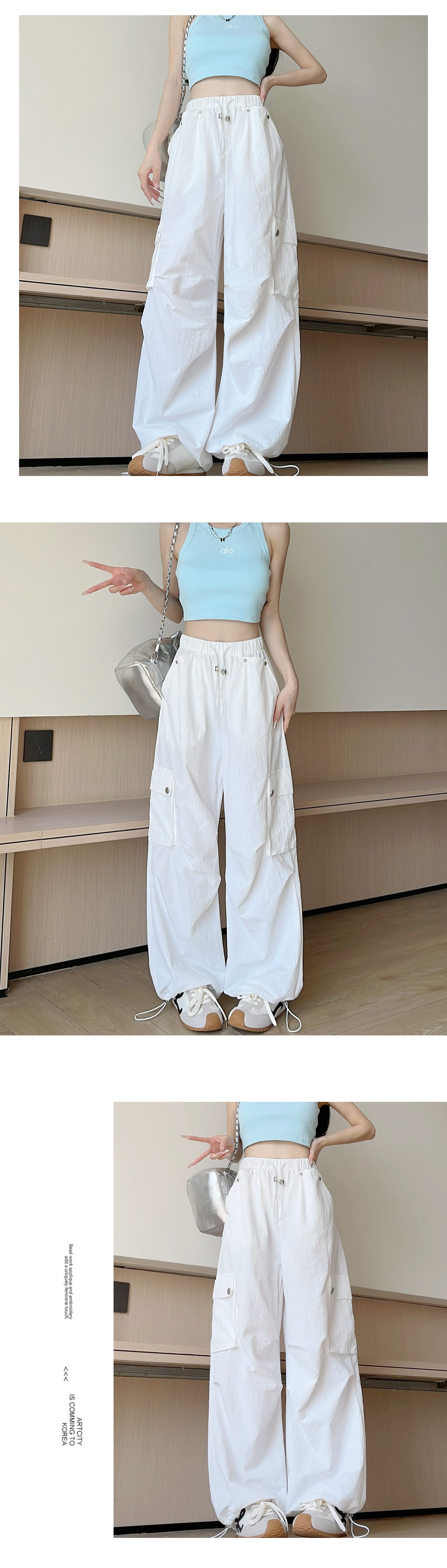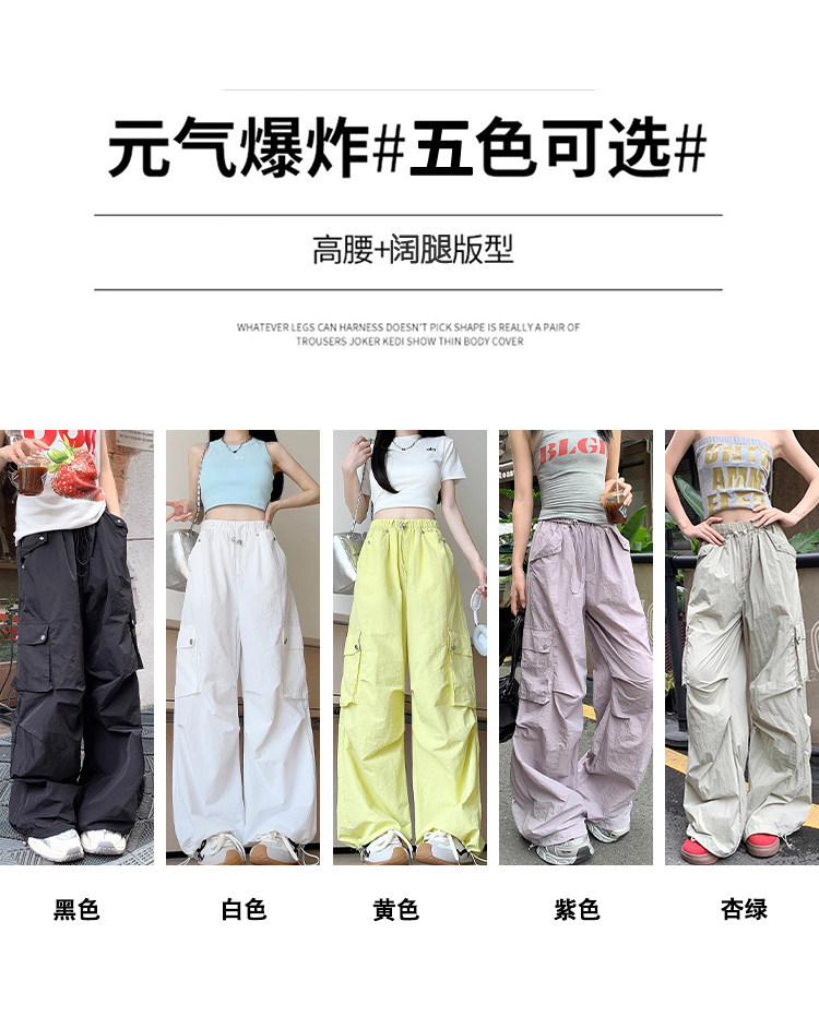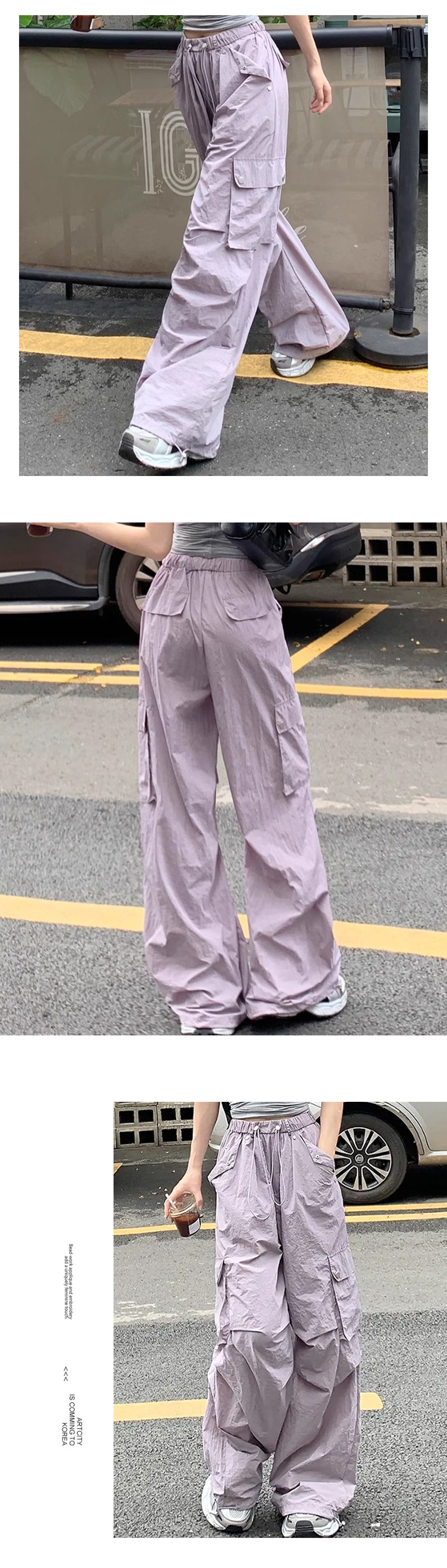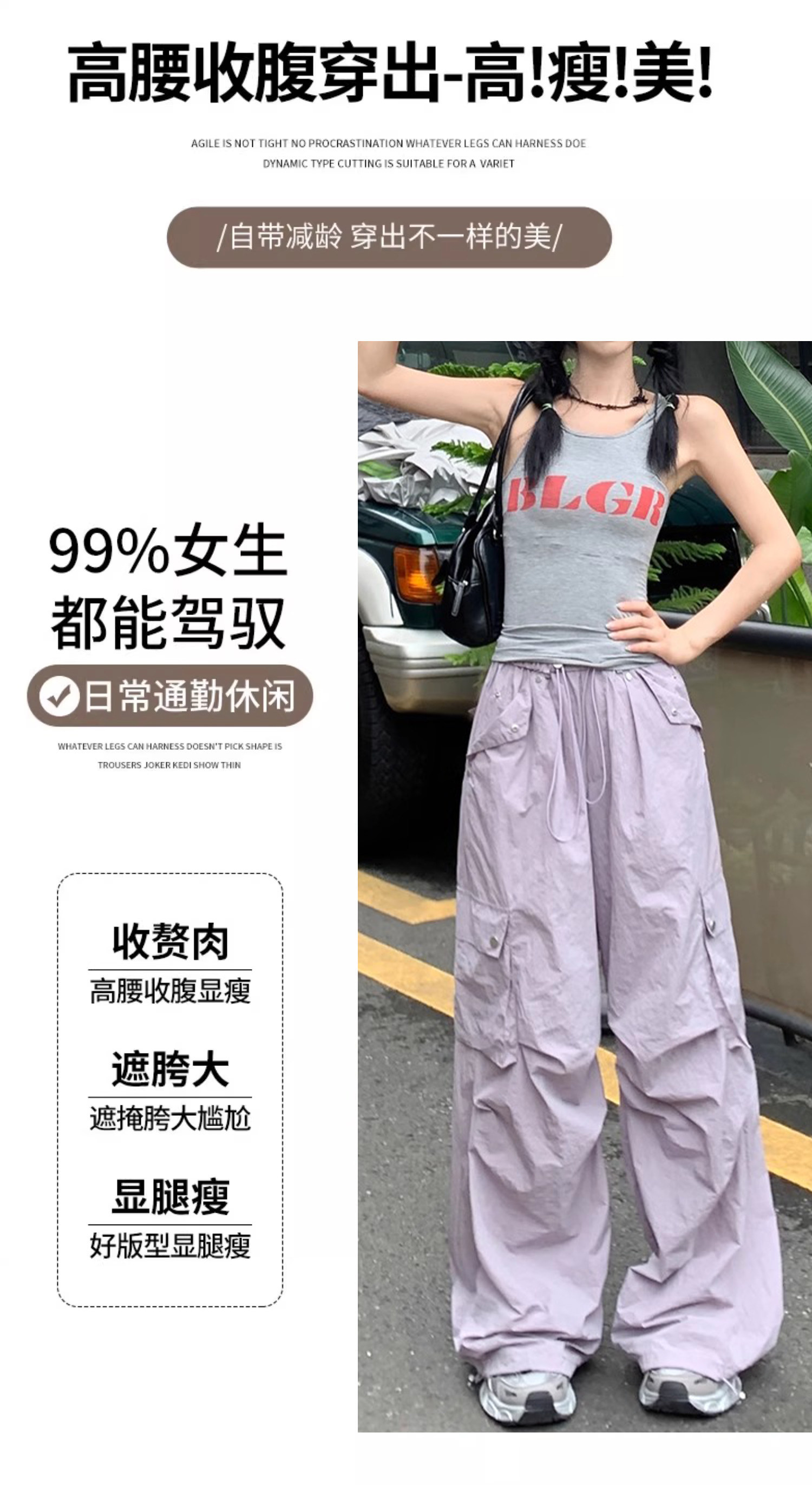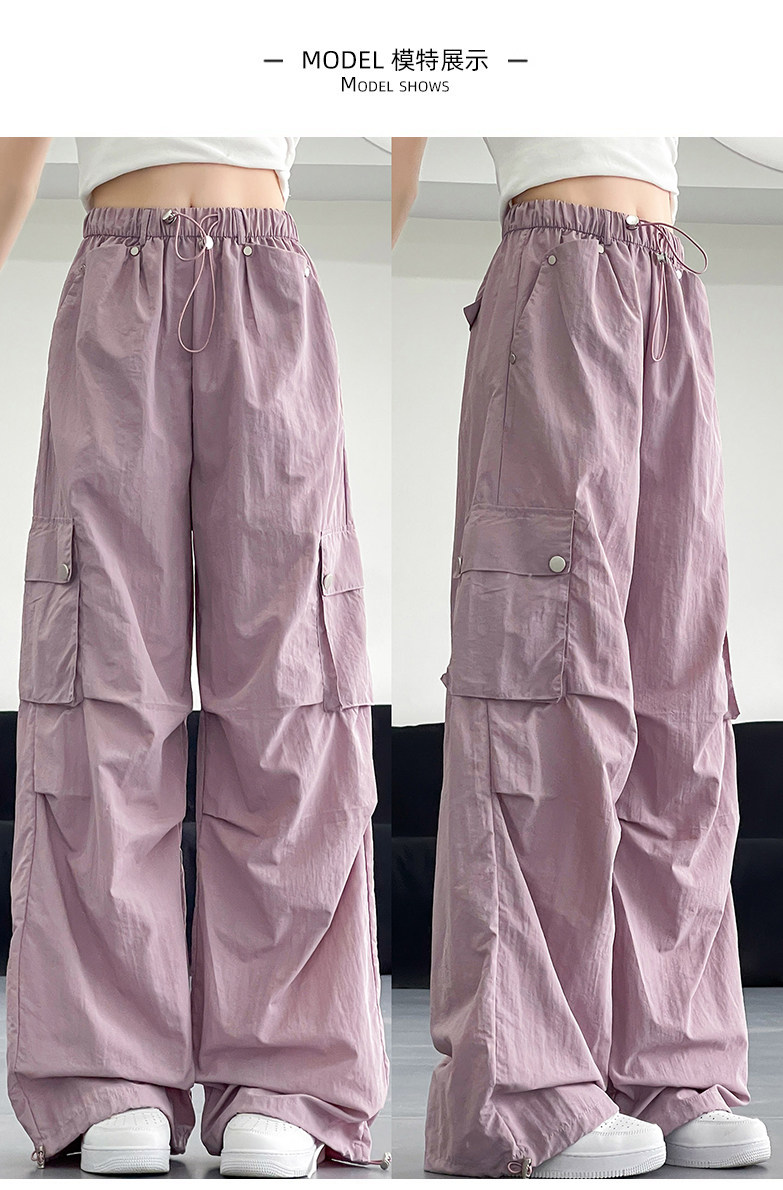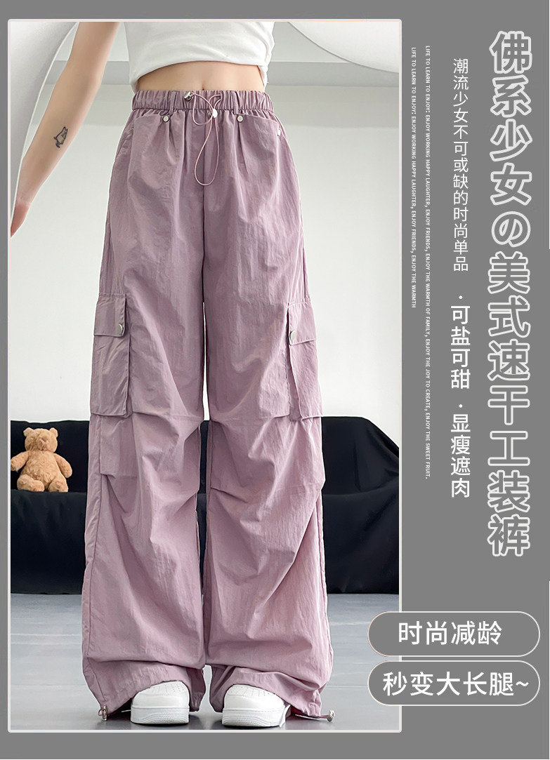 Purple American quick-drying workwear wide-leg pants for women summer thin 2025 new loose slimming large pocket sweatpants