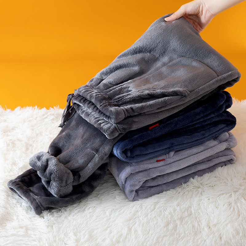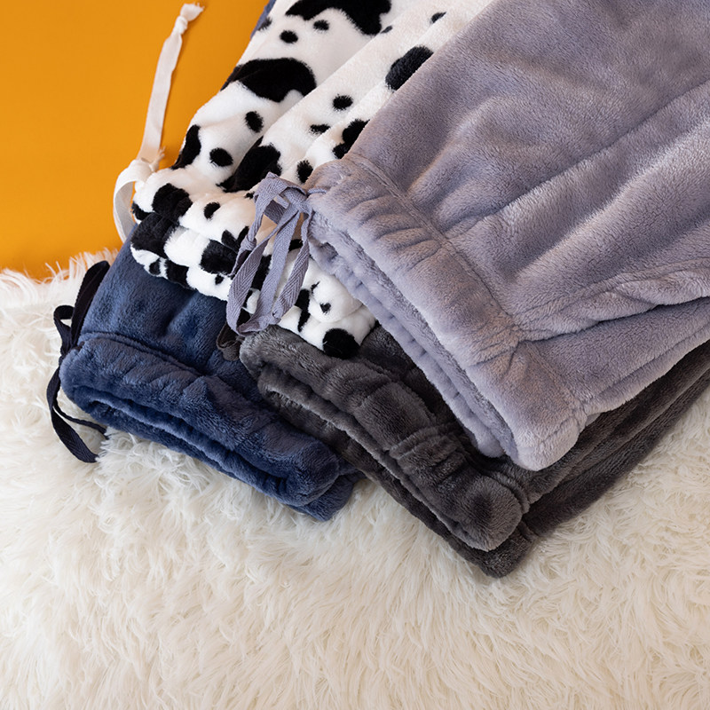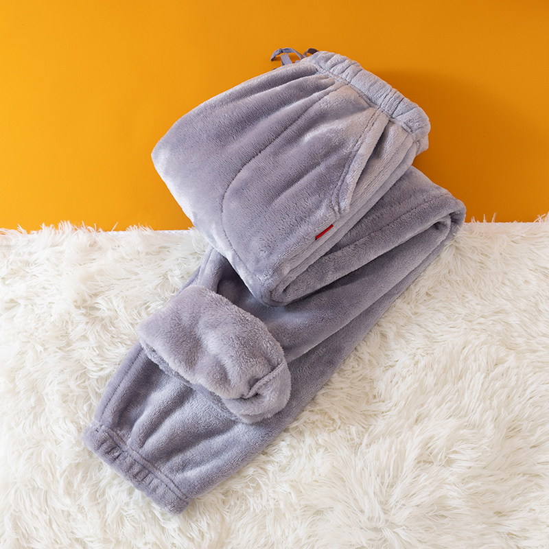 Autumn and Winter Thickeneded Flannel Pajamas for Men, Thickeneded Coral Velvet, Loose Large Size Home Leggings Pants That Can Be Worn Outside