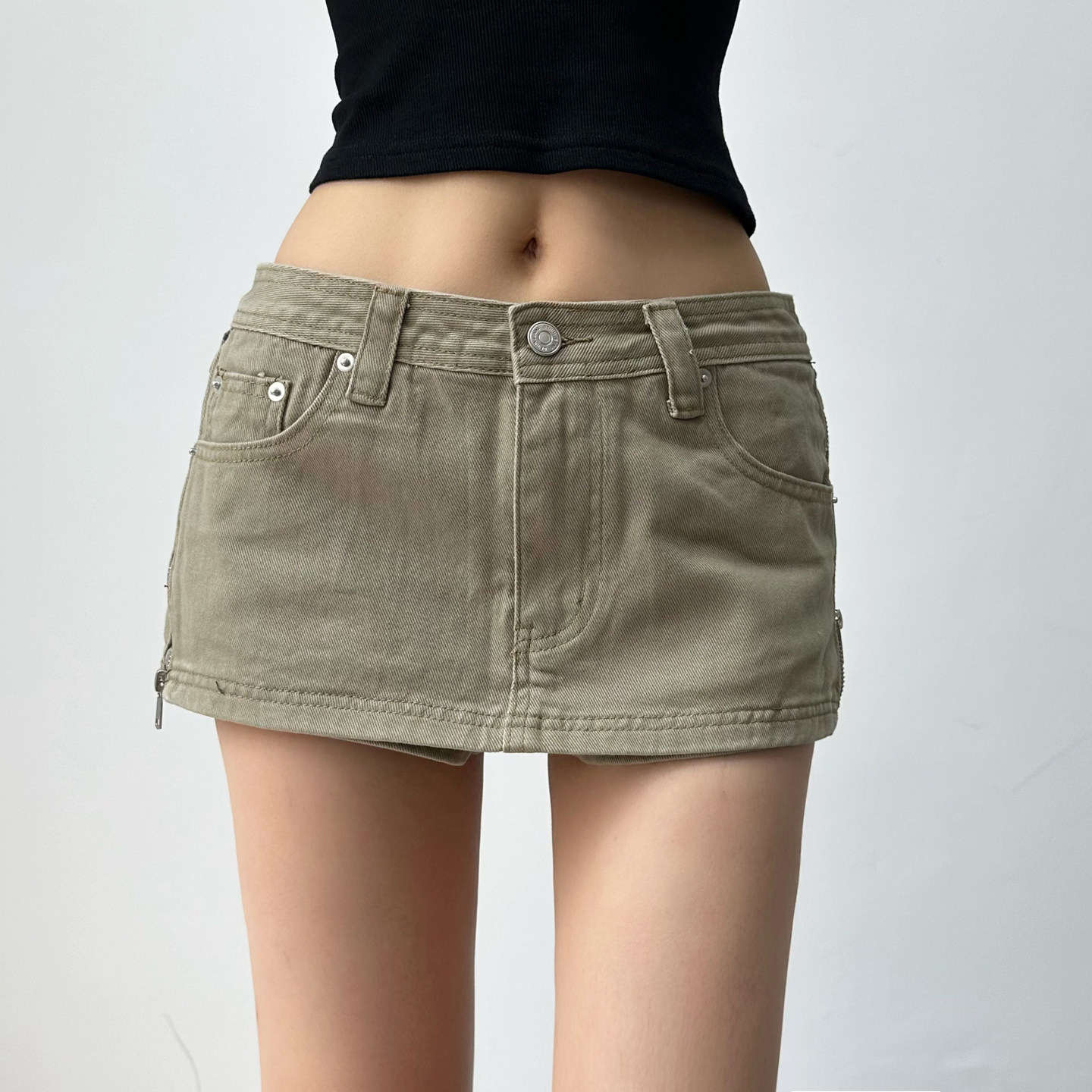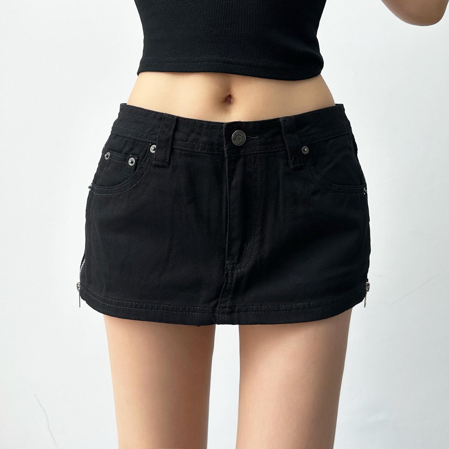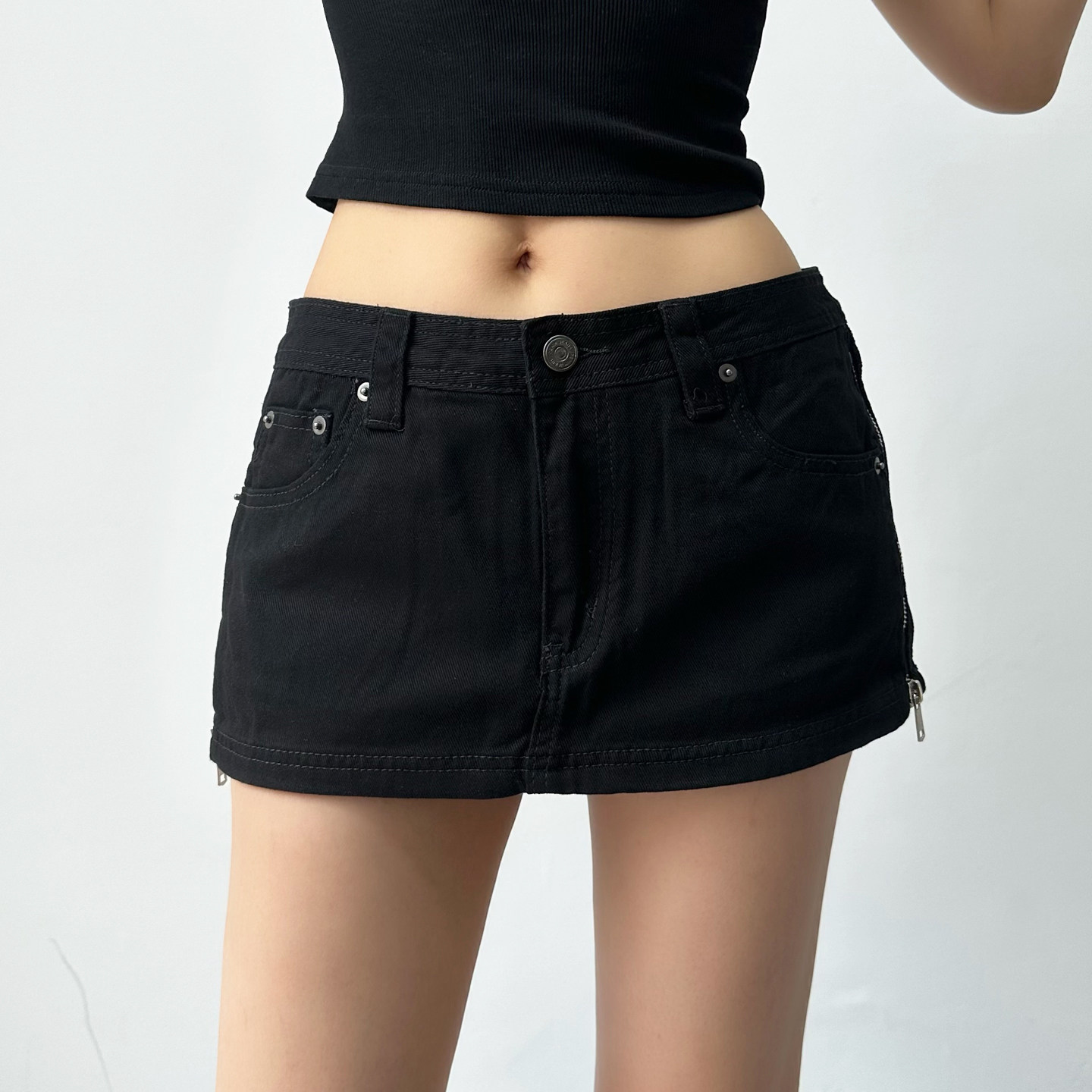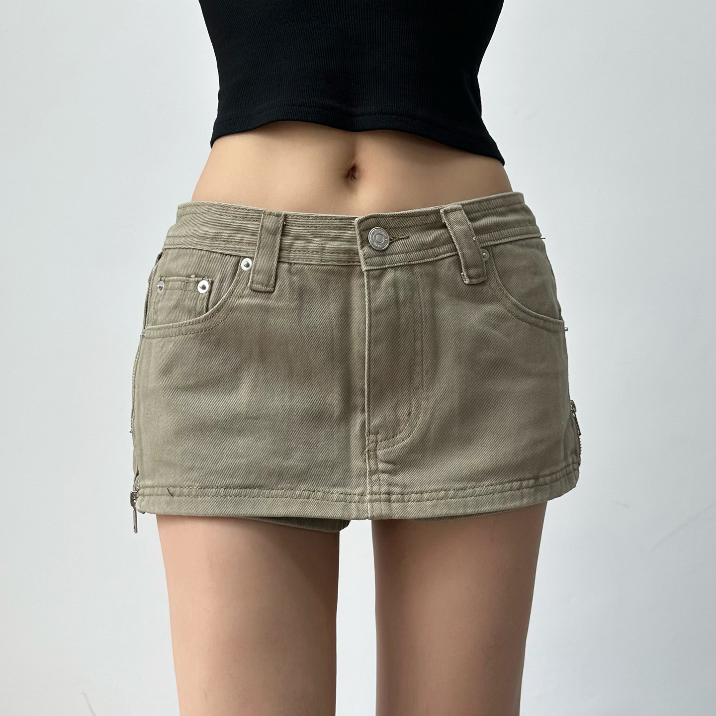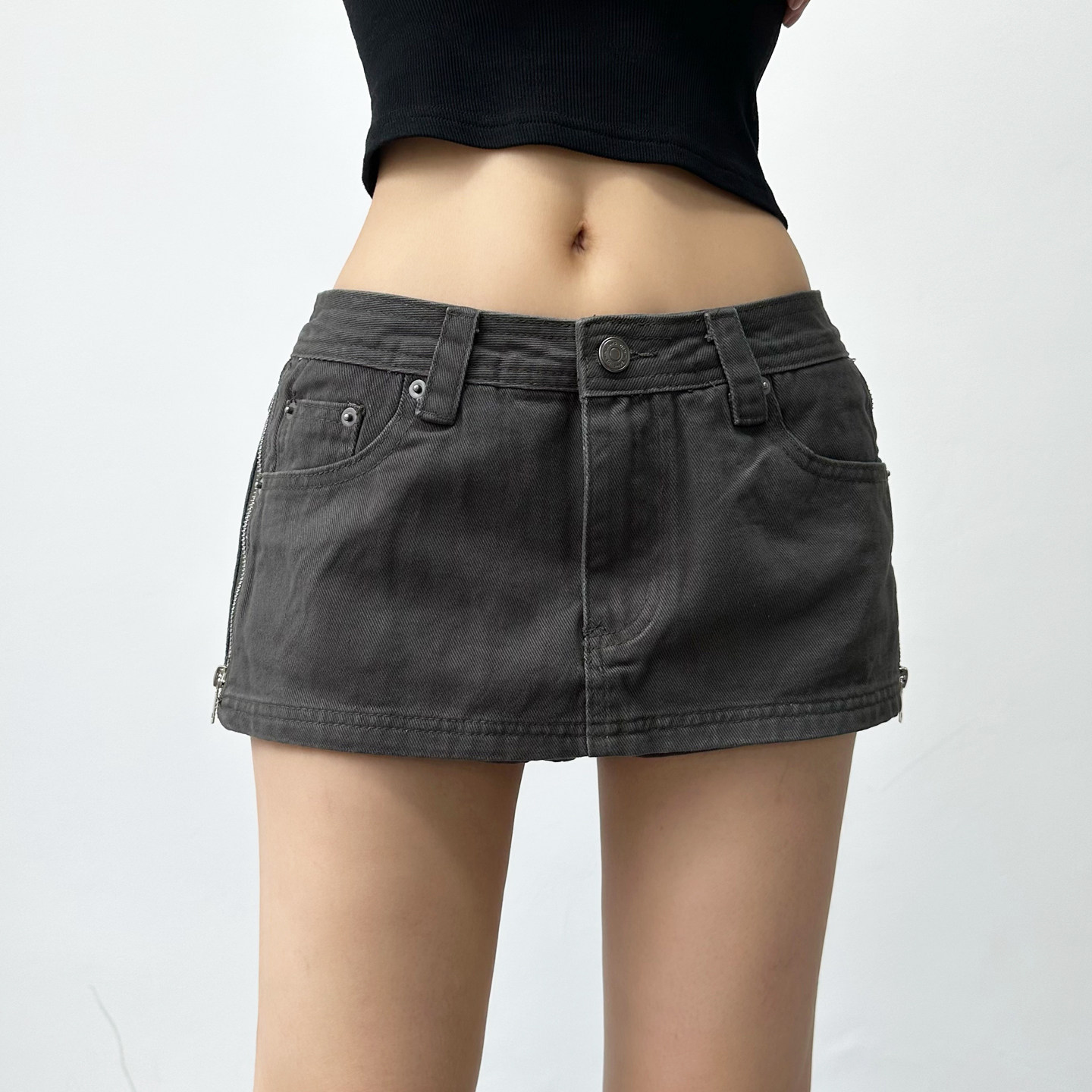 2025 new American retro simple casual low-waist zippered denim short skirt on both sides anti-exposure skirt for women