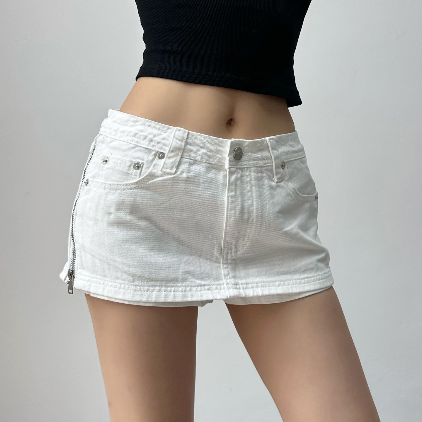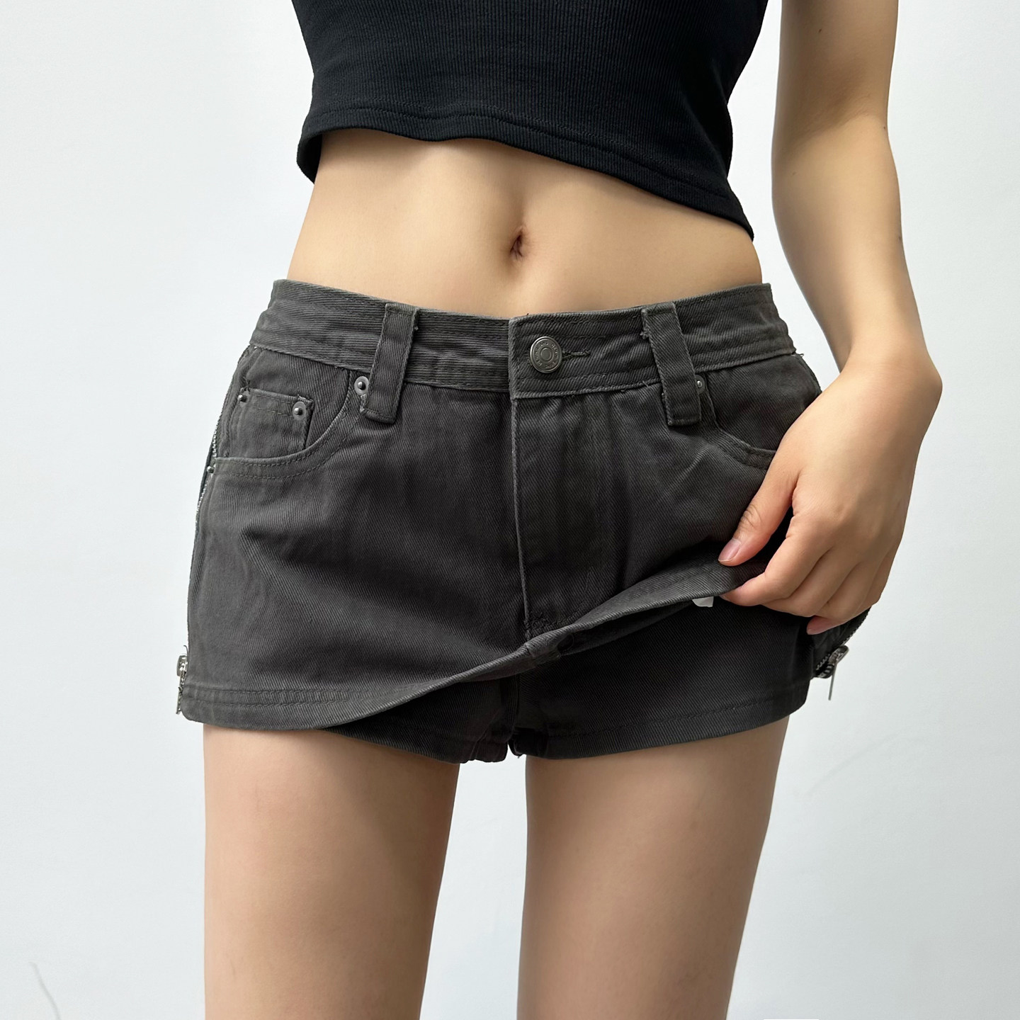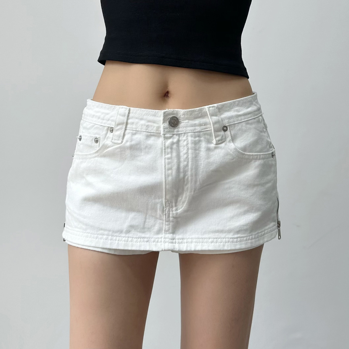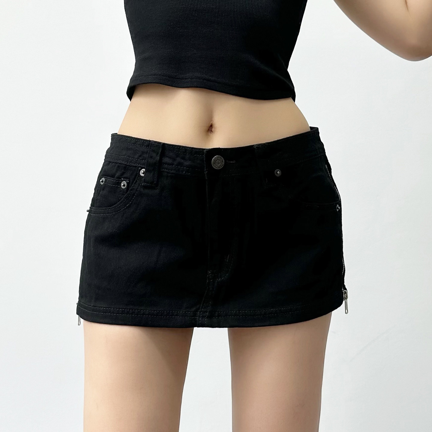 2025 new American retro simple casual low-waist zippered denim short skirt on both sides anti-exposure skirt for women