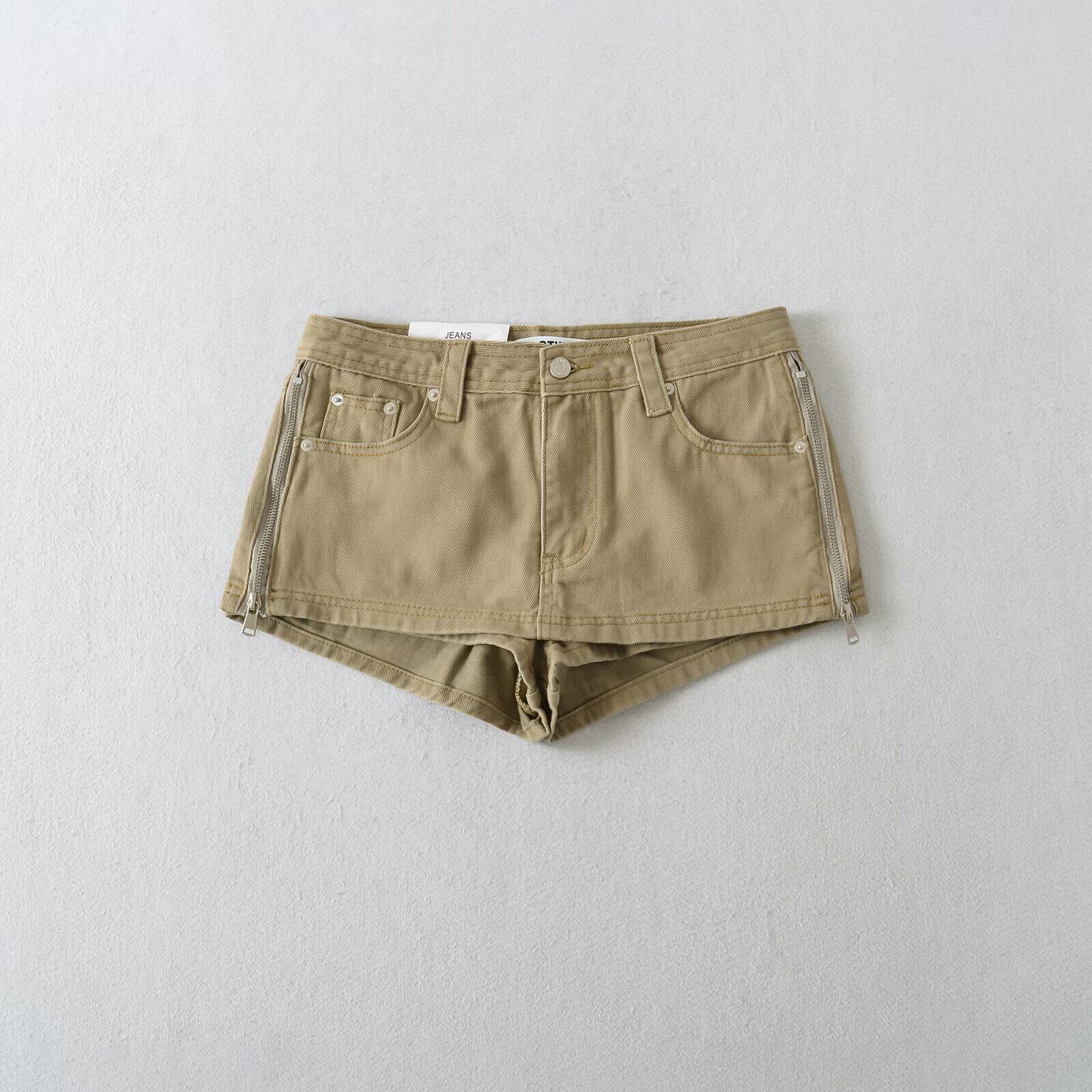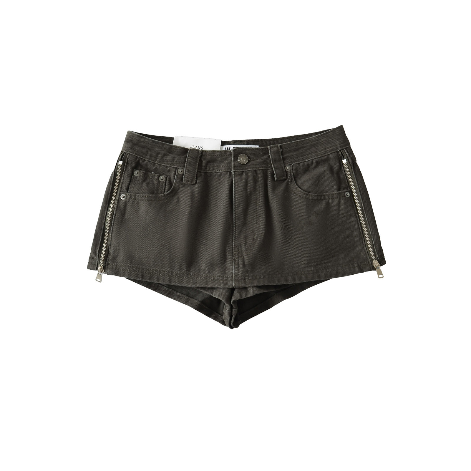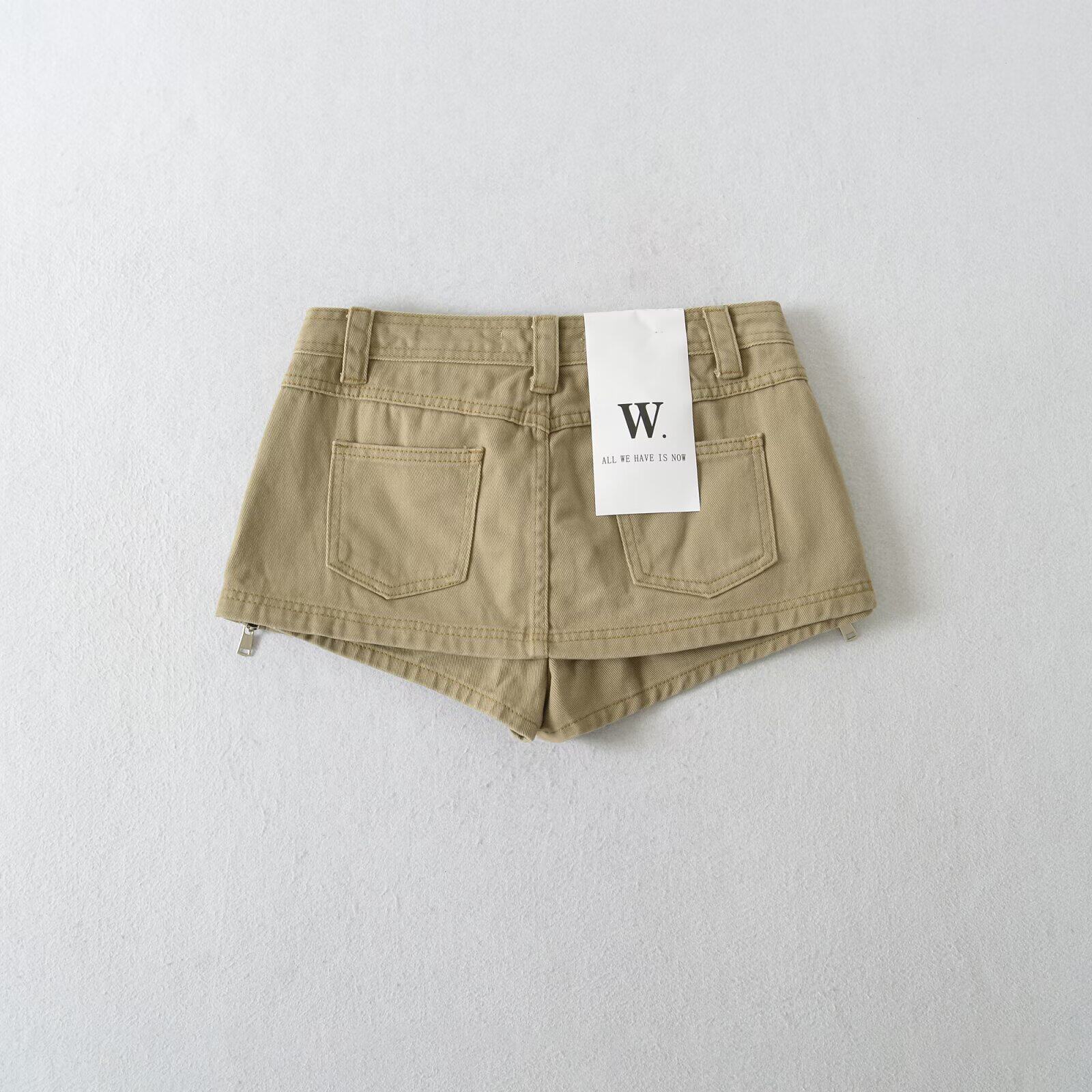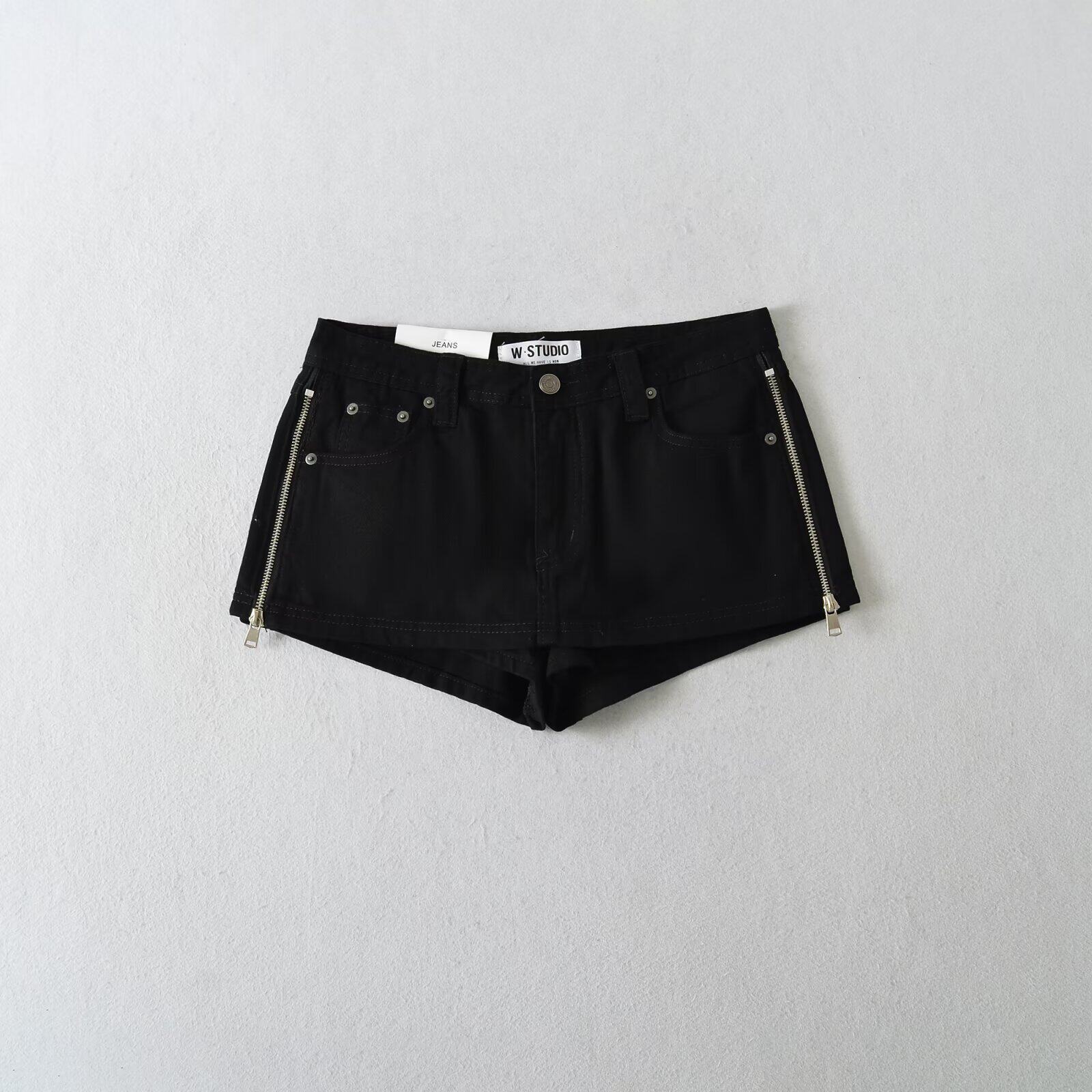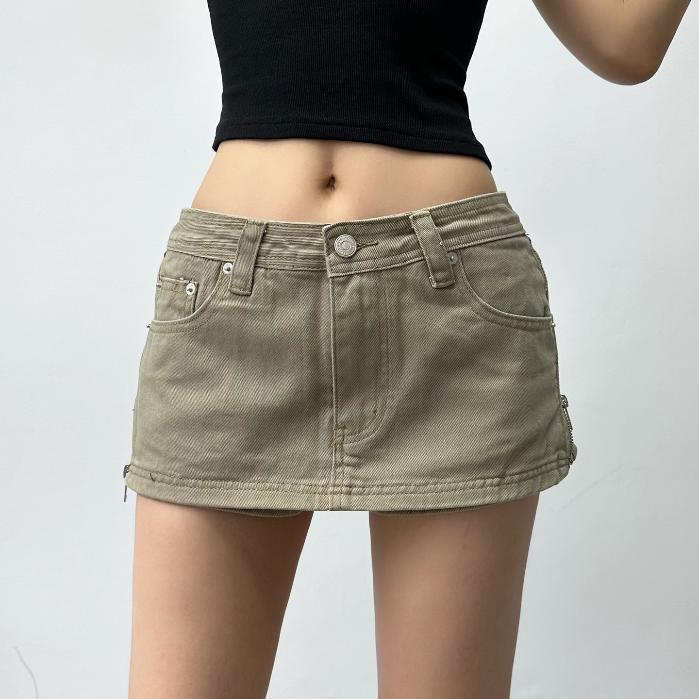 2025 new American retro simple casual low-waist zippered denim short skirt on both sides anti-exposure skirt for women