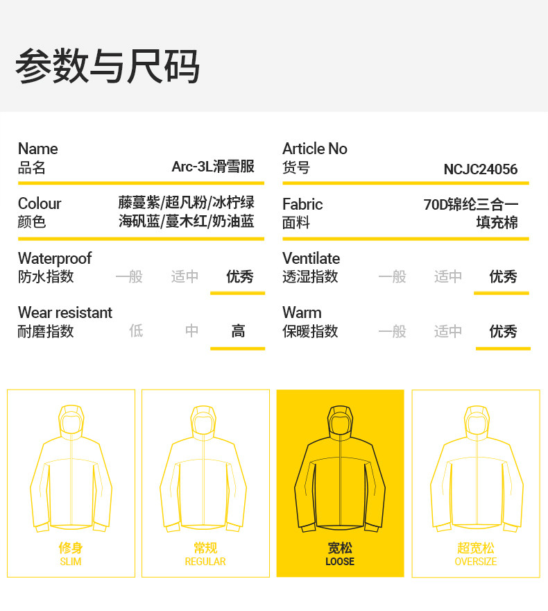 [Skyline]Nanen Ski Suit for Women Recco Ski Gear 3L Laminated Ski Suit for Men and Women for Single and Double Board Skiing