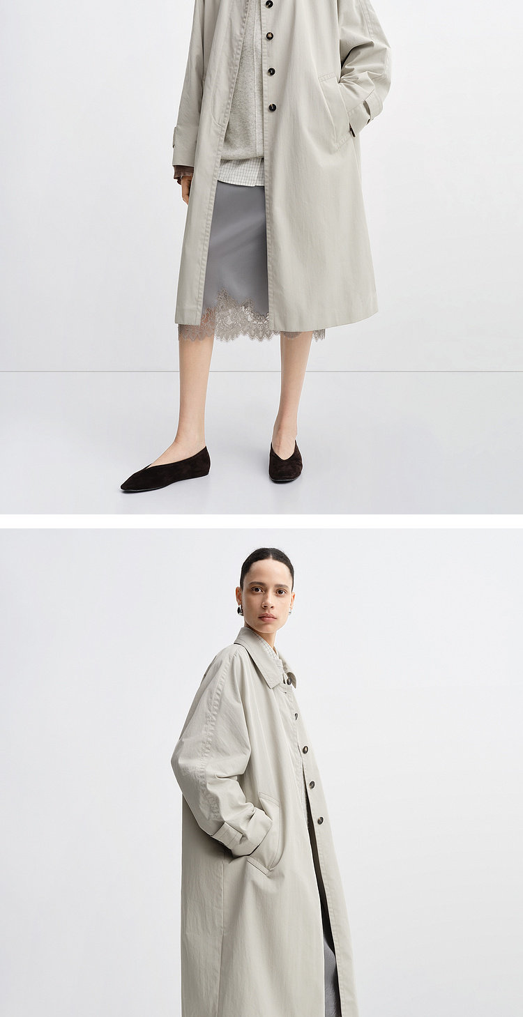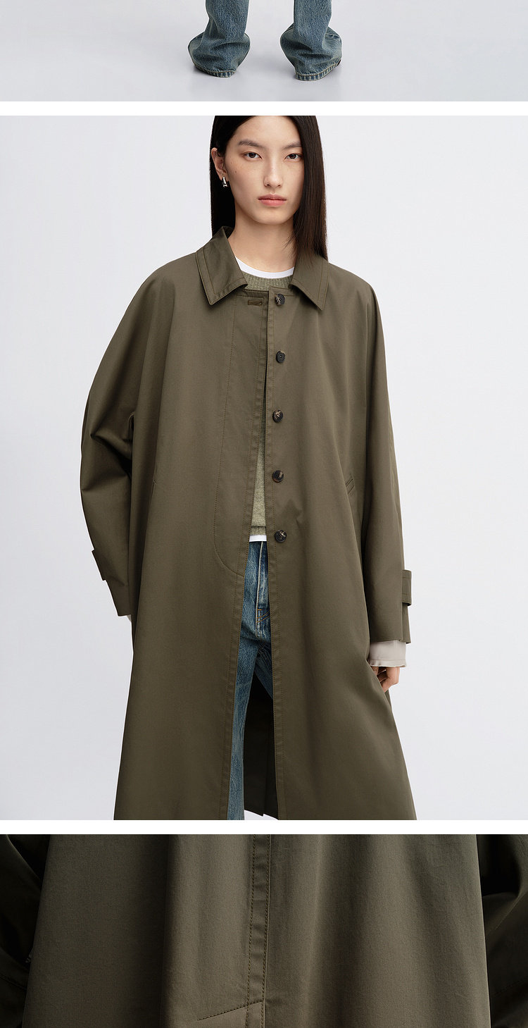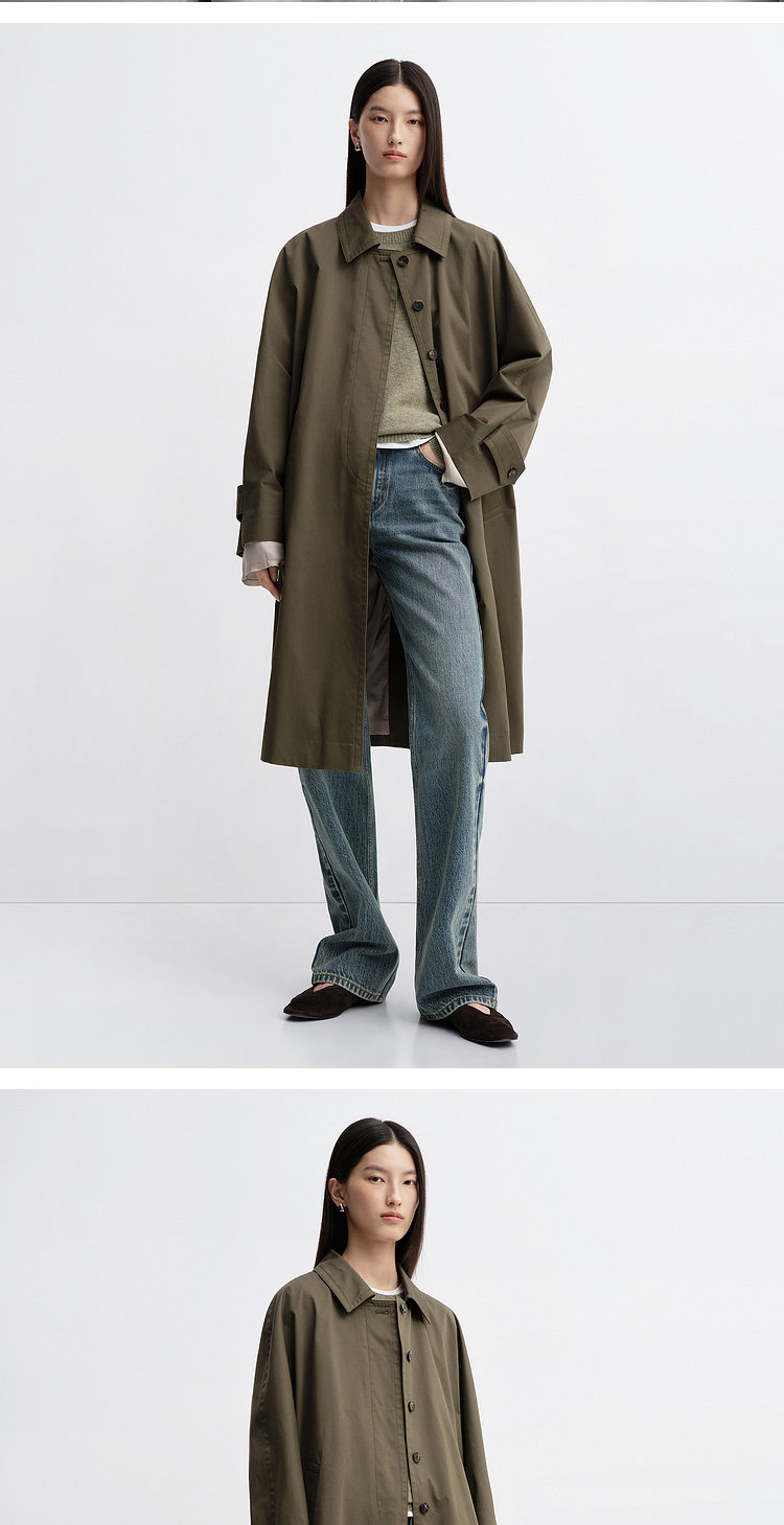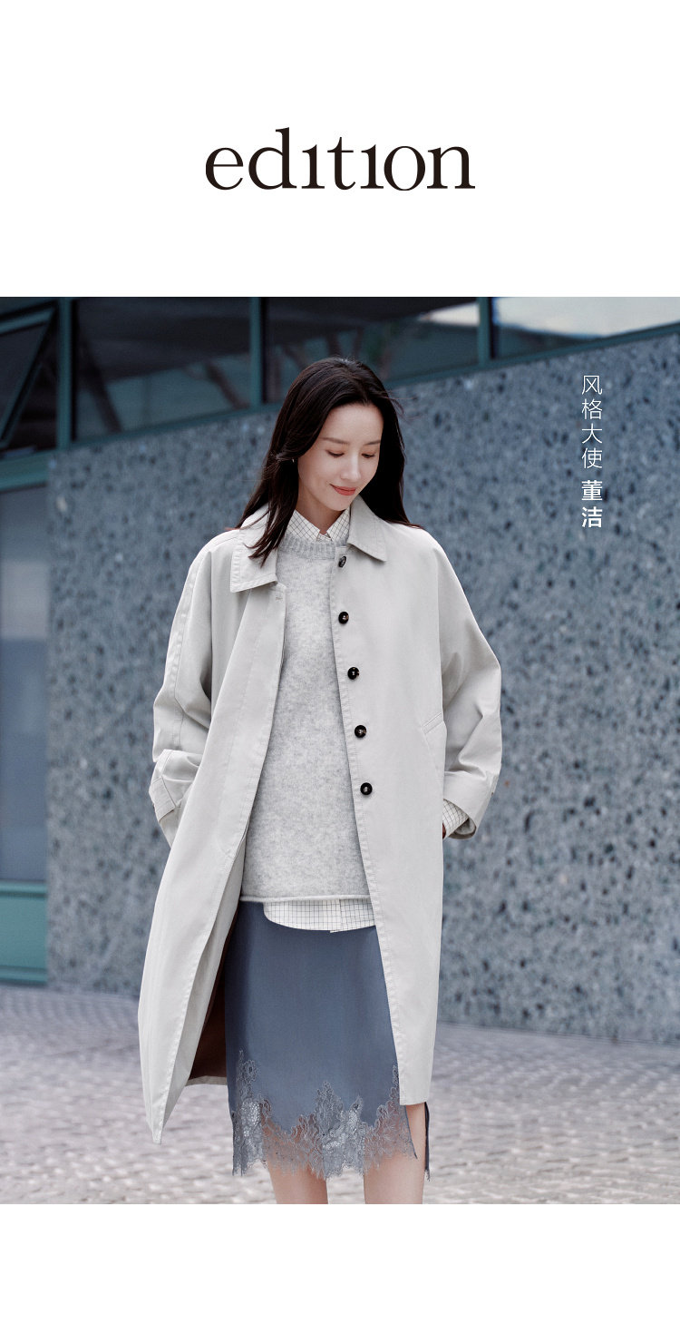 [Same Style as Dong Jie] Edition2025 New Autumn Long Trench Coat with Shirt Collar Ebe3Trc008