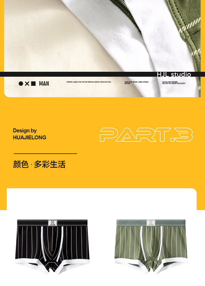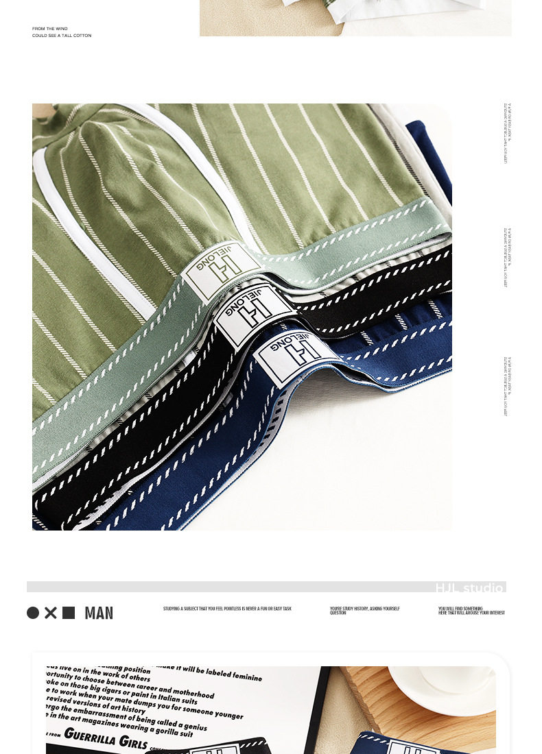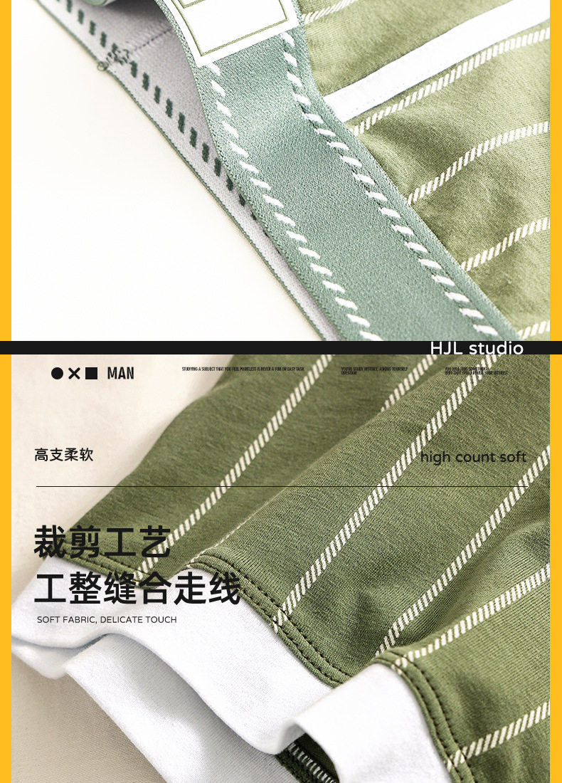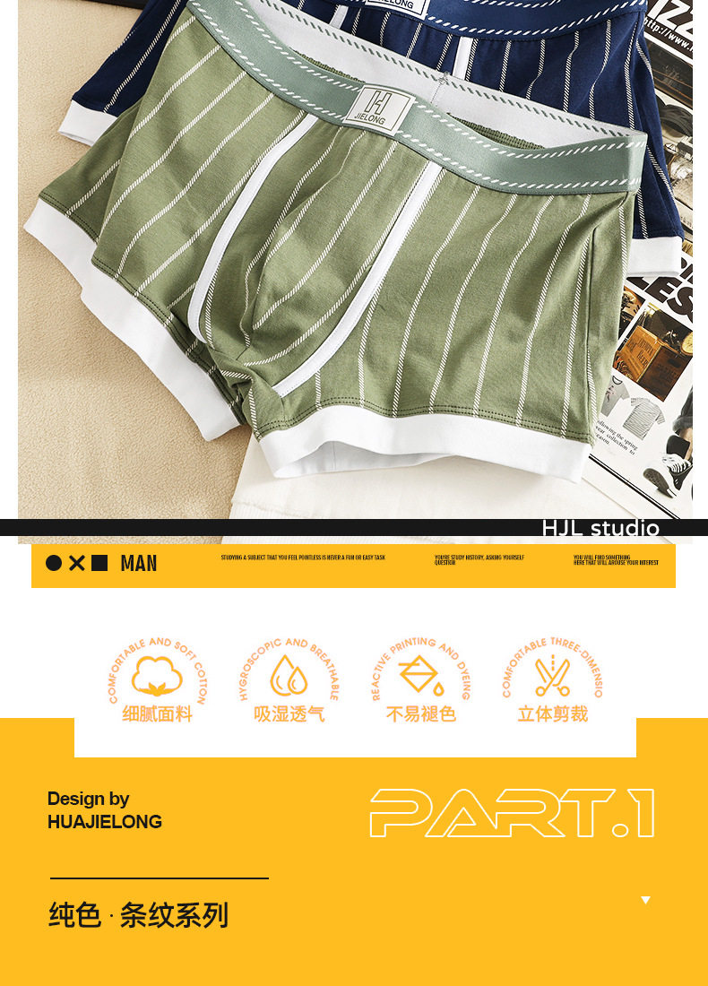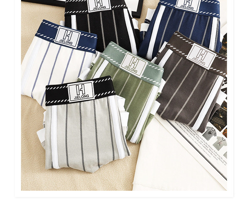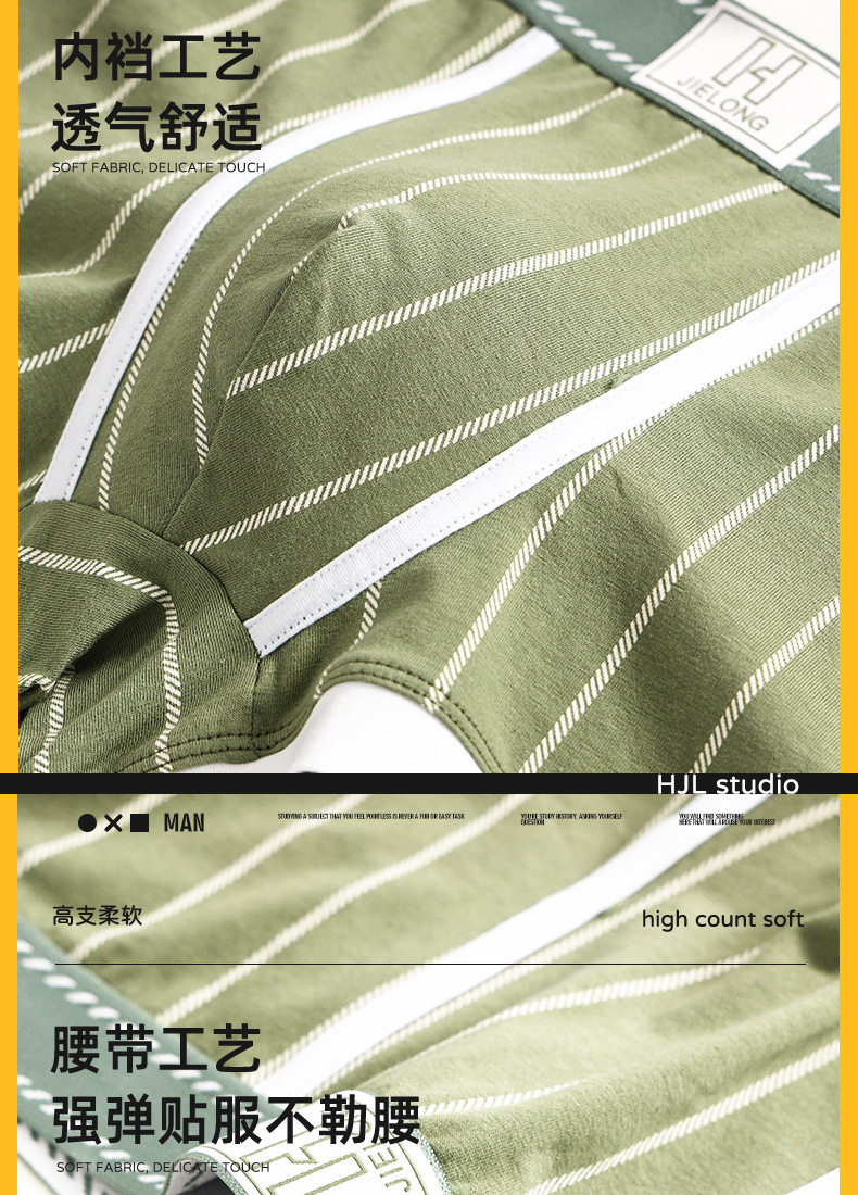 潮牌男士内裤纯棉质透气四角裤青年条纹潮流个性短裤男生平角裤头