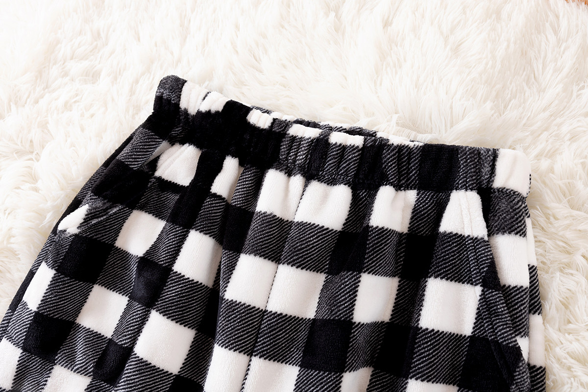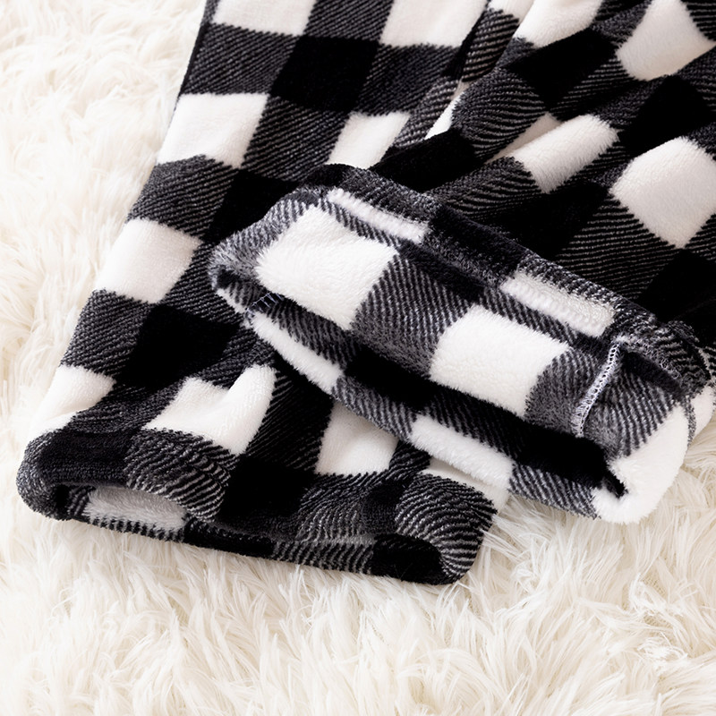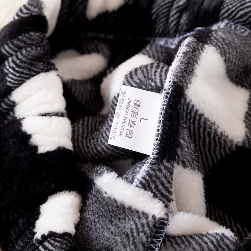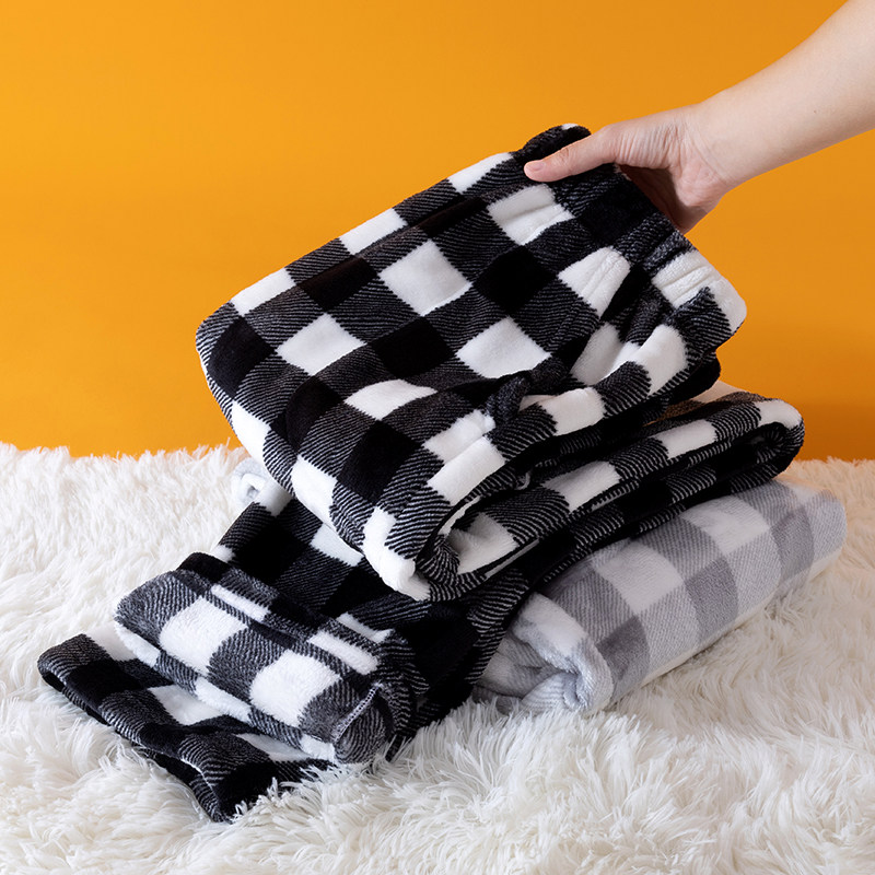 Men's Flannel Pajama Pants, Loose Fit, Thickened for Winter, Warm Coral Fleece, Simple Plaid Straight-Leg Home Trousers
