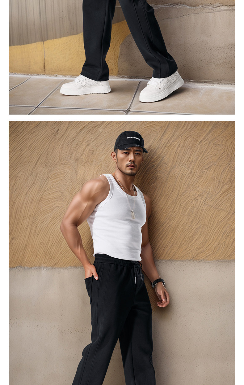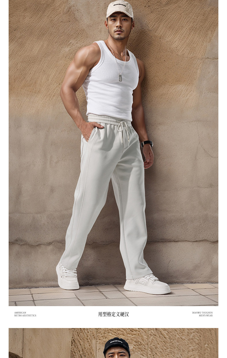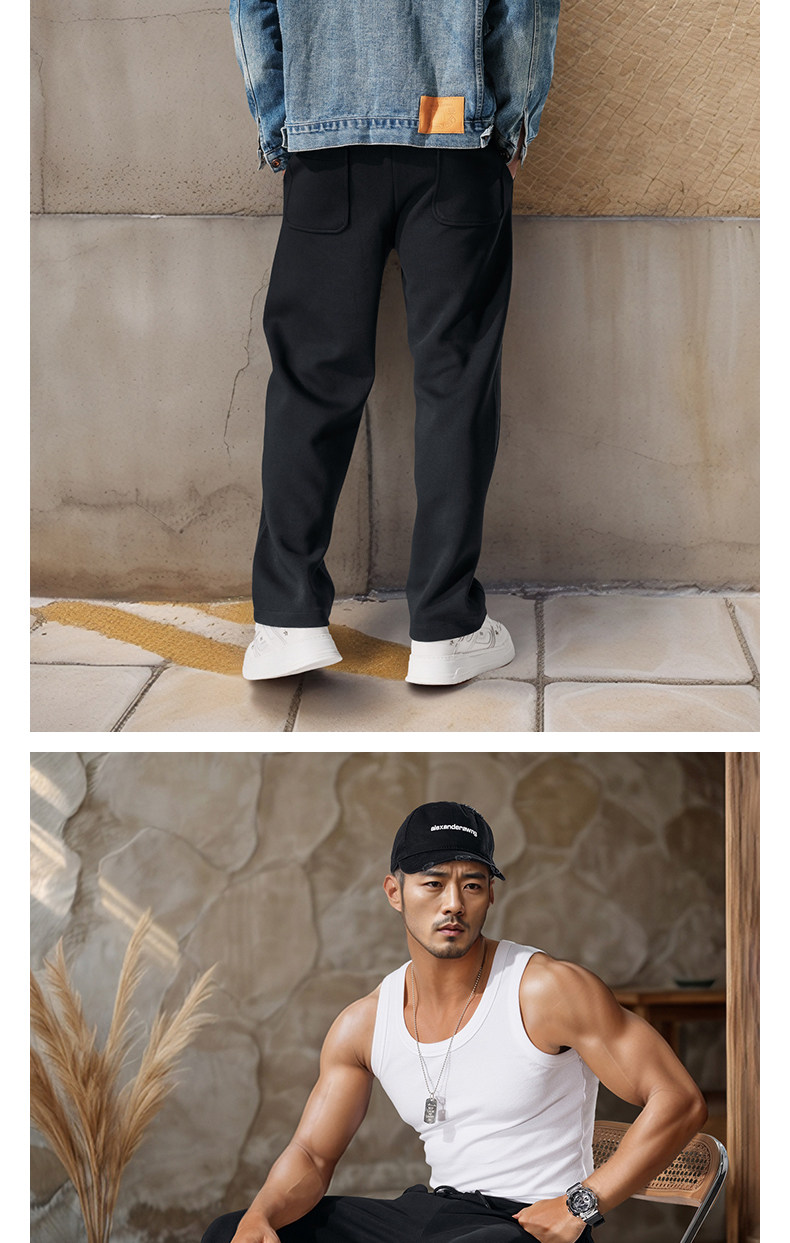 Men's Wide-Leg Straight Sweatpants Spring and Autumn Silhouette Scimitar Pants Sports Pants Drawstring Loose Casual Pants Autumn and Winter Long Pants
