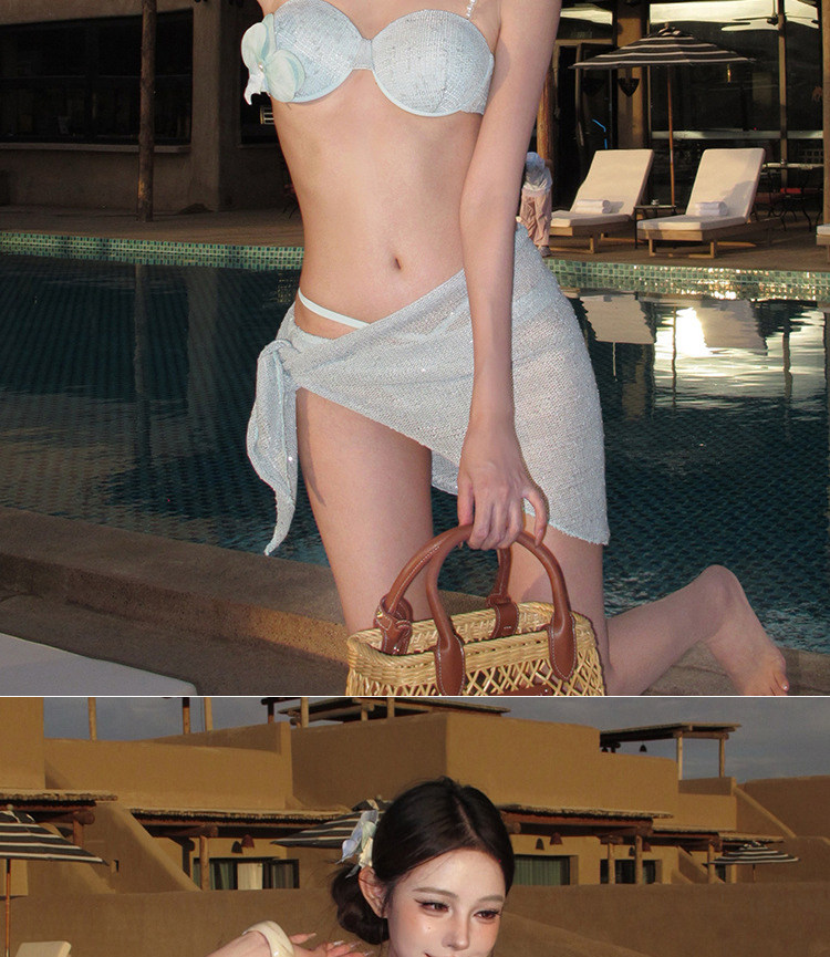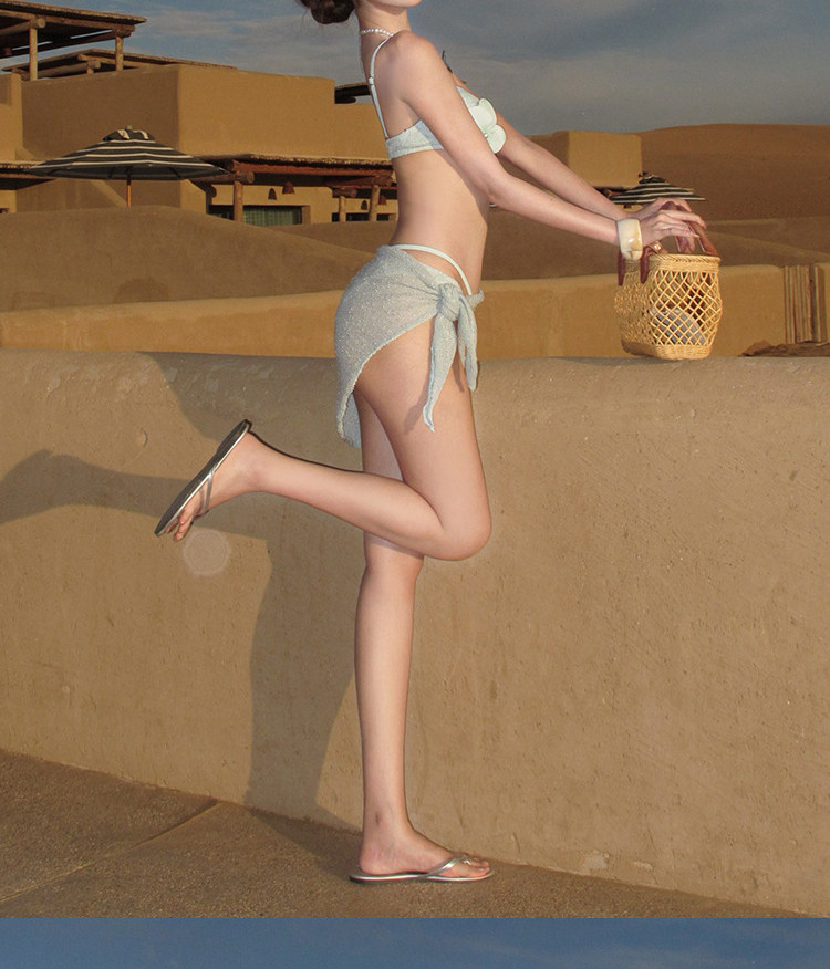 Sexy Suspender Split Three-Piece Swimsuit for Women, Pure Lust Style Hot Girl Resort Hot Spring Backless Mesh Skirt Bikini