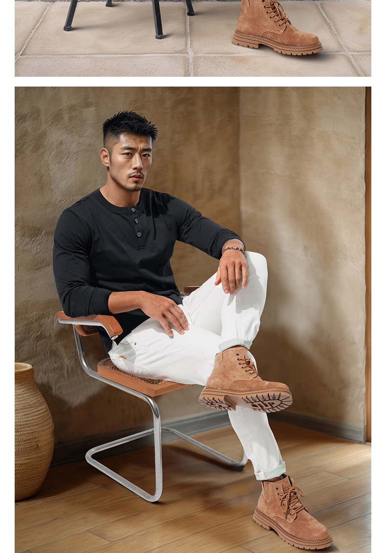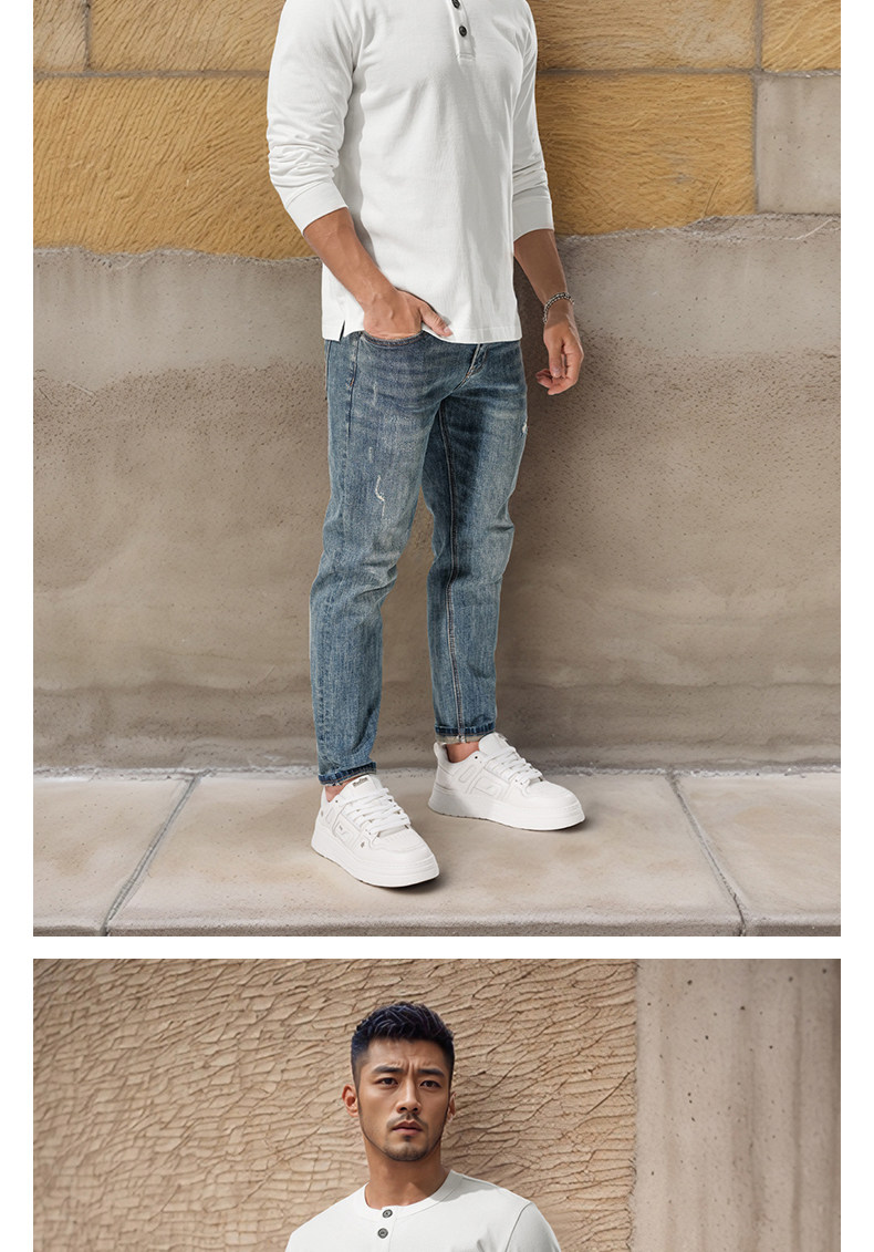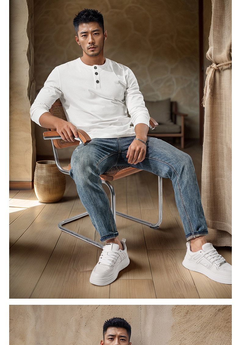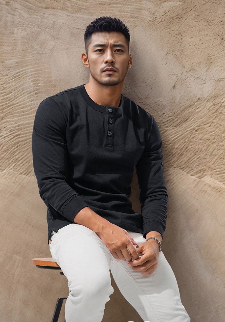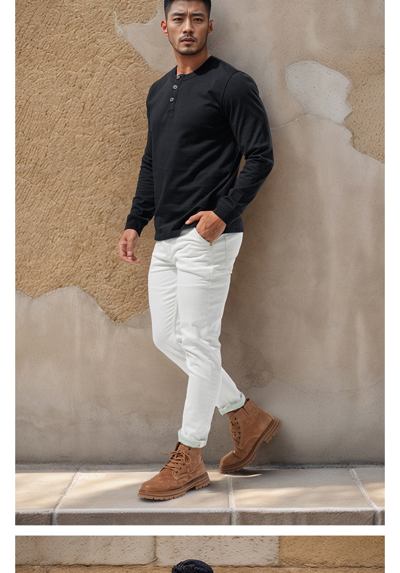 American Retro Henry Shirt for Men, Long-Sleeved, Loose-Fitting, 280g Heavyweight Thick Pure Cotton Casual T-Shirt, Autumn Base Layer Shirt