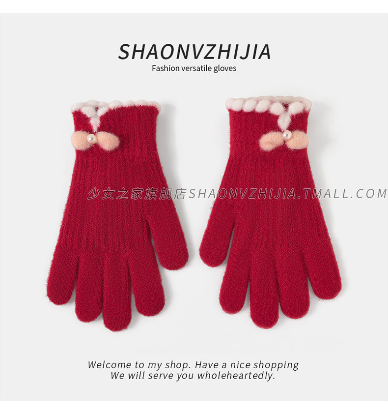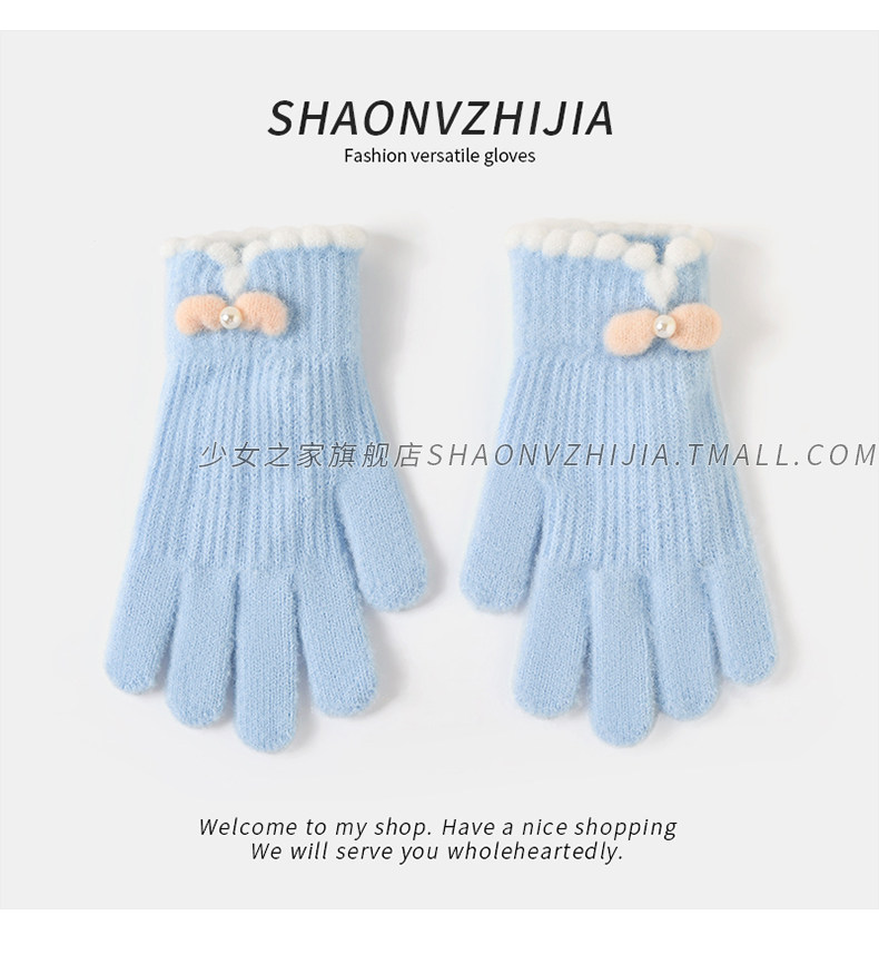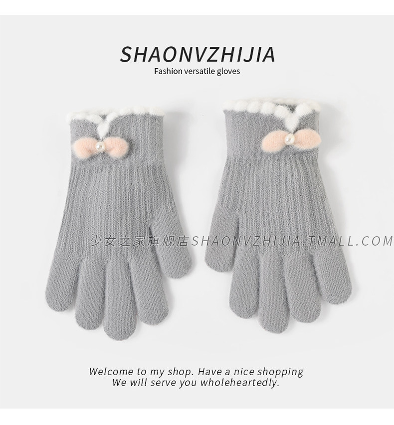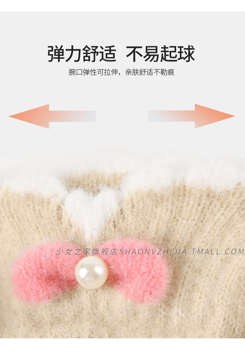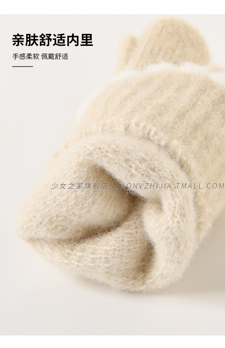 Cycling Knitted Warm Wool Gloves for Women, Winter Cute Student Five-Finger Thickened Cold-Proof Fingerless Versatile Touchscreen-Compatible