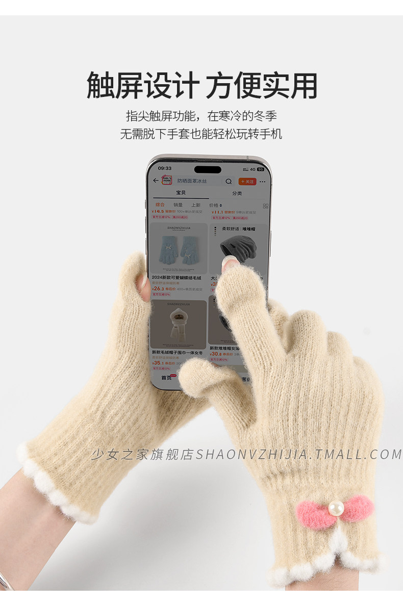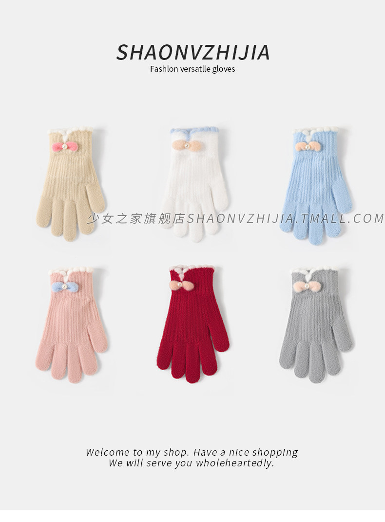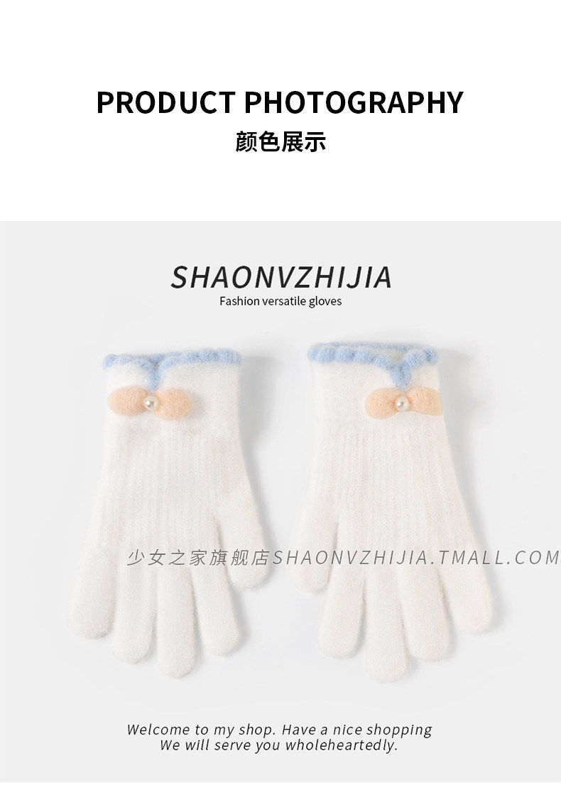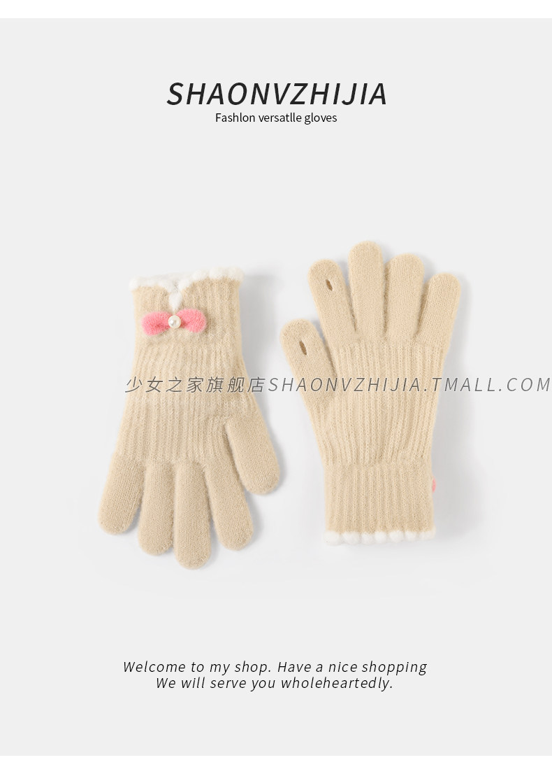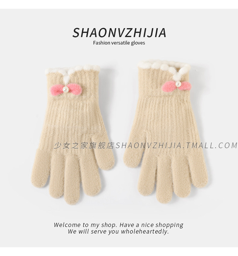 Cycling Knitted Warm Wool Gloves for Women, Winter Cute Student Five-Finger Thickened Cold-Proof Fingerless Versatile Touchscreen-Compatible