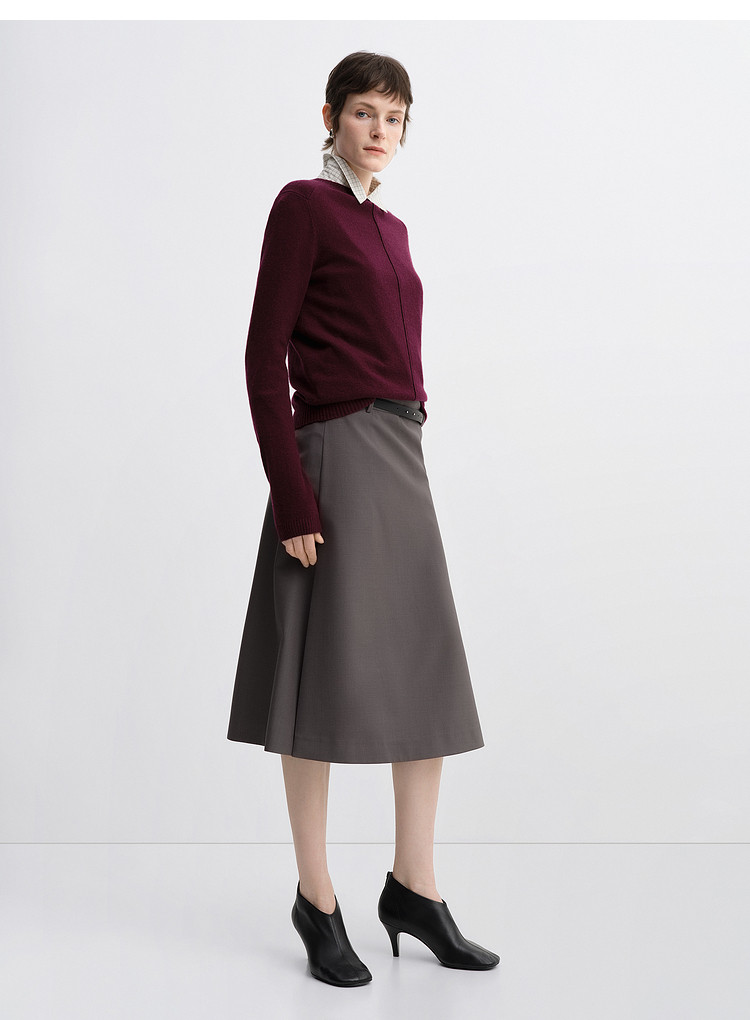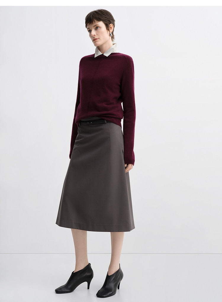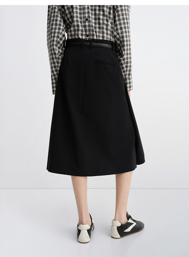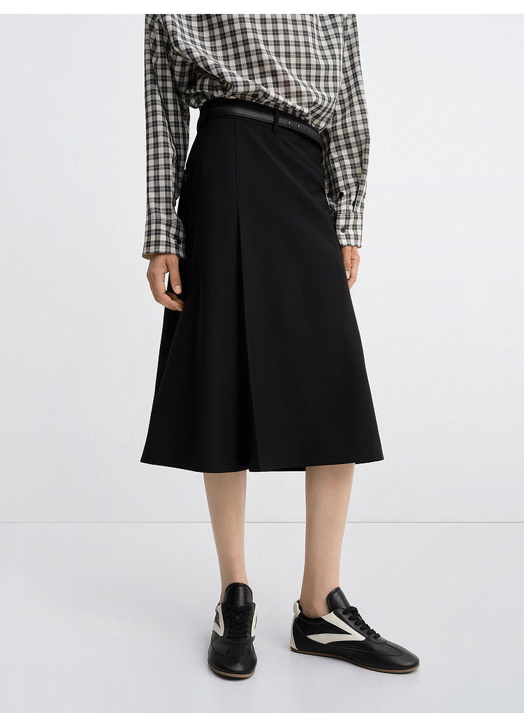 Edition Skirt for Women 2025 Autum New Style Pleated A-Line Silk Wool Skirt with Belt Ebe3Skt041
