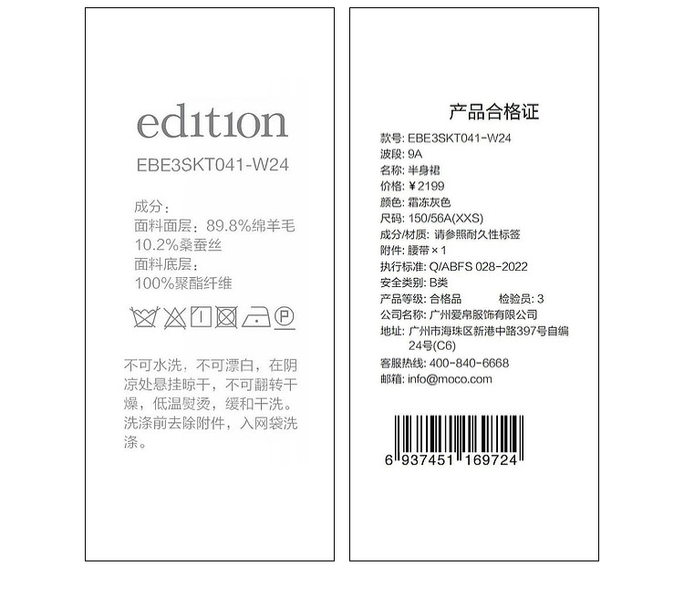 Material Composition Sheep Wool 89.8% Mulberry Silk 10.2%