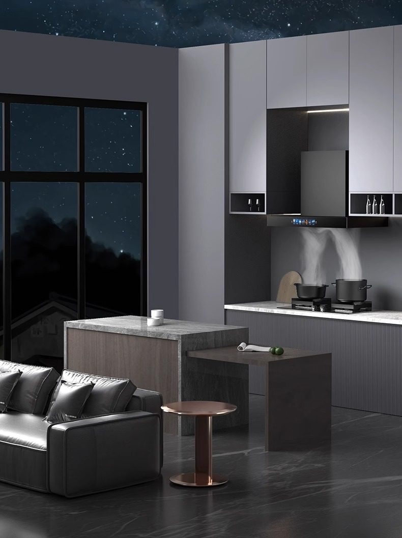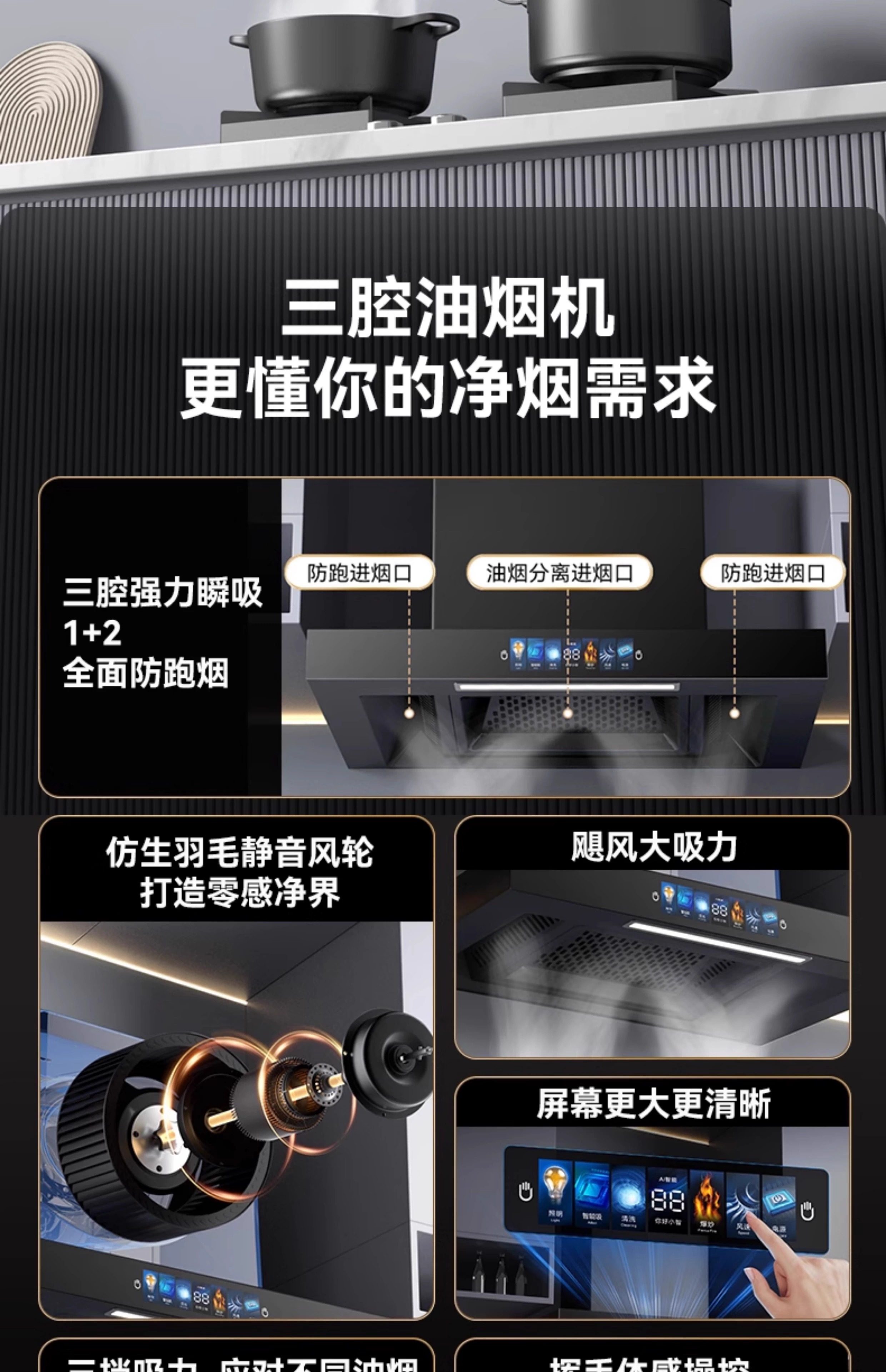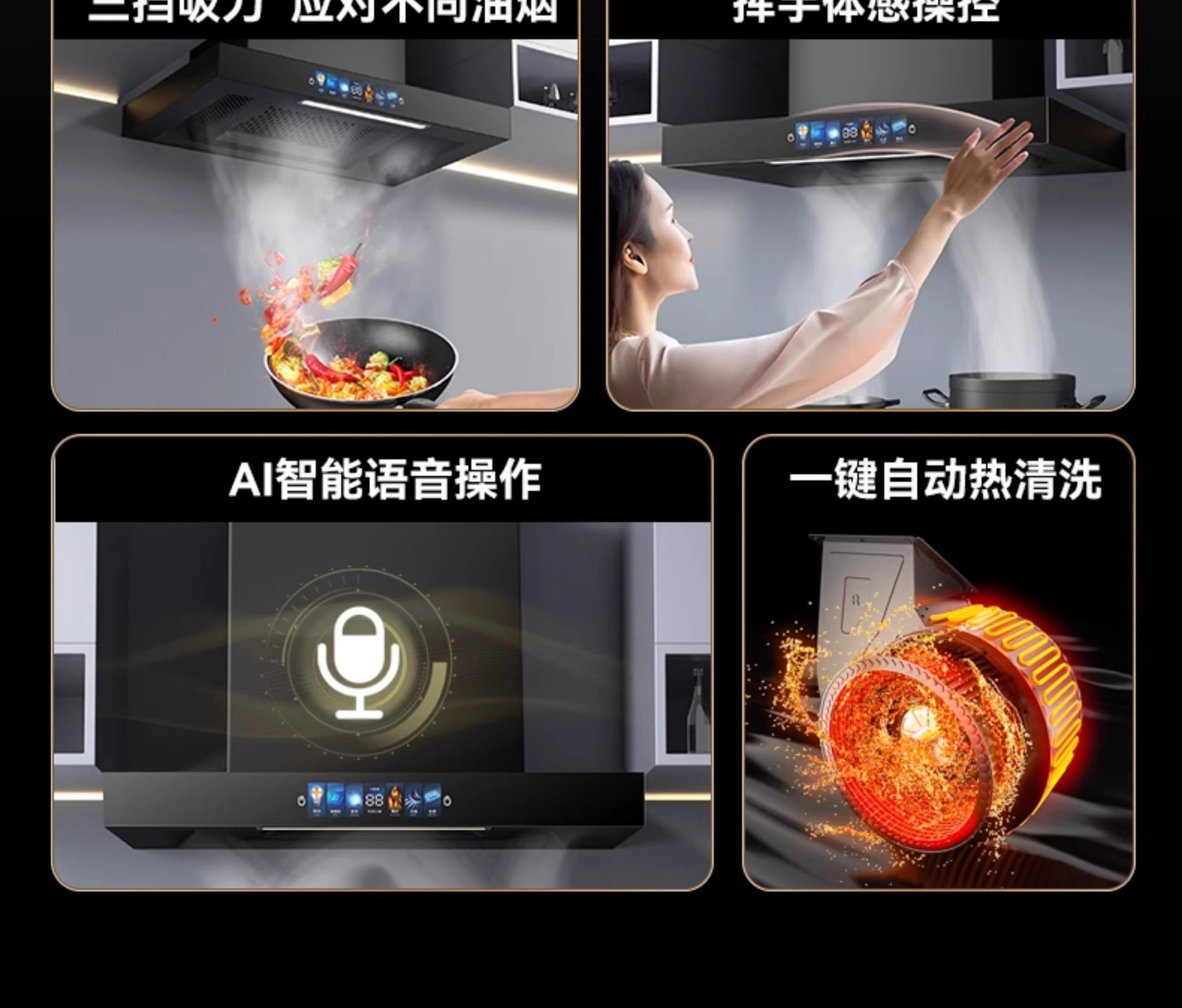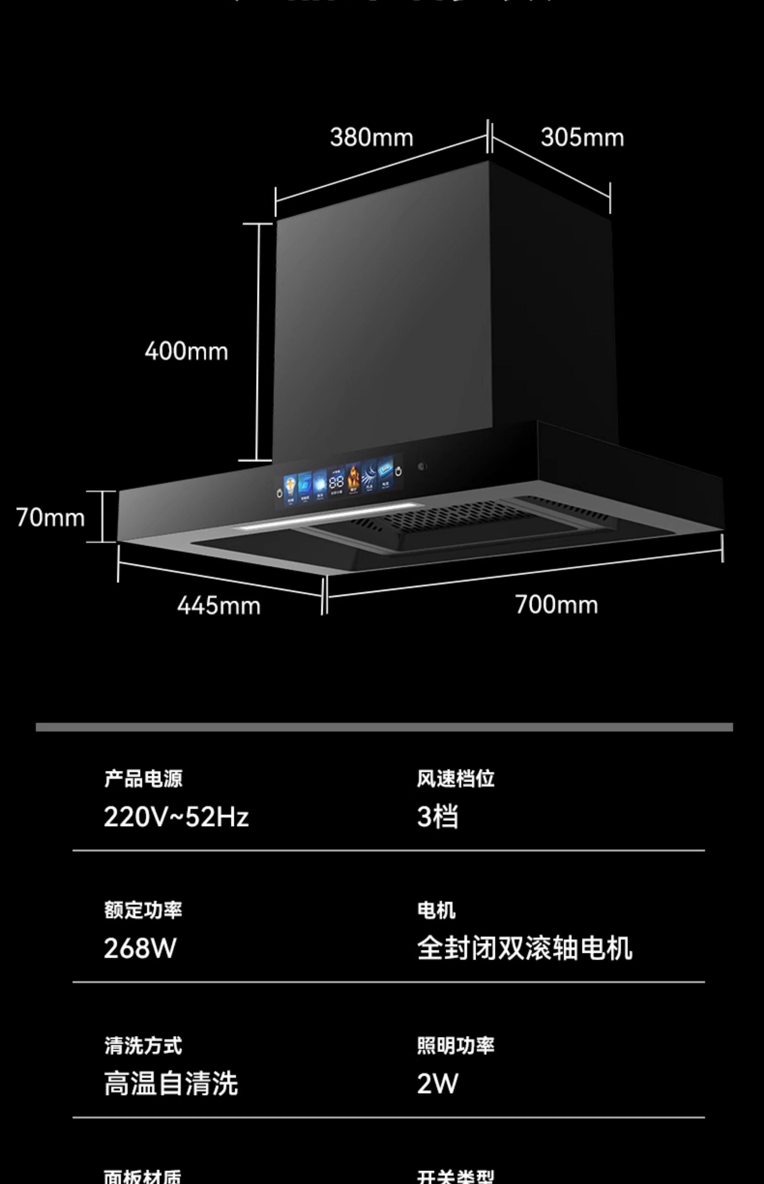 Xinfei kleine Dunstabzugshaube, kleine Wohnungsküche, große Saugleistung, 50/60/70 cm, automatische Reinigungs-Dunstabzugshaube