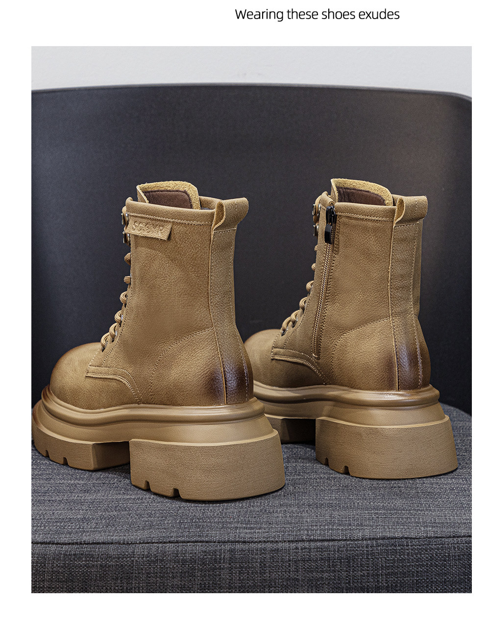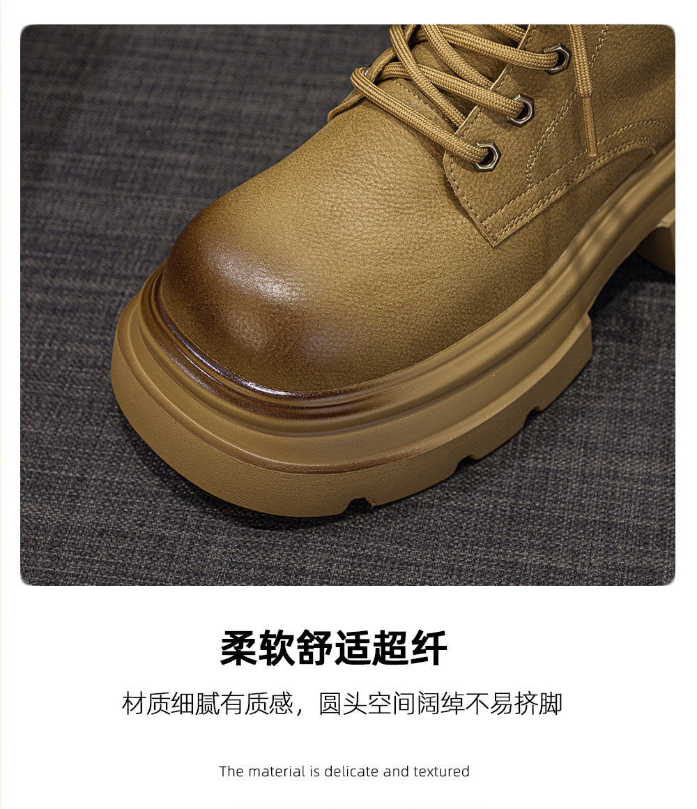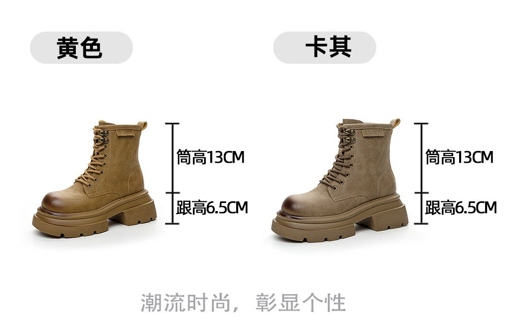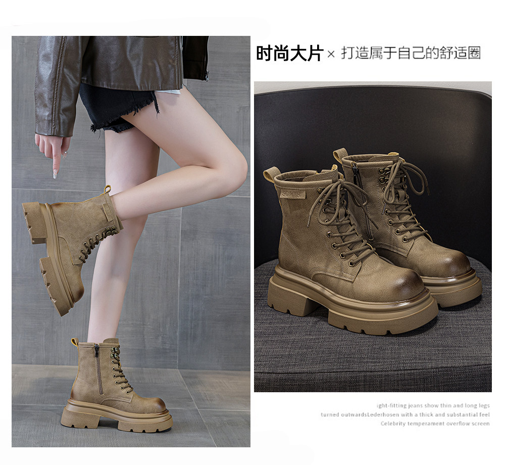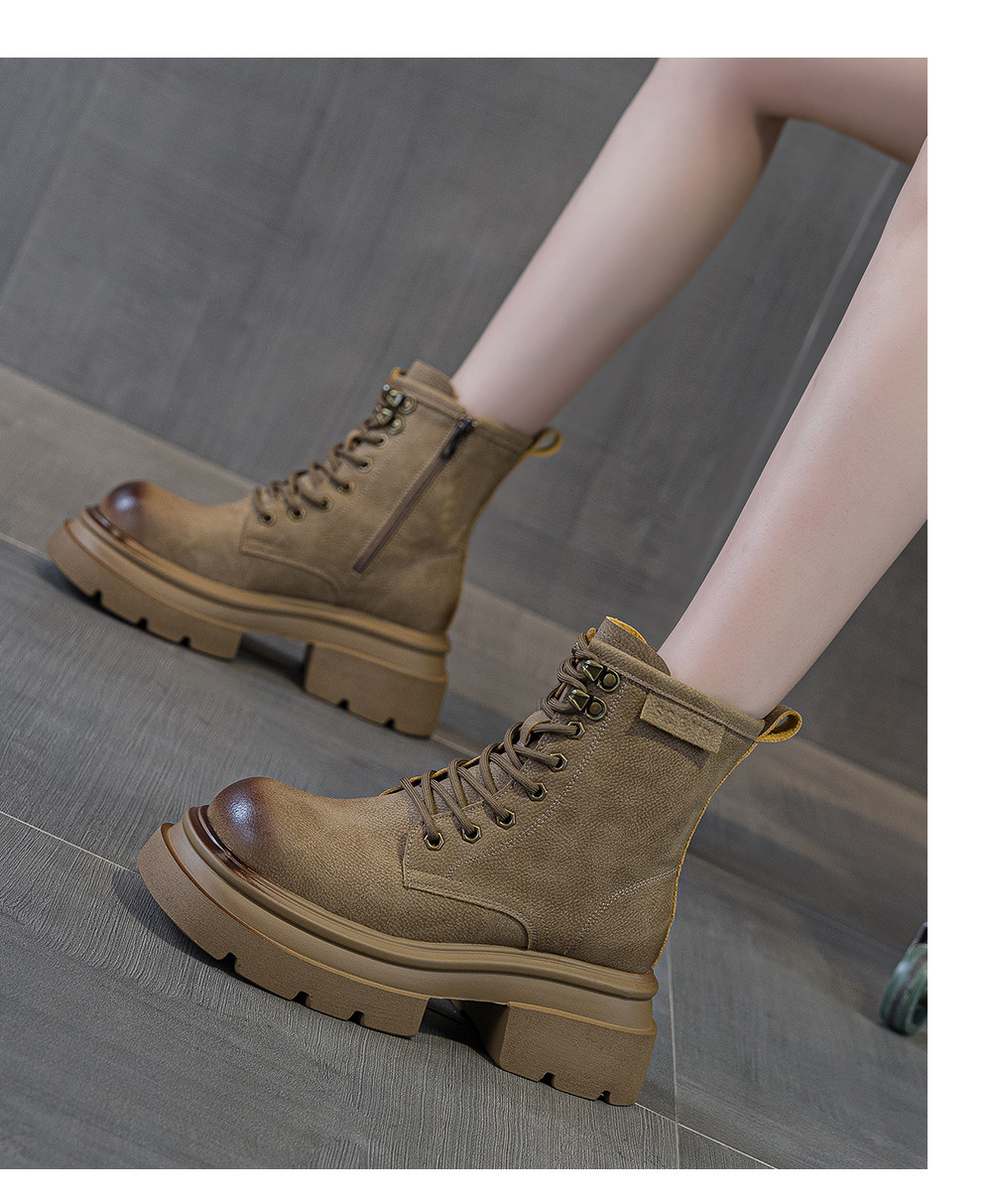 Thick-Soled Martin Boots for Women 2025 New Winter British Style Chunky Heel Short Boots Retro Round Toe Mid-Calf Fleece-Lined Yellow Boots
