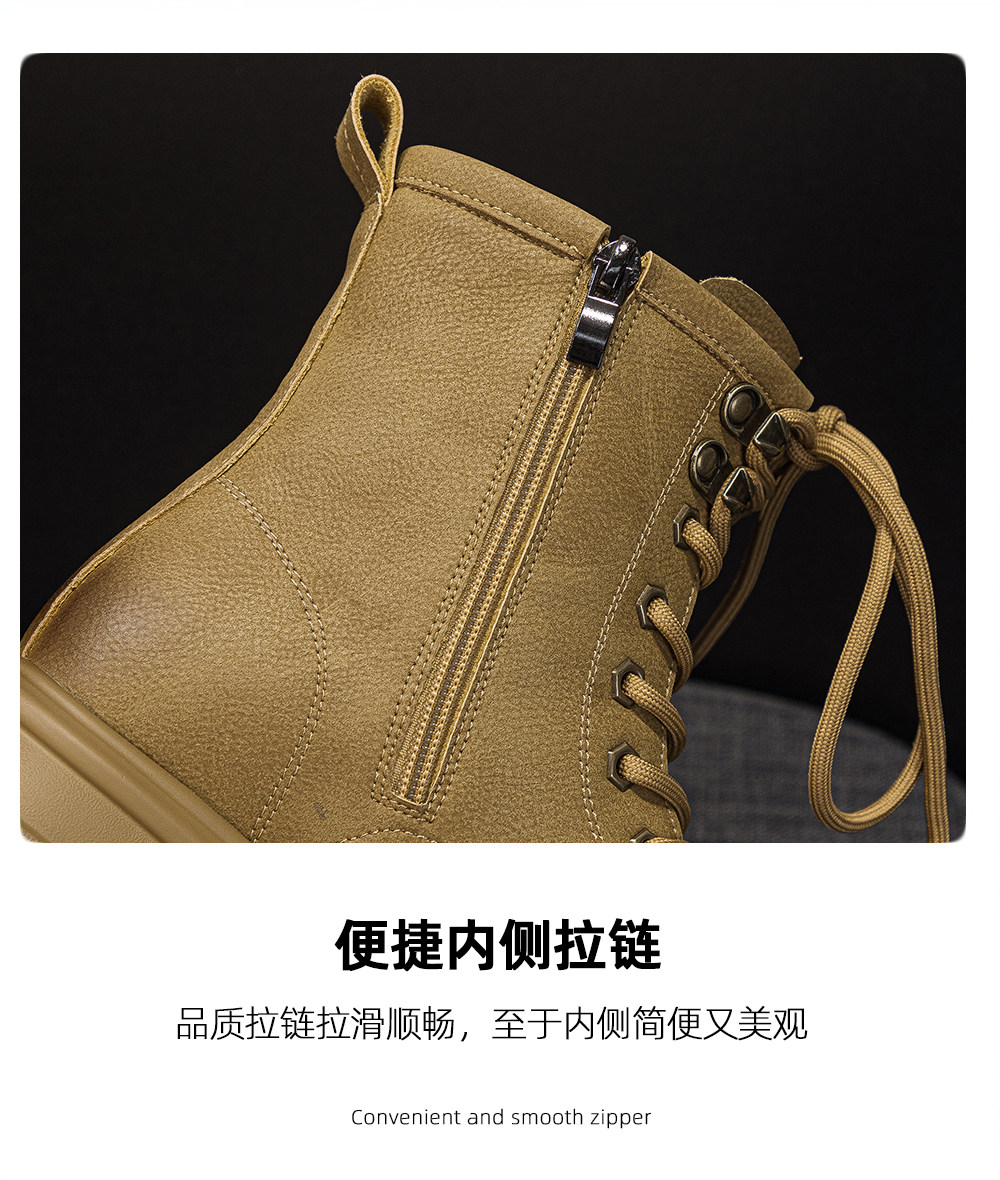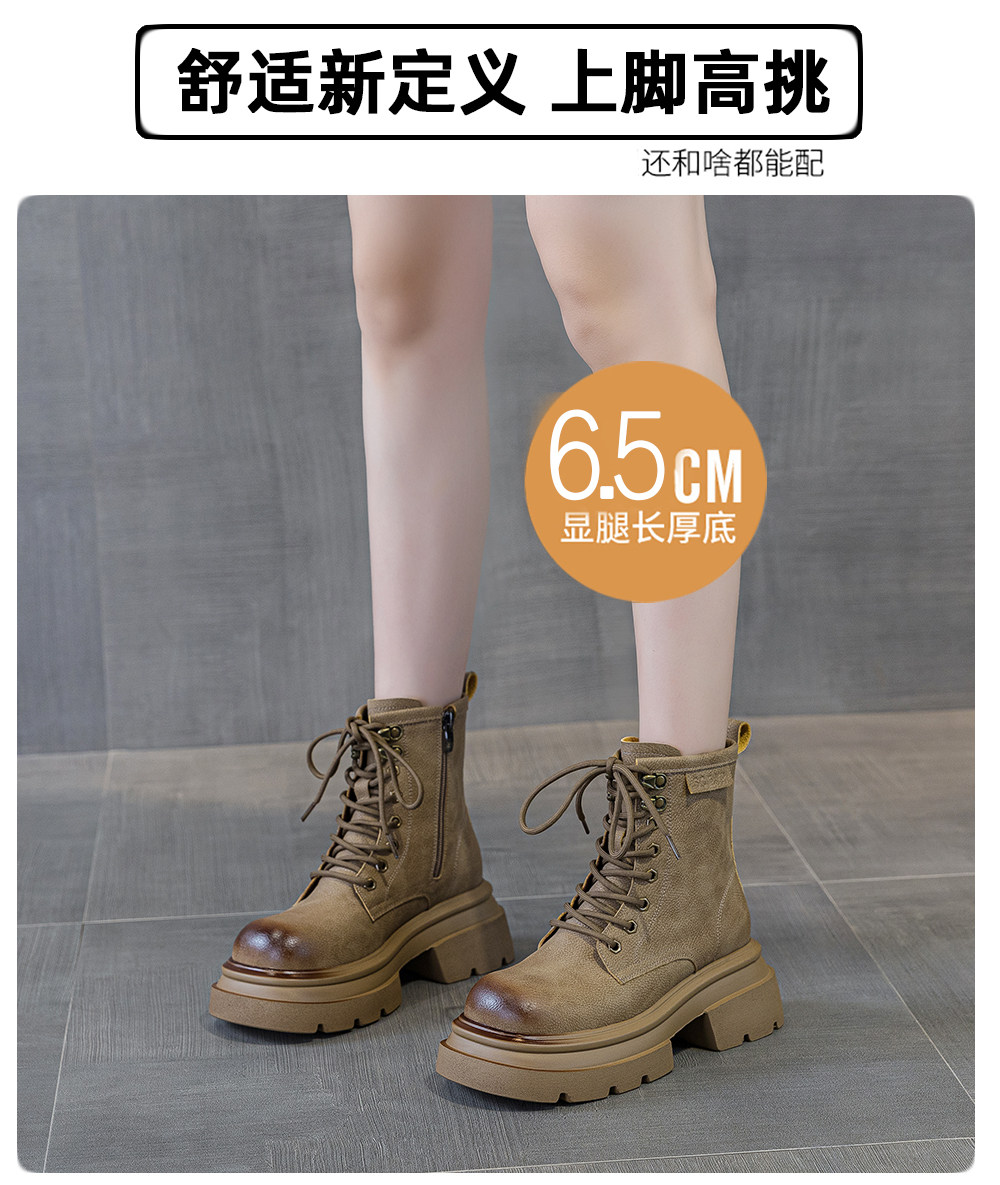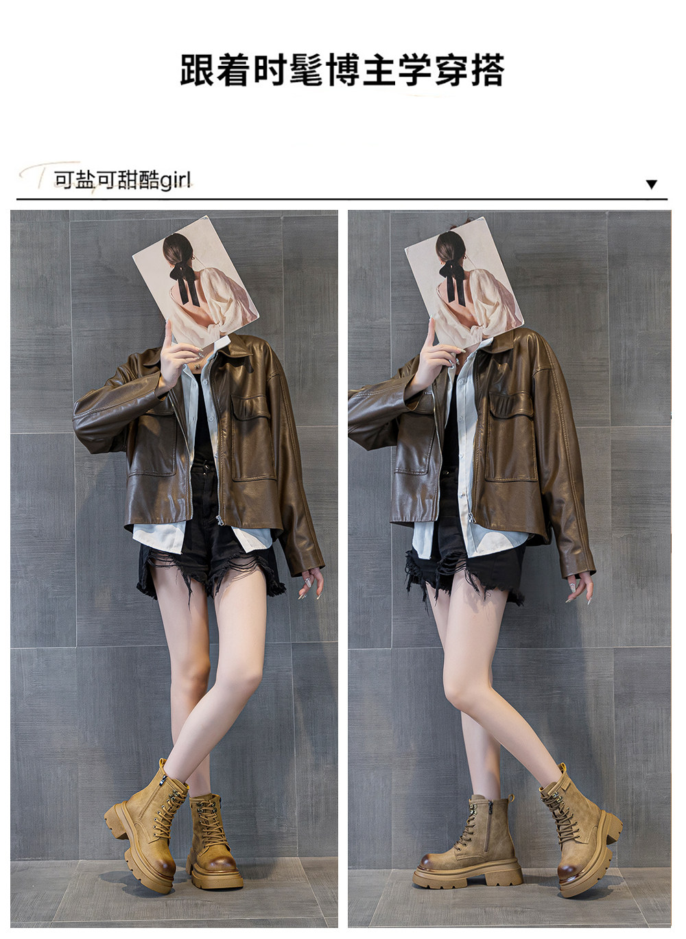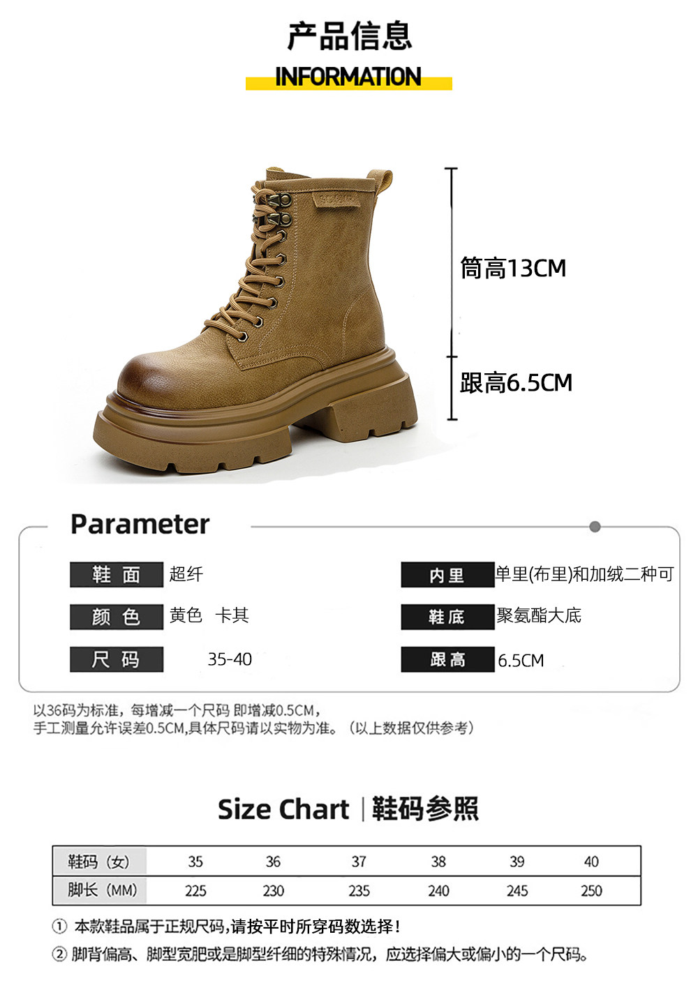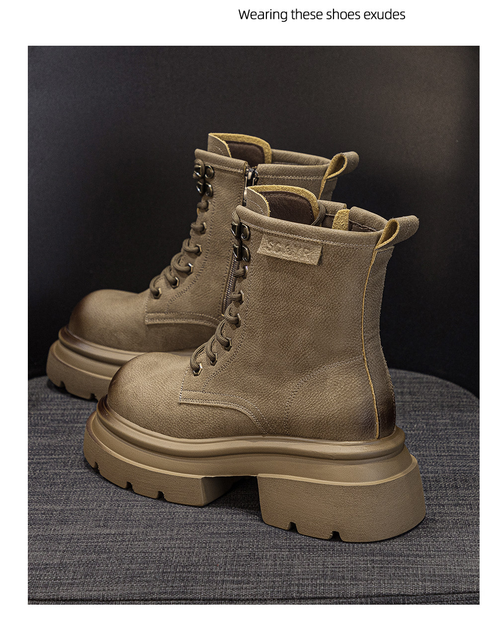 Thick-Soled Martin Boots for Women 2025 New Winter British Style Chunky Heel Short Boots Retro Round Toe Mid-Calf Fleece-Lined Yellow Boots