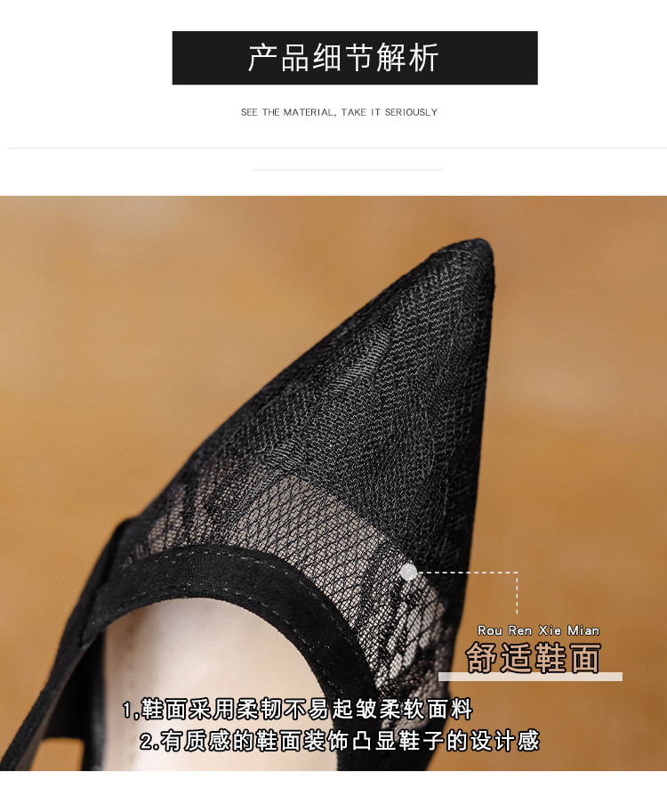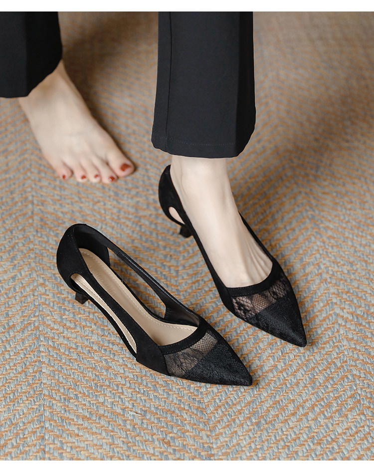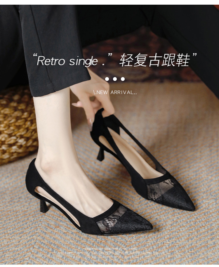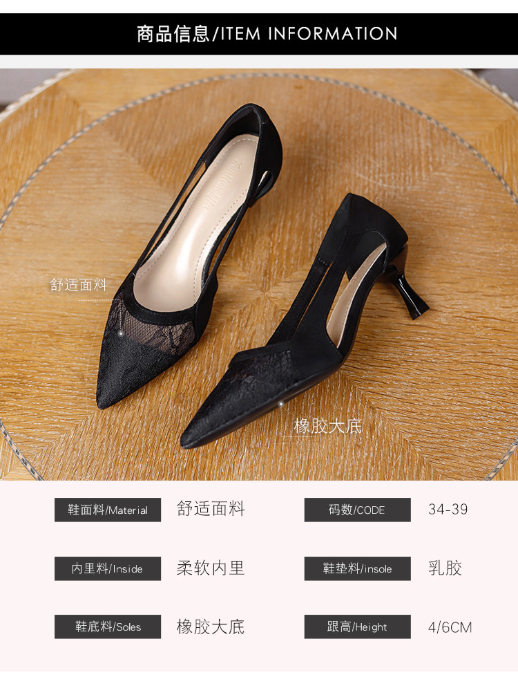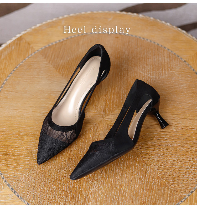 Summer Professional Work Shoes for Women 2025 New Breathable Hollow Mesh Black Stiletto Low Heel Work High Heels