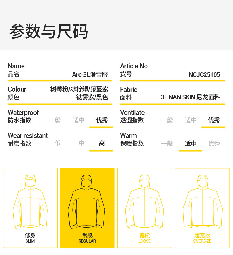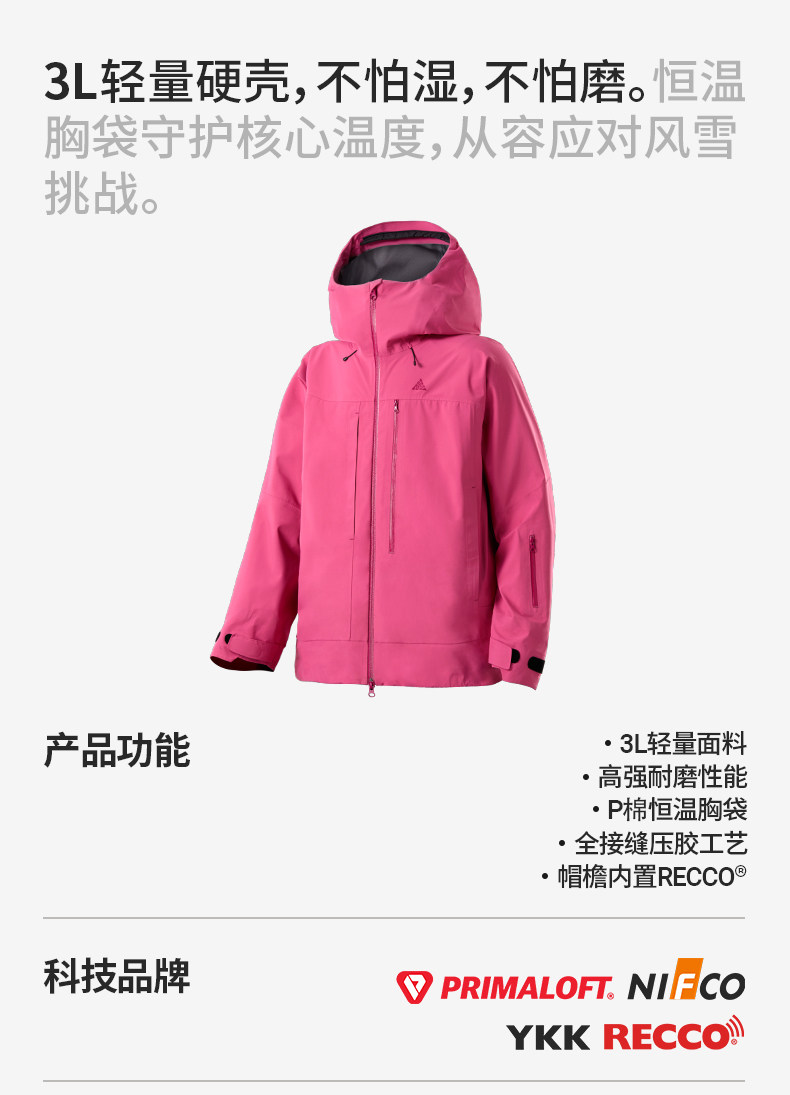 [Skyline Lite]Nanen 25 New Model Ski Jacket for Men and Women, 3L Hard Shell Recco Jacket for Men
