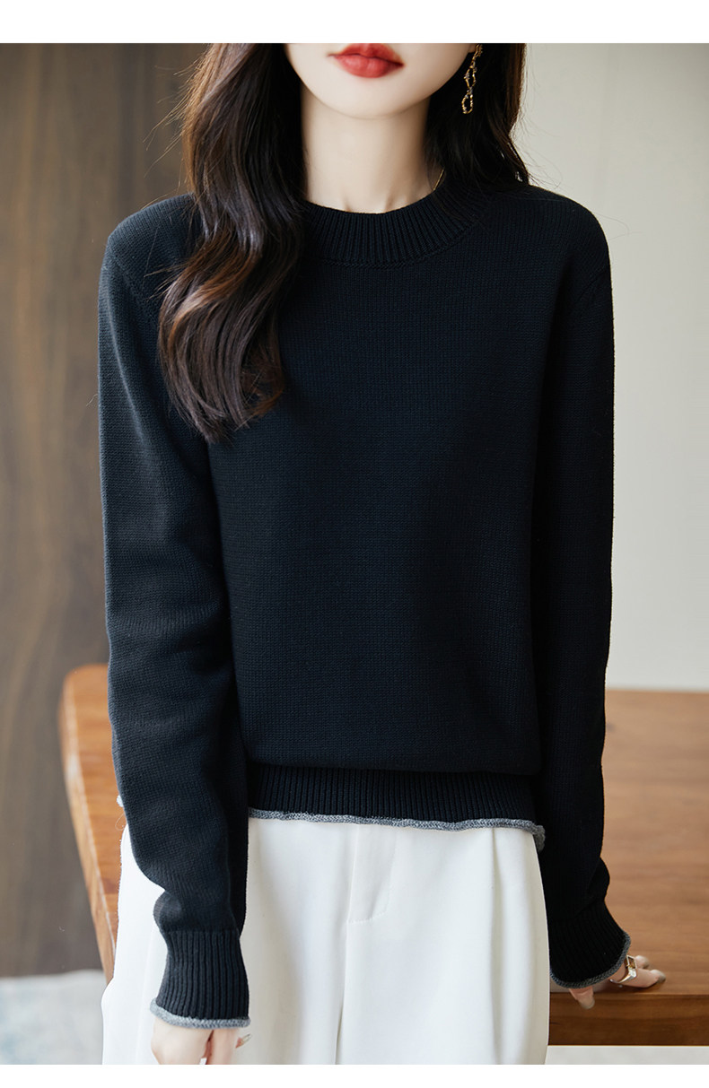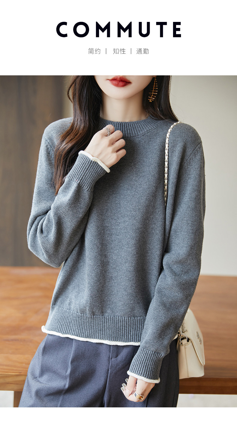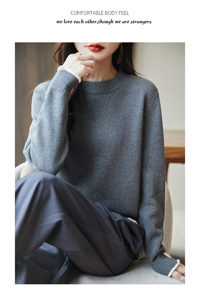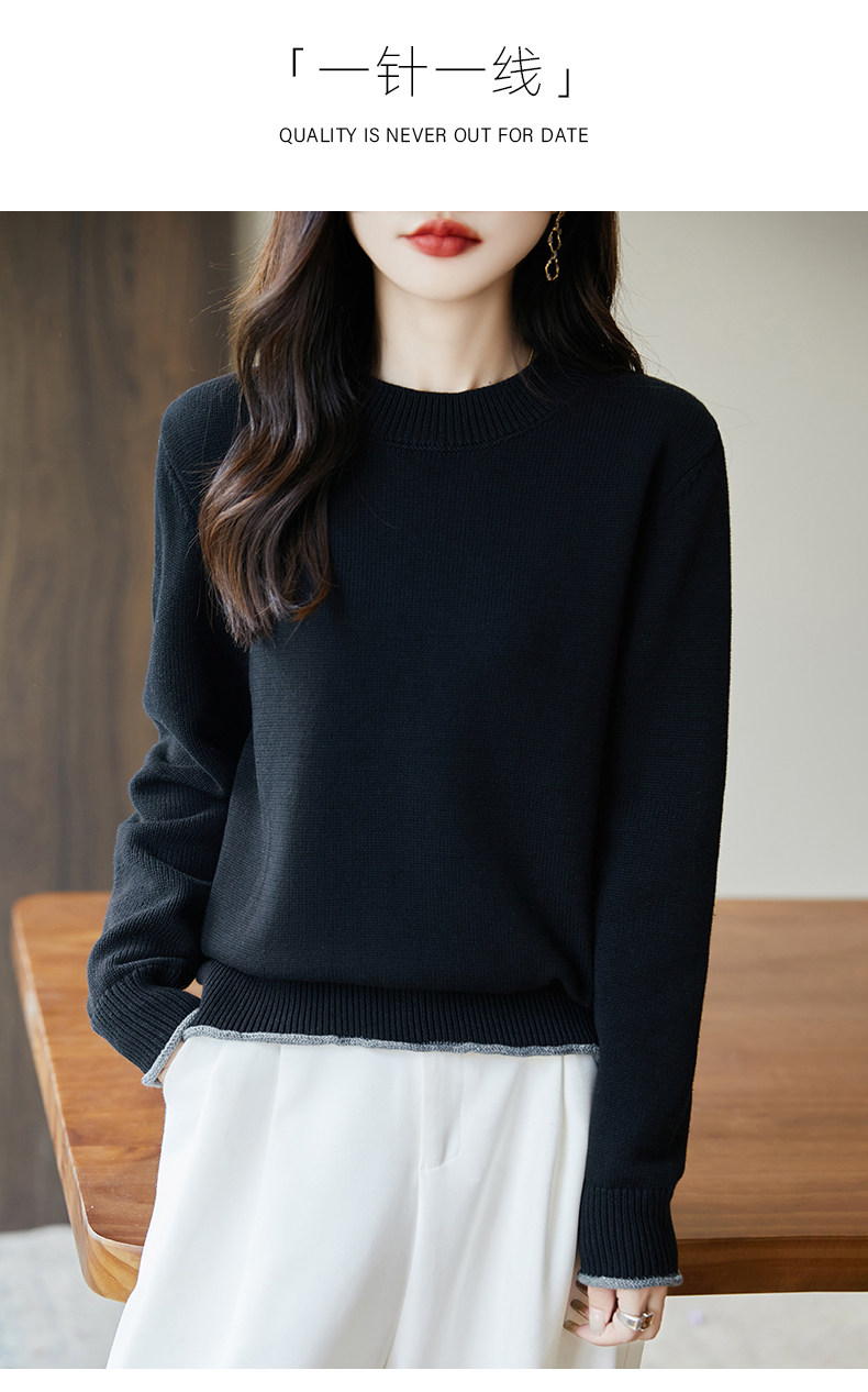 100% pure cotton thread contrast color miu sweater women's round neck sweater 2026 new thickened warm base top
