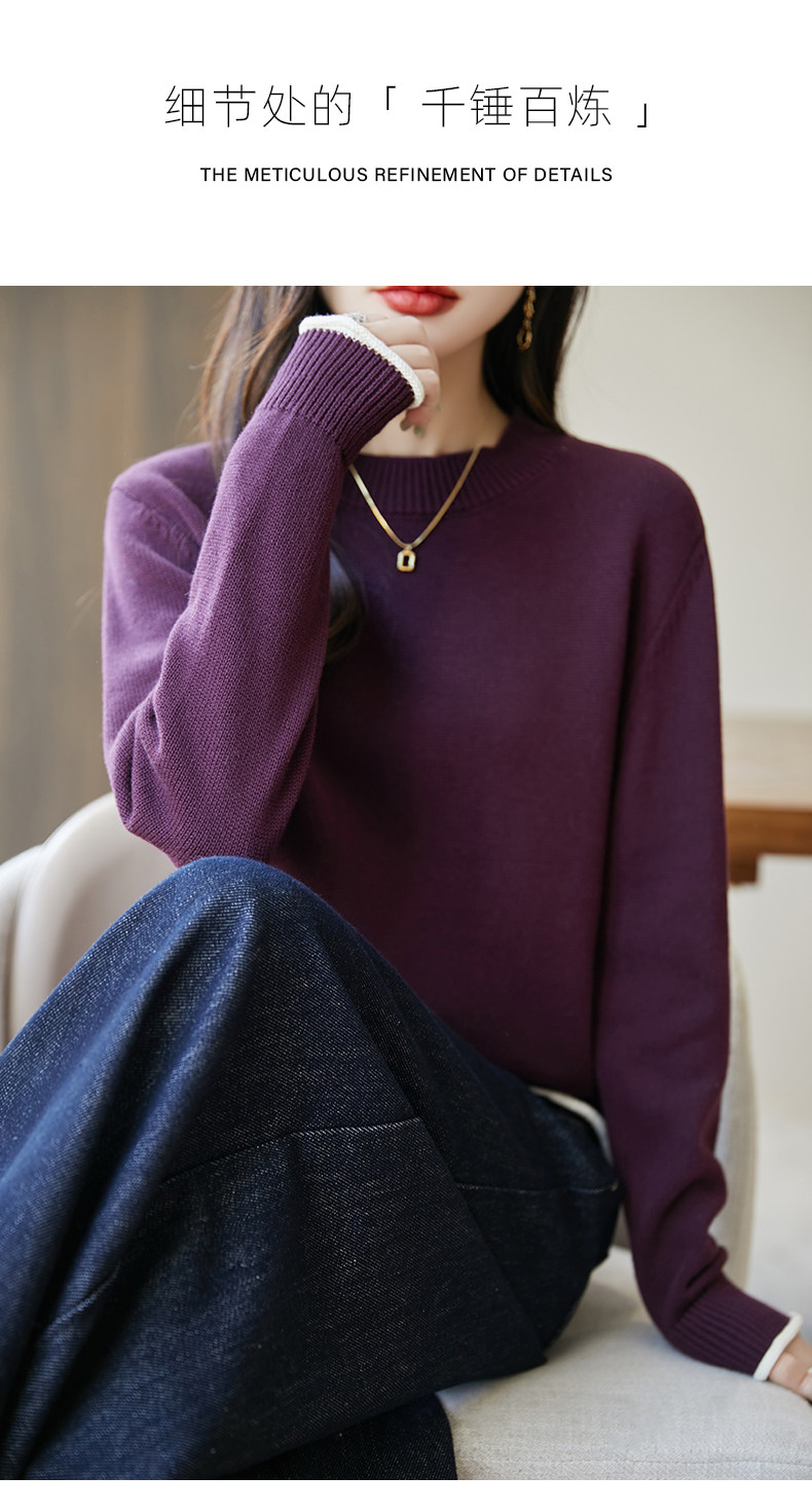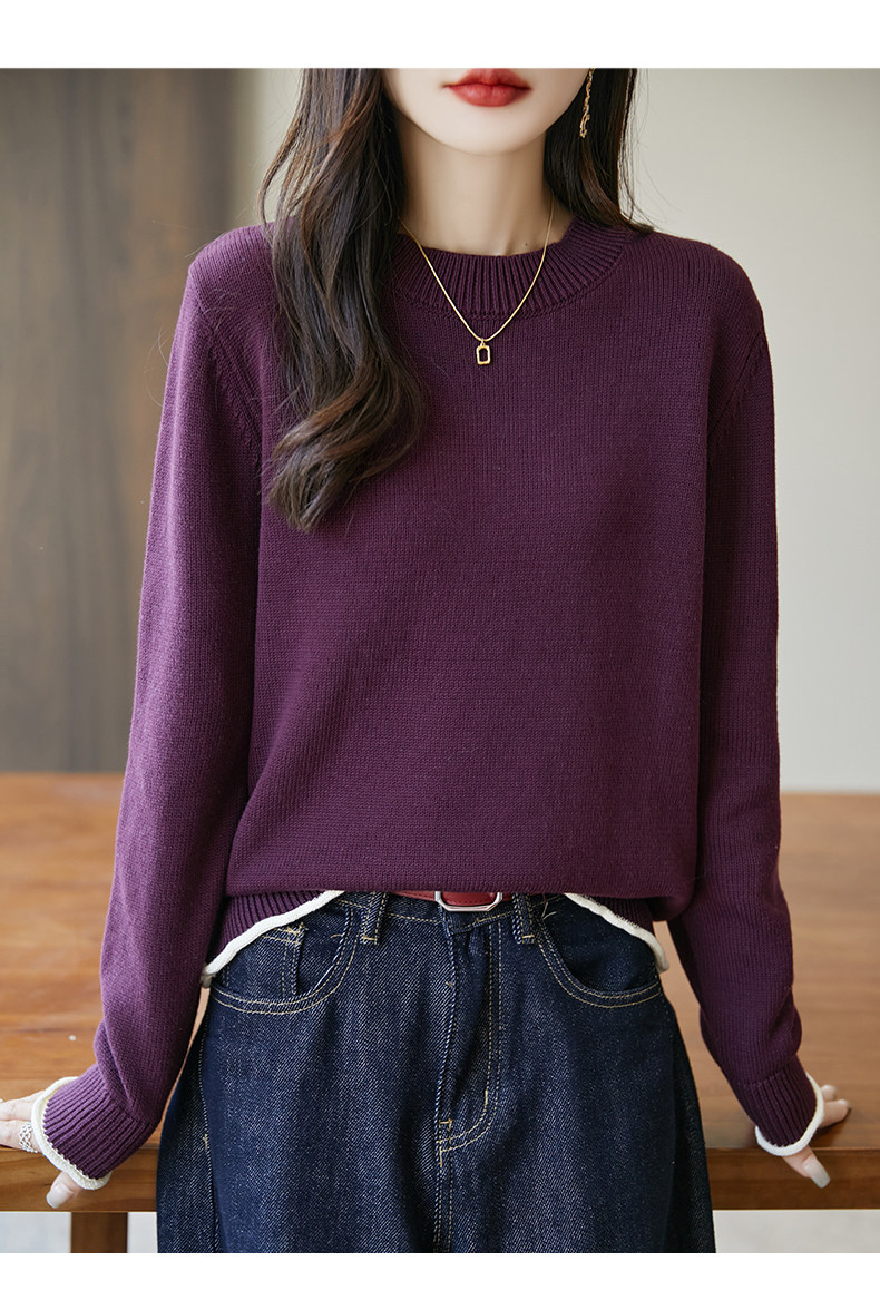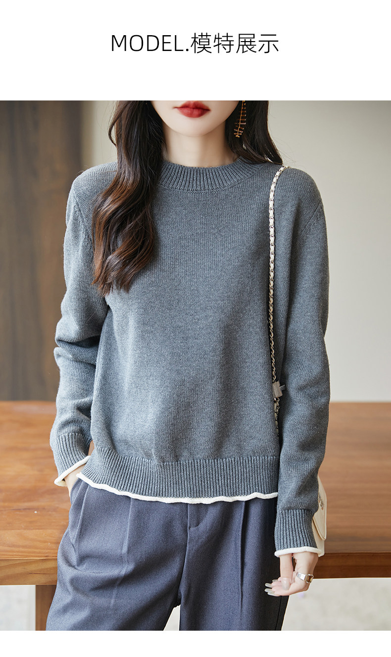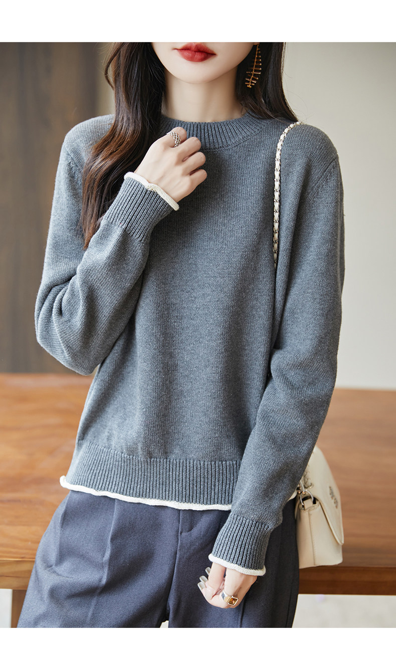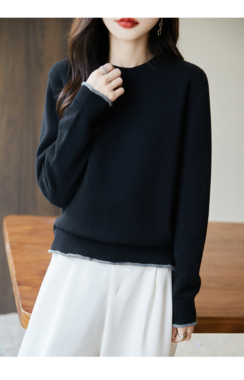 100% pure cotton thread contrast color miu sweater women's round neck sweater 2026 new thickened warm base top